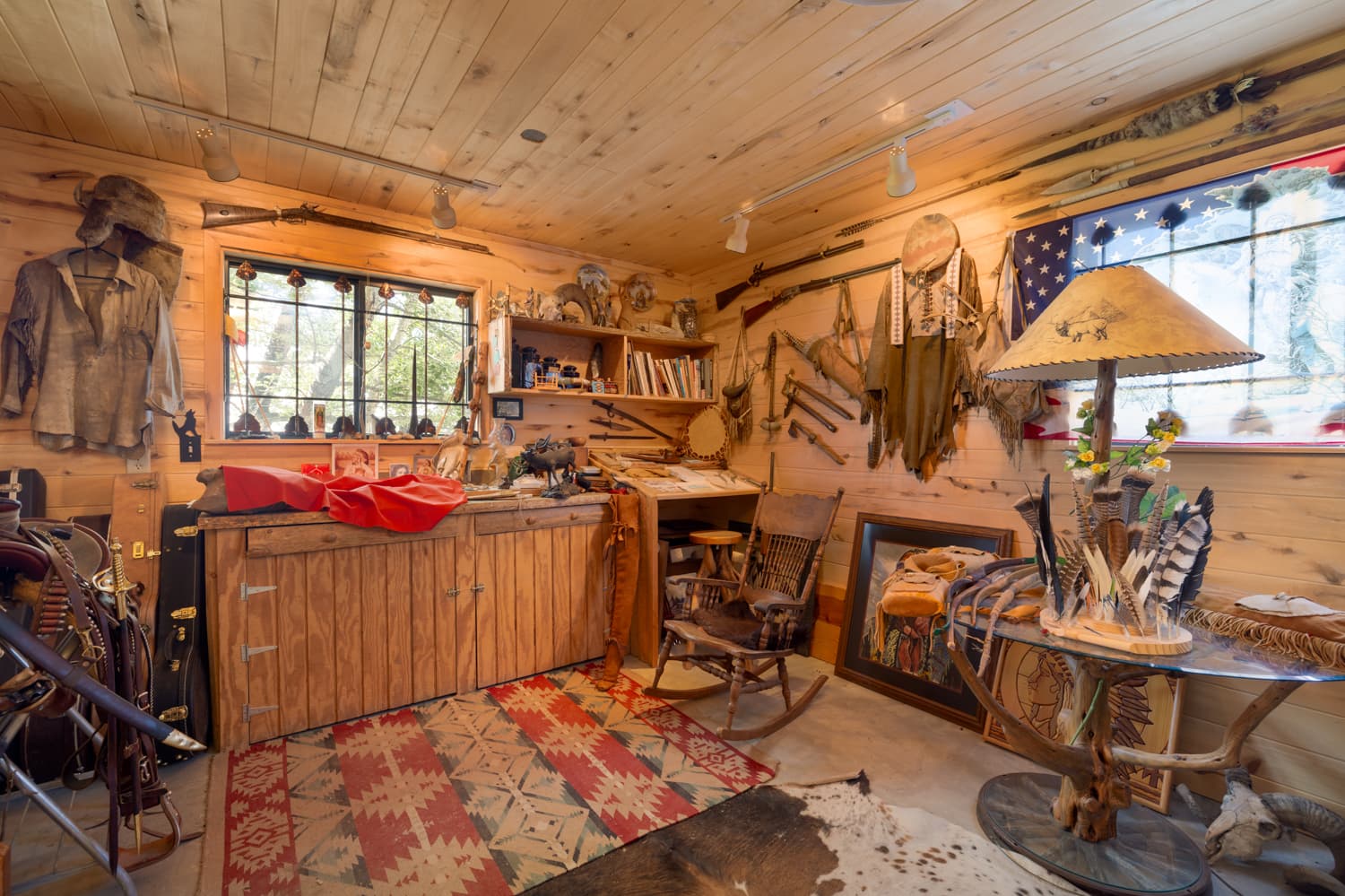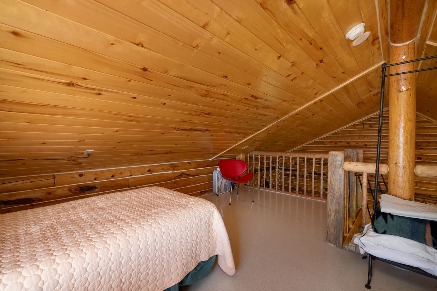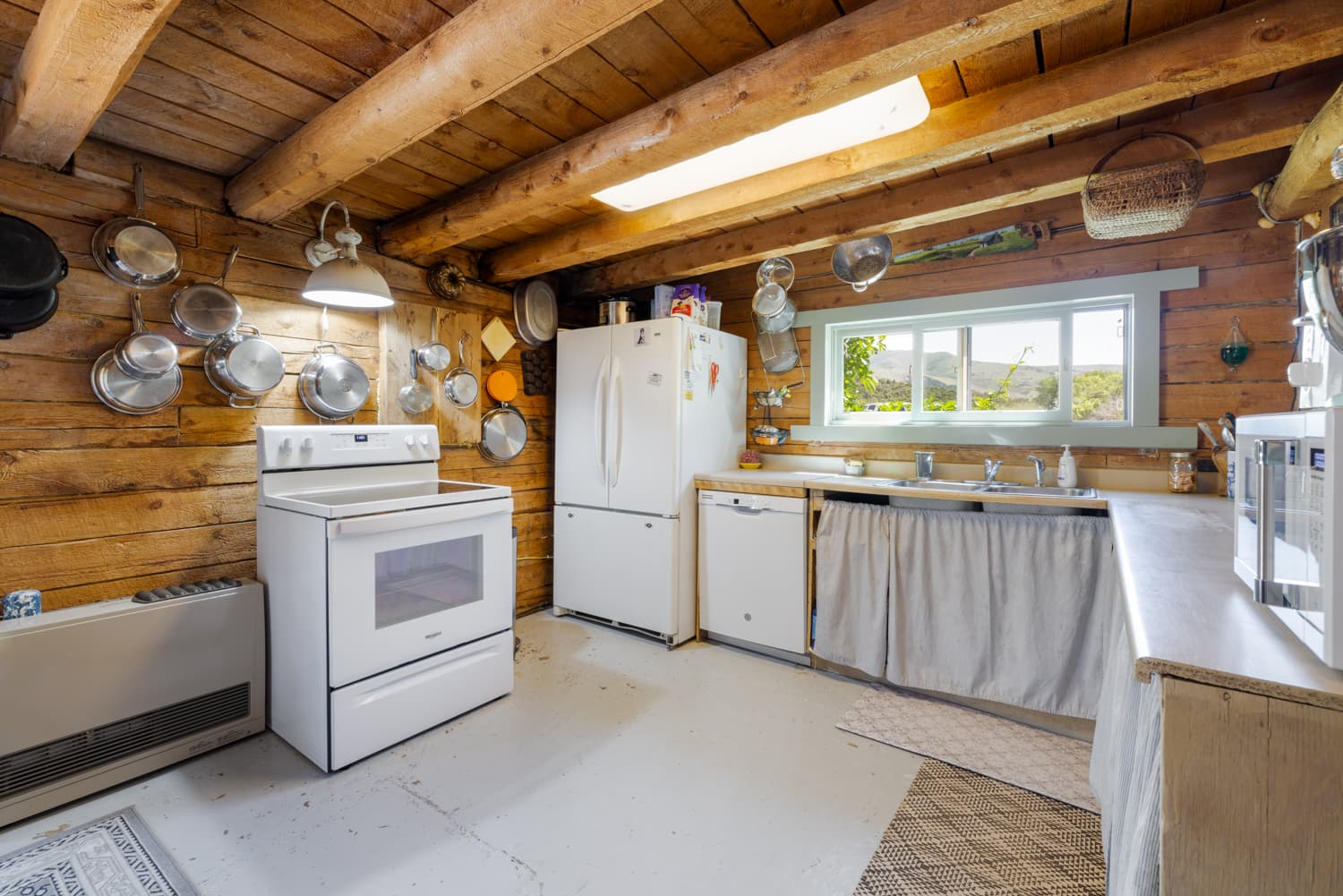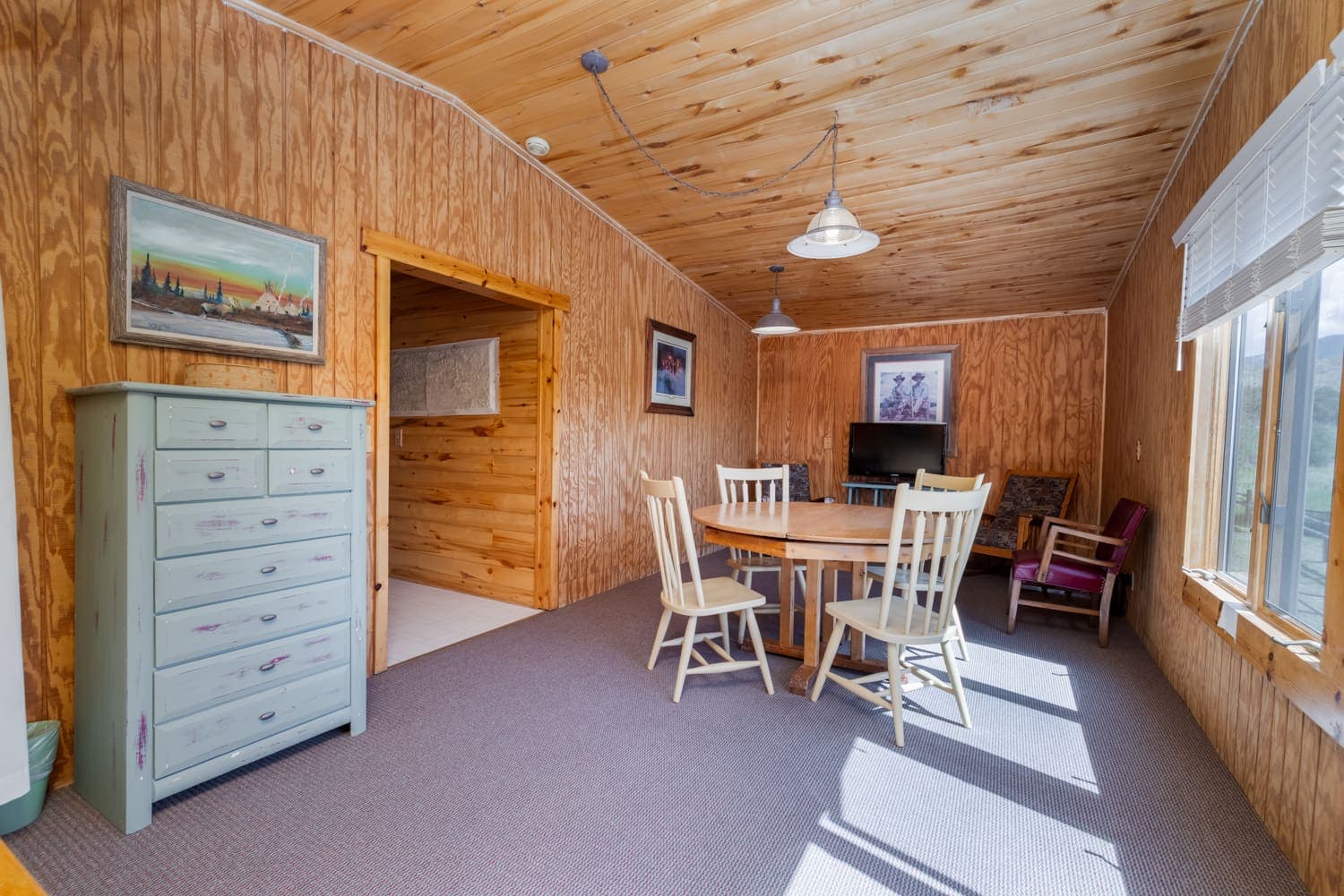 Last but not least is the Main Home on the ranch. It is frame built with Log siding. There is a nice authentic western/rustic feel to the house inside and out. Two large picture windows in the living room display a wide assortment of the wildlife in the area, as they meander around the ranch. The downstairs is a nice open living and dining area. The shiplap walls, with painted ceiling beams and laminate wood flooring were recently remodeled. The Kitchen is rustic with log walls and ceiling. There is an electric range refrigerator and dishwasher. The Bathroom is also log, with large antique claw foot tub and shower.