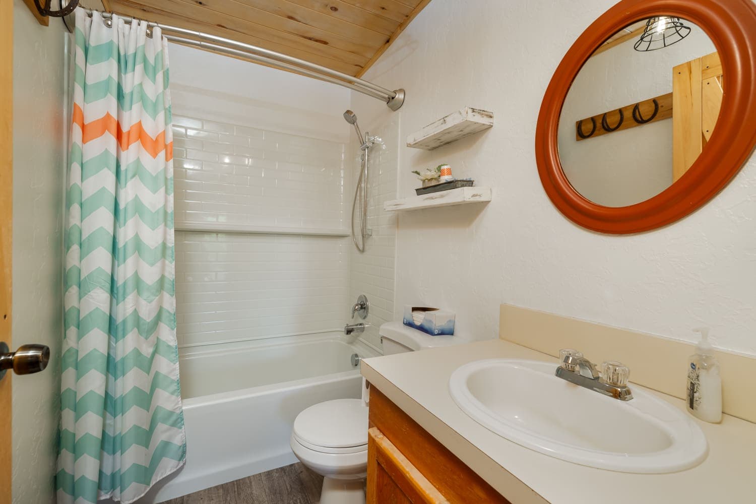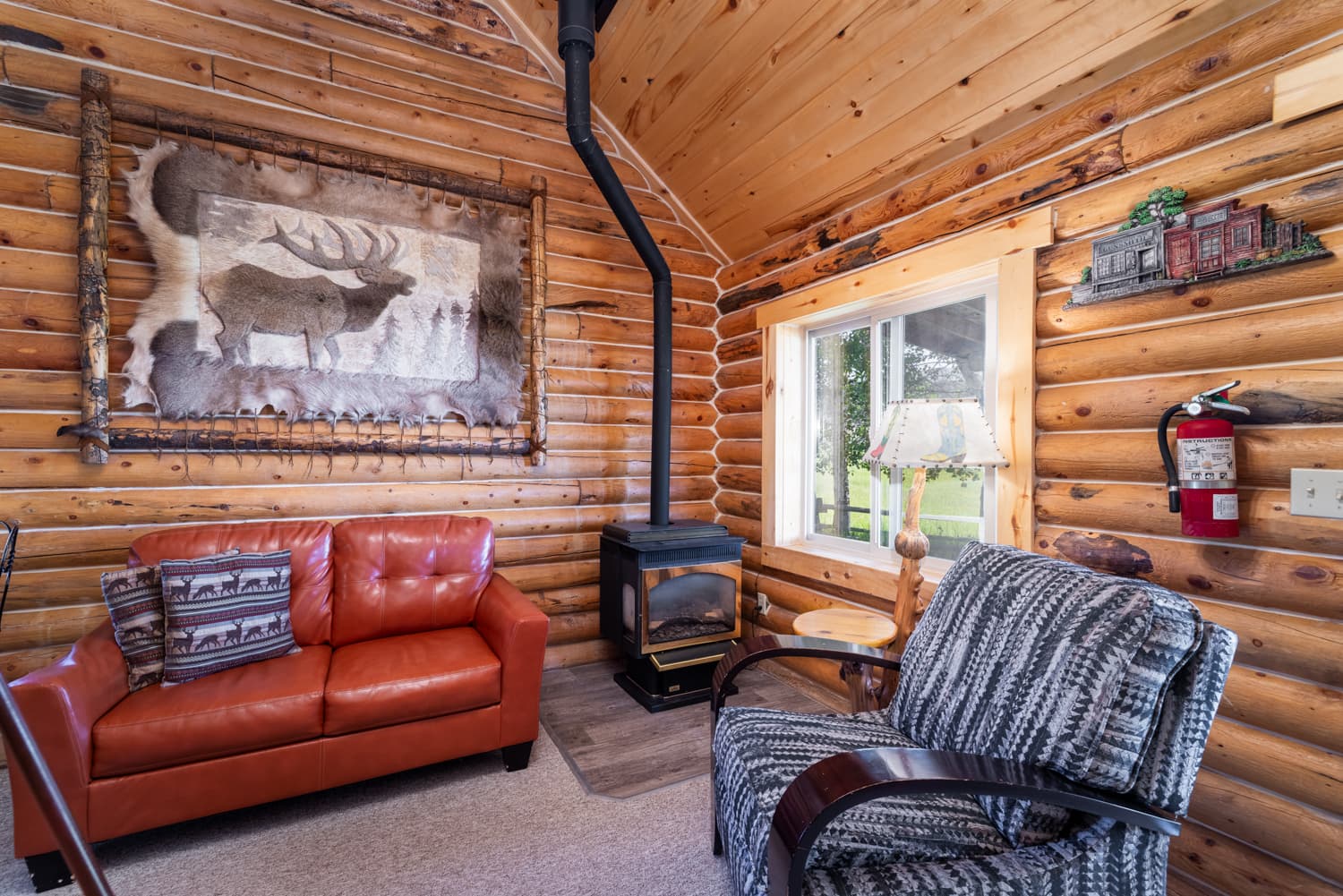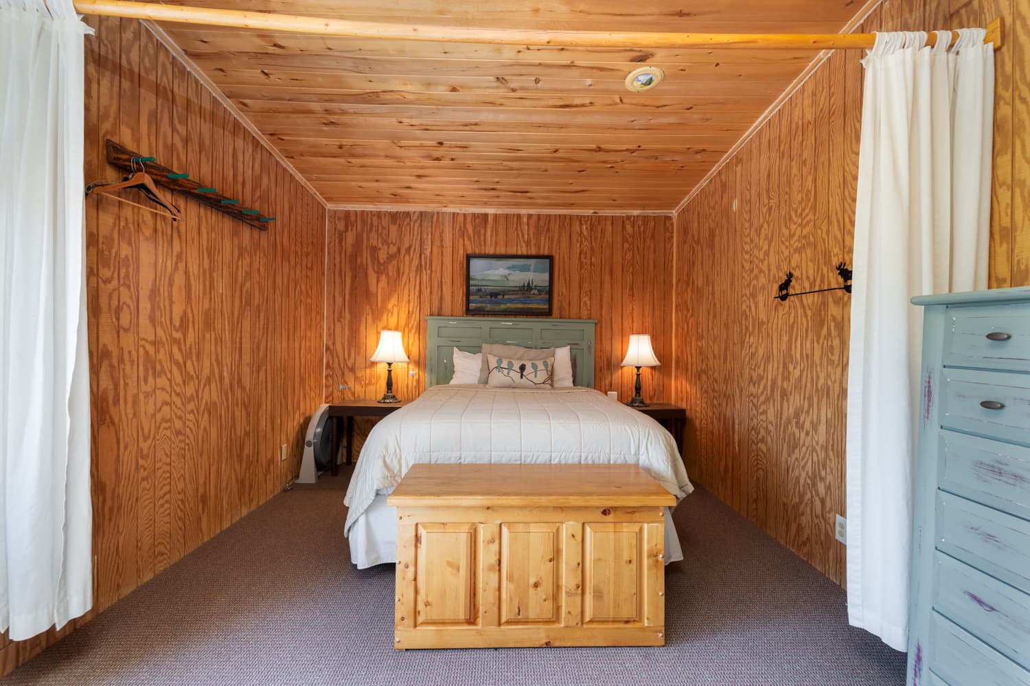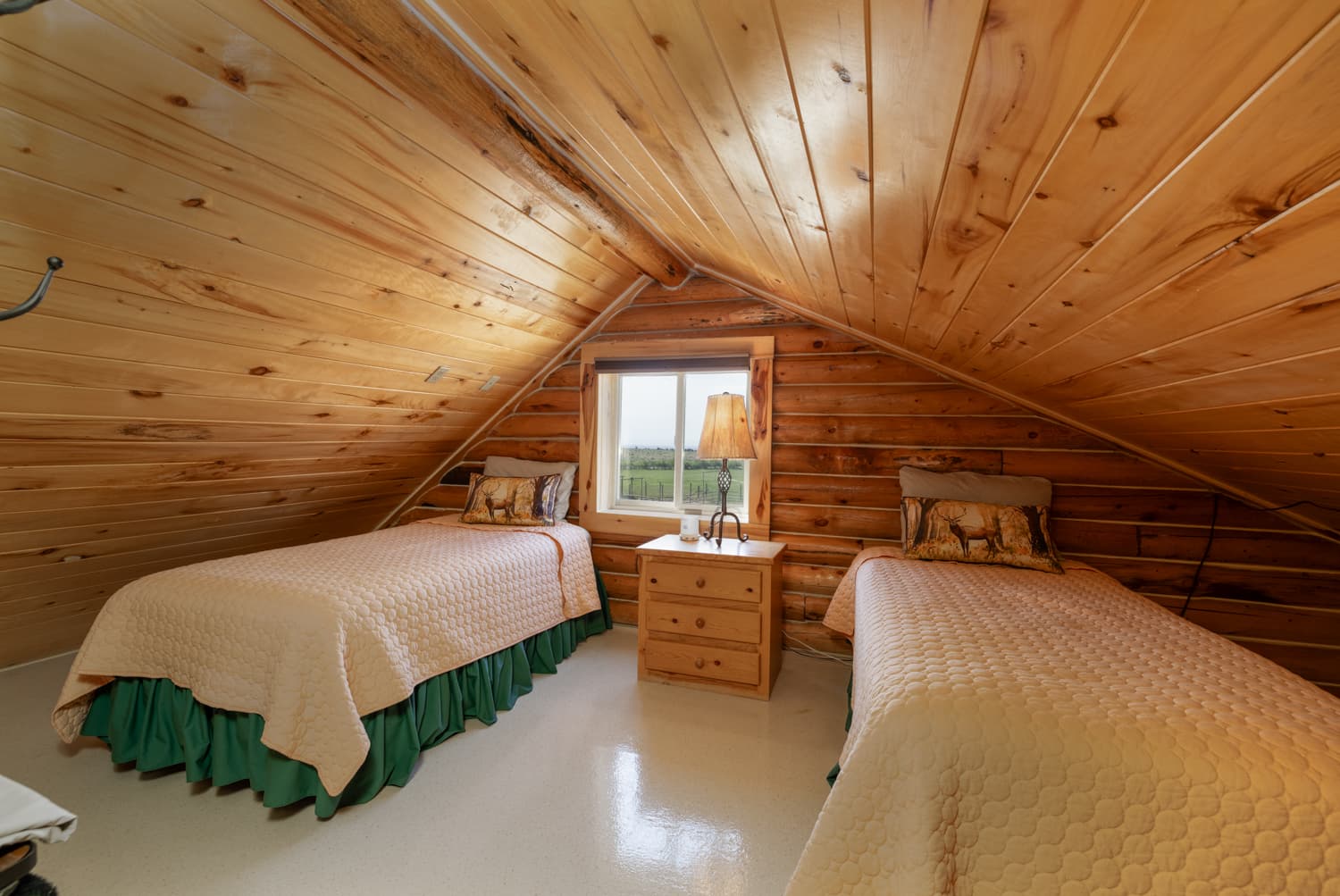Last but not least is the Main Home on the ranch. It is frame built with Log siding. There is a nice authentic western/rustic feel to the house inside and out. Two large picture windows in the living room display a wide assortment of the wildlife in the area, as they meander around the ranch. The downstairs is a nice open living and dining area. The shiplap walls, with painted ceiling beams and laminate wood flooring were recently remodeled. The Kitchen is rustic with log walls and ceiling. There is an electric range refrigerator and dishwasher. The Bathroom is also log, with large antique claw foot tub and shower.