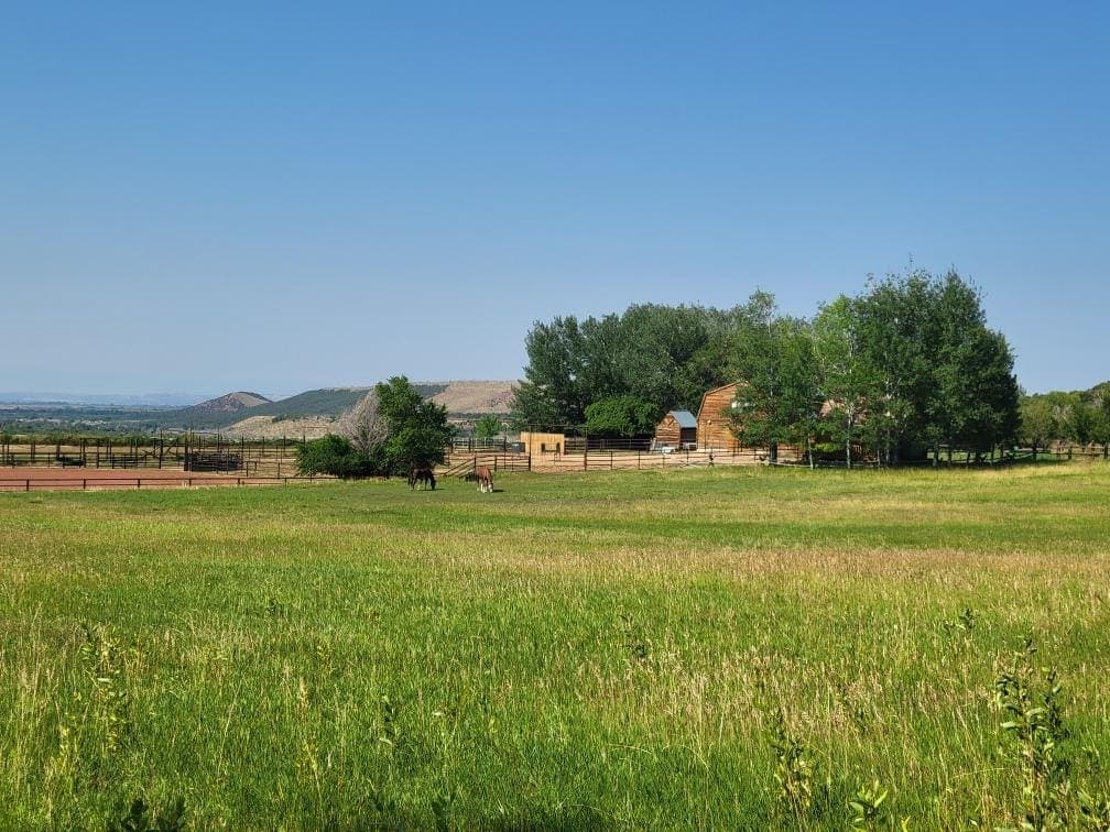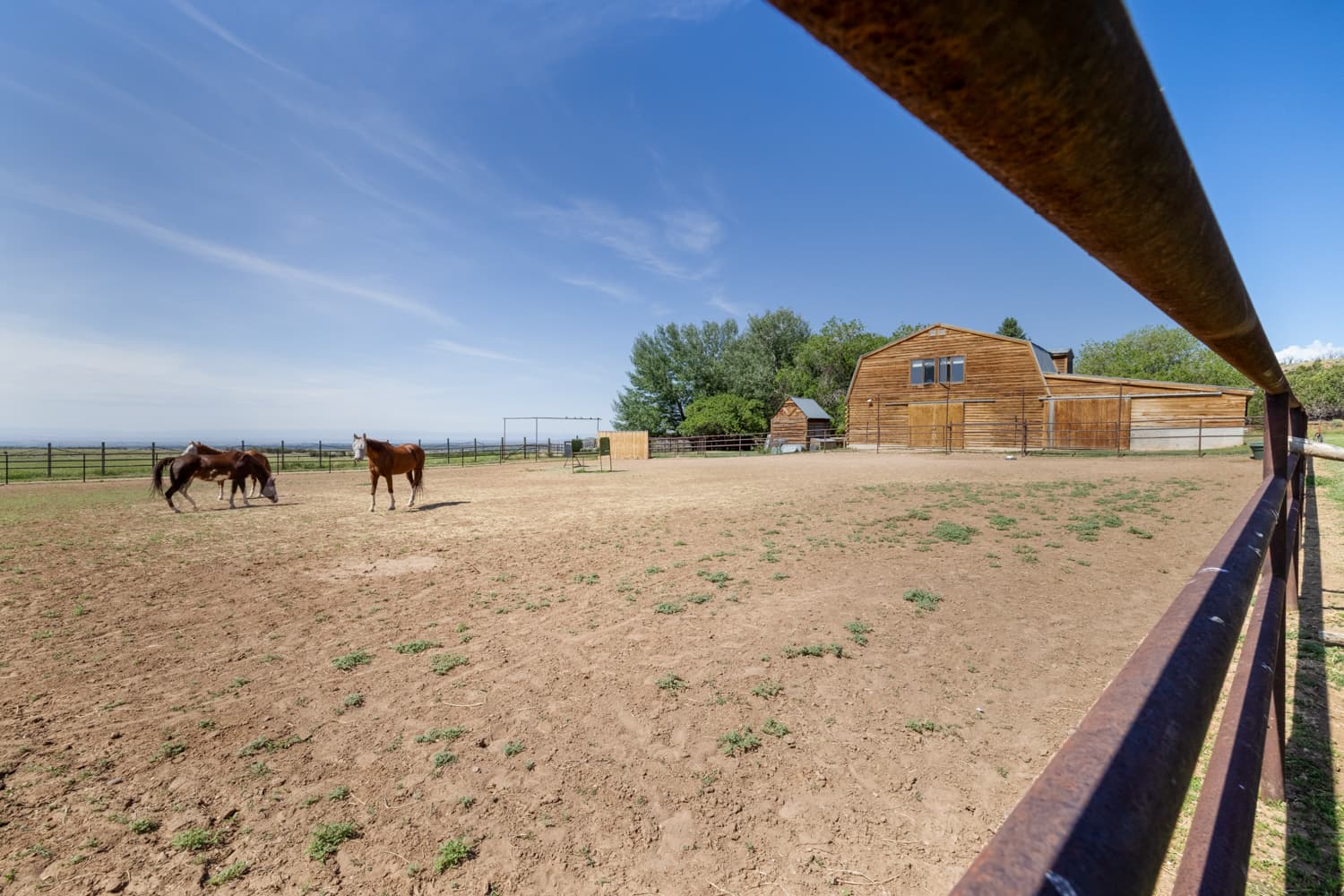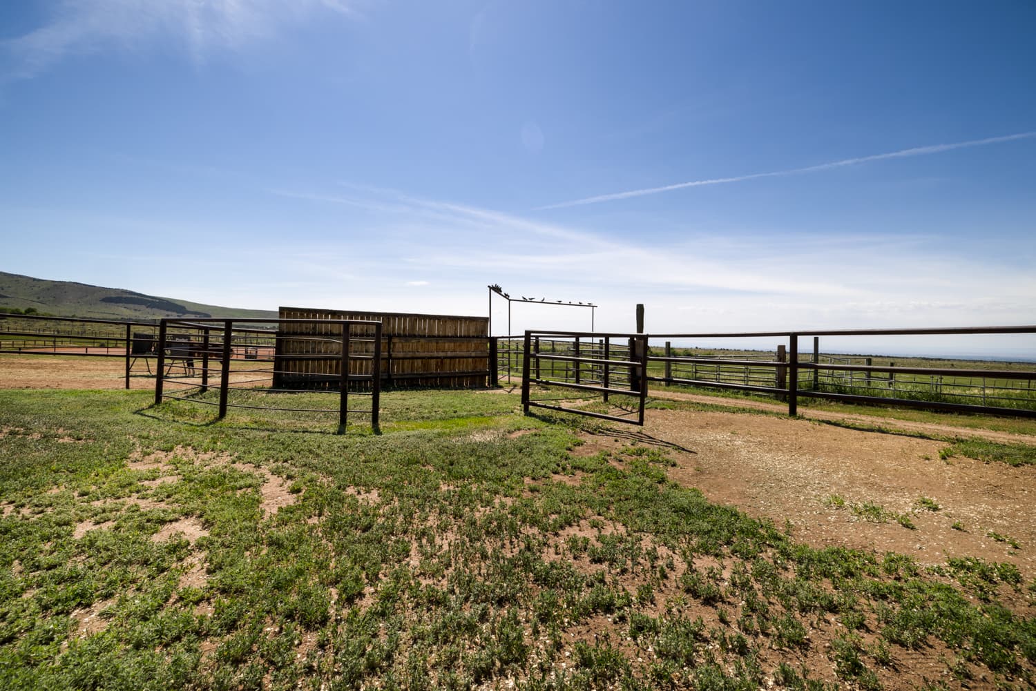 The two grass pastures near the barn are approximately 4 and 5 acres. They are fenced with six foot tall no climb wire. The South pasture area is 19 acres. Some or all of the pasture can be put up in beautiful grass hay. We get between 39-40 tons yearly off this and the hay field on West side of the ranch
