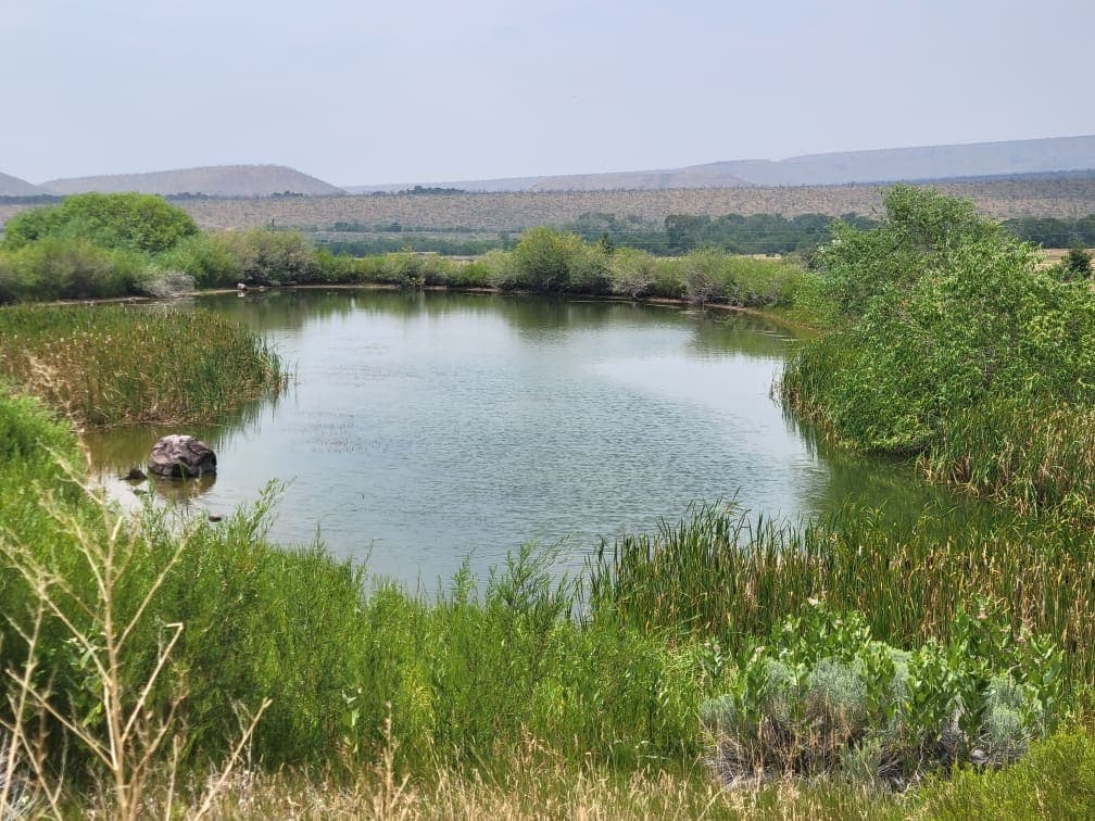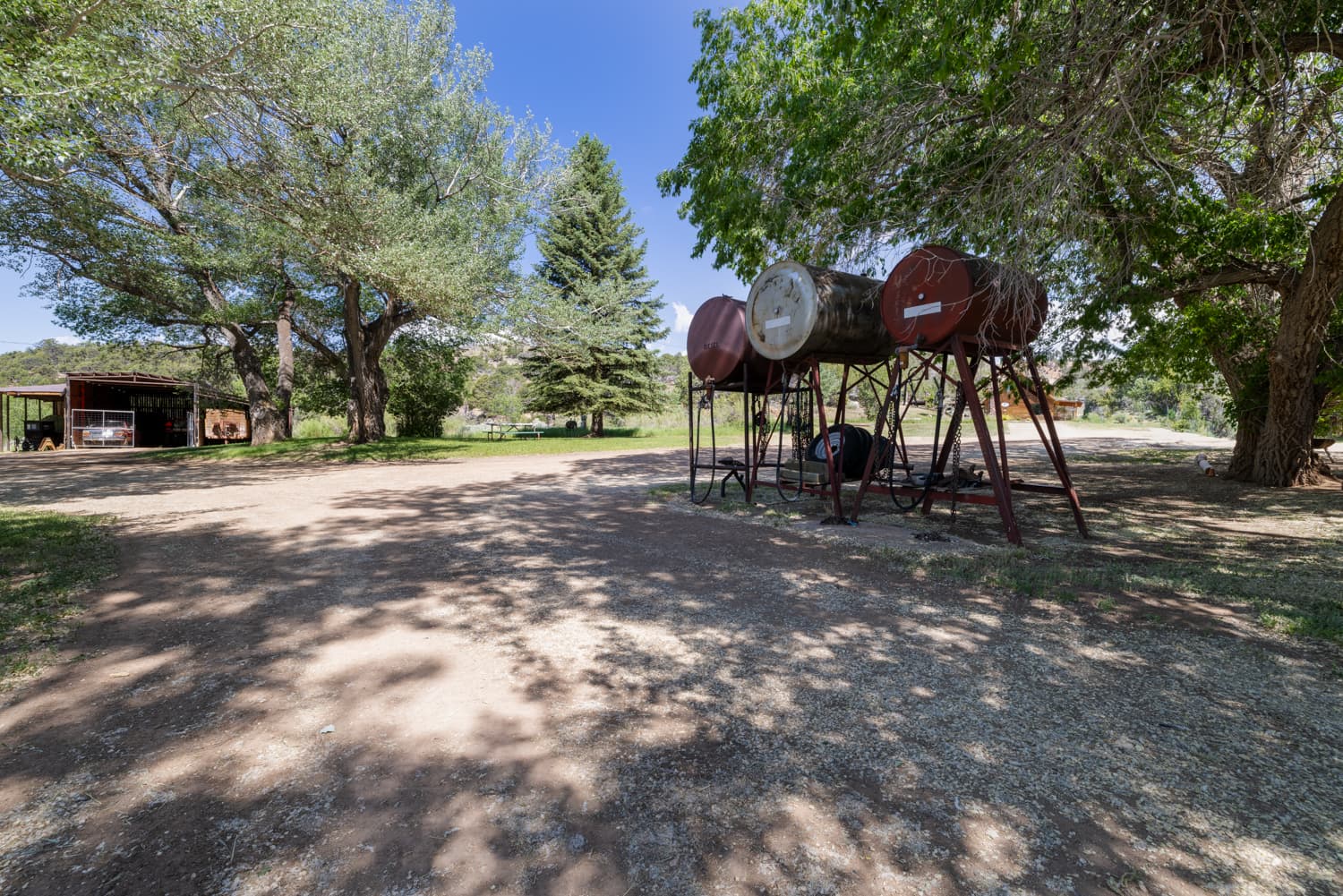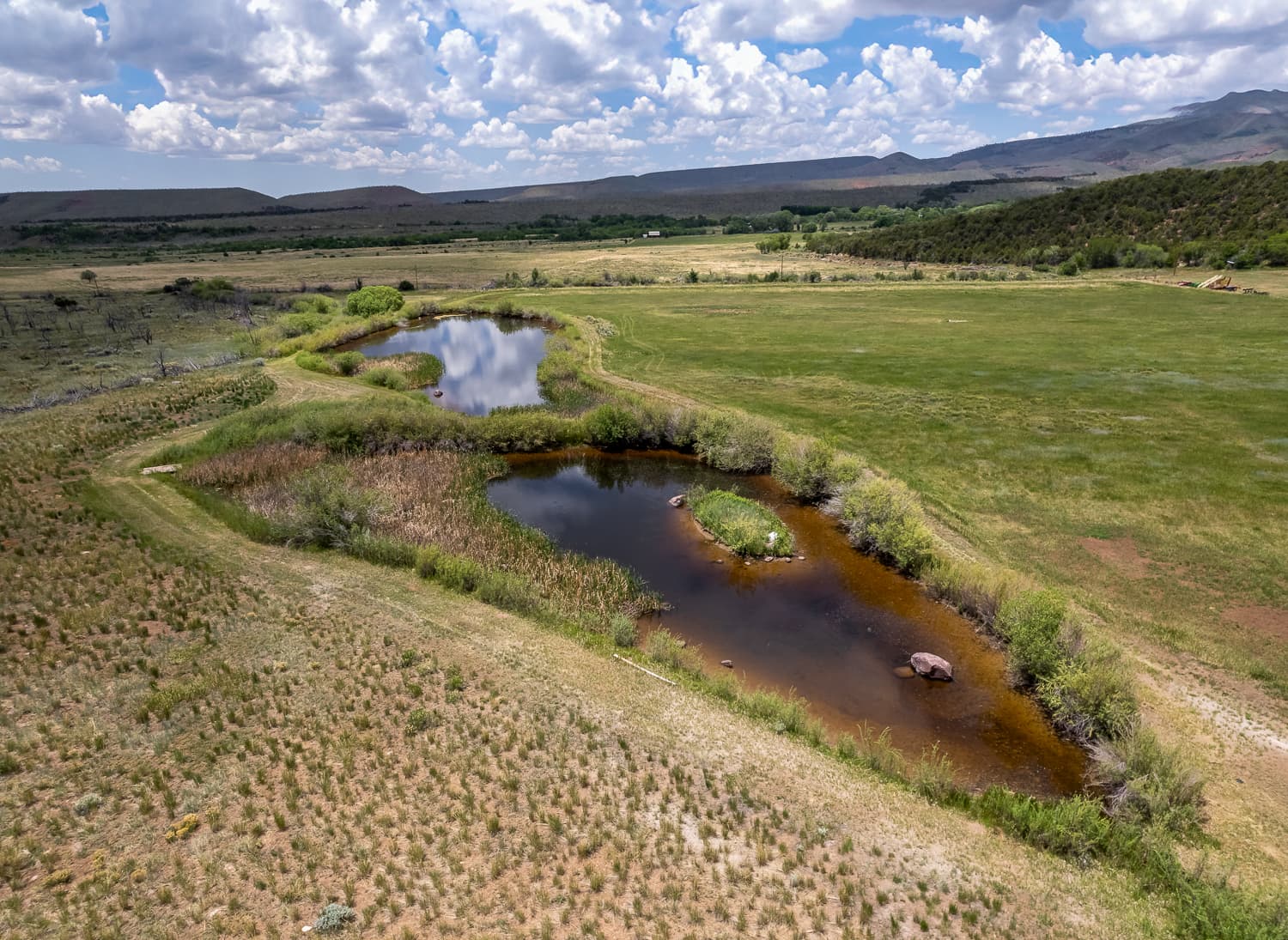 The main hay grounds are connected to the lower pastures, separated by the driveway and a planted row of wildlife habitat. Across the driveway is the other 40 acres which includes 25 acres of hay field, hay barn with storage area and a food storage building. They sit close to a running stream at the back of the property. This is a nice shady spot to camp or park an RV. There are three ponds below the hay field, overlooking a beautiful view of the mountains and property. This spot would make a great future building site.