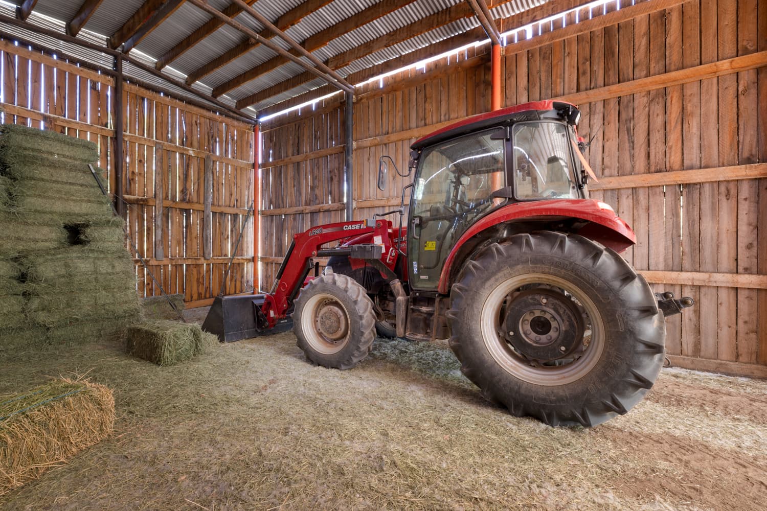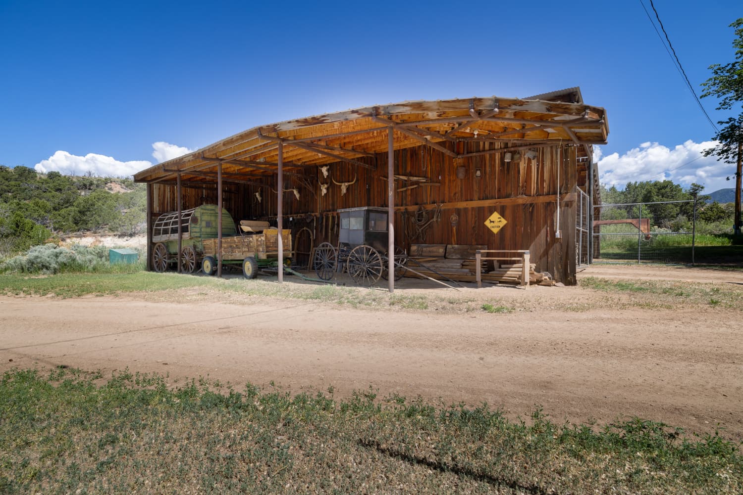 Near the workshop is a hay barn with two useful storage buildings attached to each side. It is now used to store sawdust, 4 wheelers and some antique wagons.