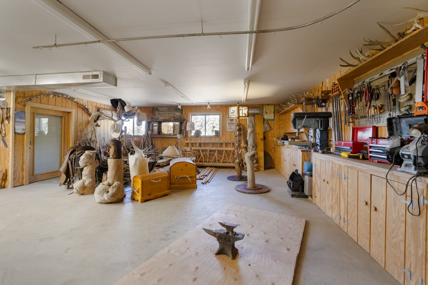 For the person craving their own workshop, there is a heated garage/studio that is 30 x 40. It has a finished interior with good lighting, cement flooring and an abundance of cabinets and workbench area.