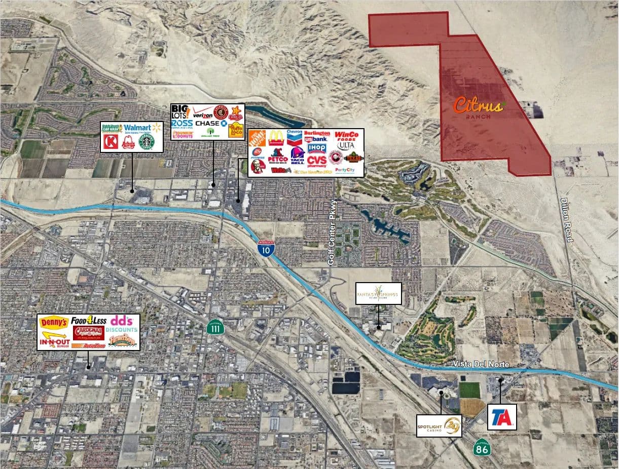 Density Ranging from 2.5 - 15 du/acre Approved Environment Impact Report Easy Access to the I-10 Freeway via Dillon Road Near the Terra Lago Golf Club and Esteemed Shadow Late Estates Near Several Shopping Centers