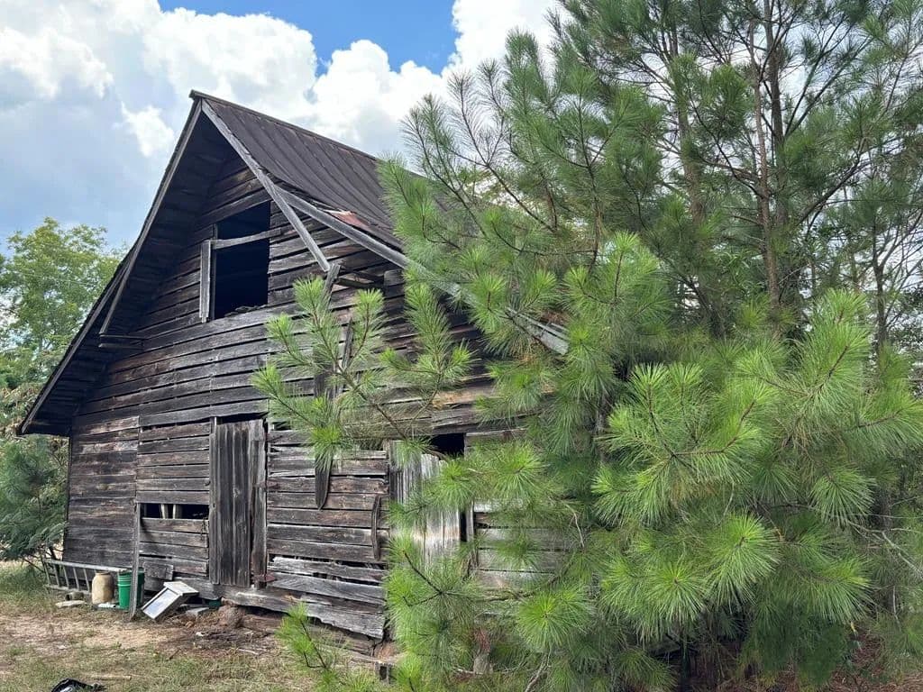 23 +/- acres and over 900 ft of paved road frontage with pre 1900 homeplace that includes old farmhouse structure and barn. Home has beautiful unpainted heart pine tongue and groove walls and ceilings and wide plank heart pine flooring that could be repurposed in new build. The old homeplace is surrounded by pecan, pear and muscadine vines. The remaining land has planted longleaf pines. A well is on property and county water and power are available along Ga Hwy 240 Connector road frontage. Additional lands to the south could potentially be purchased with this tract. Property is on Ga Hwy 240 Connector near the intersection with GA Hwy 127, property is NOT on GA Hwy 240.