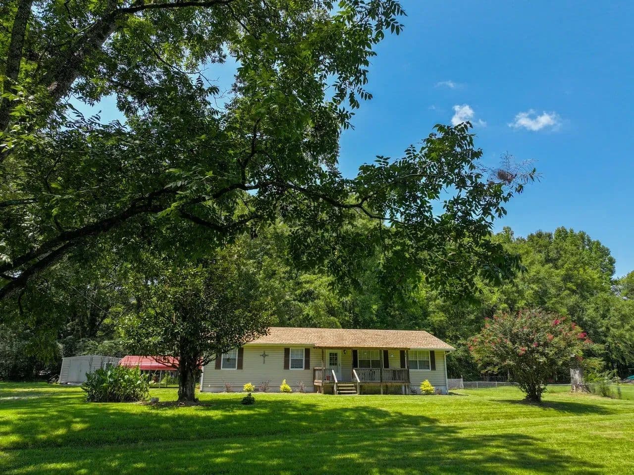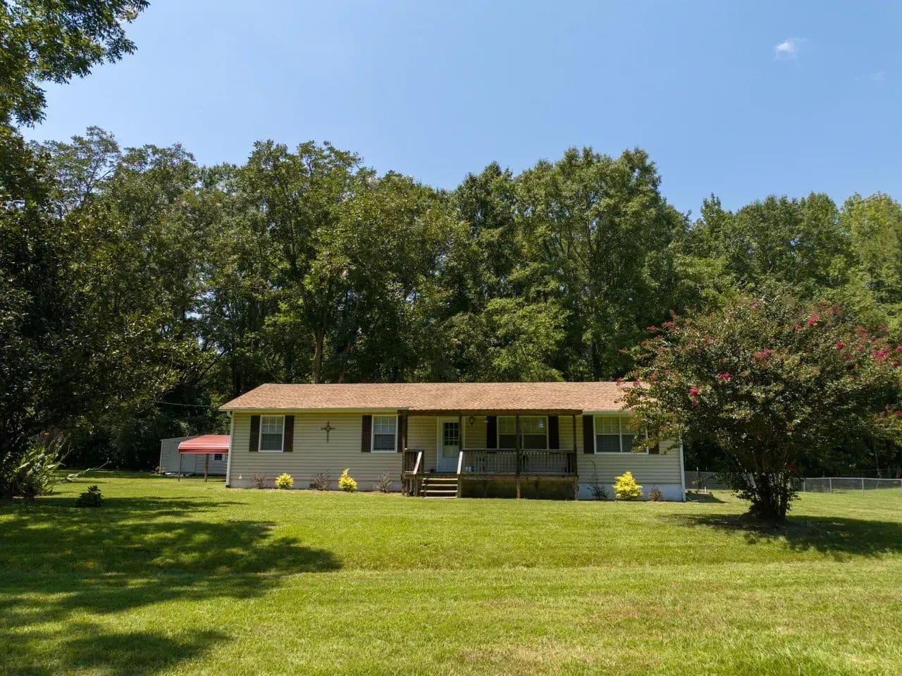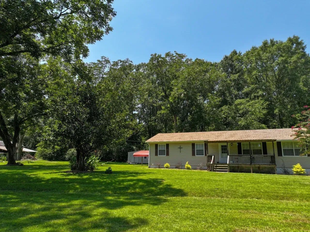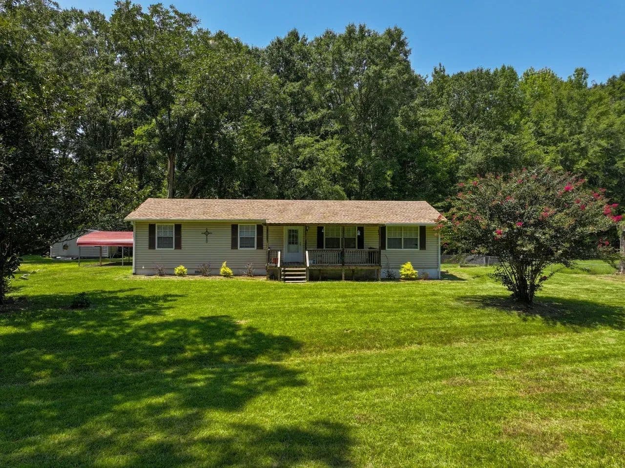 You’ll love relaxing on the front and back porches, soaking in the peaceful surroundings of the charm of country living. The property also includes a carport and a beautiful tree line at the back that offers shade and privacy. Appliances, including an electric range stove and dishwasher, and a spacious outdoor storage shed are included with the sale of the property!