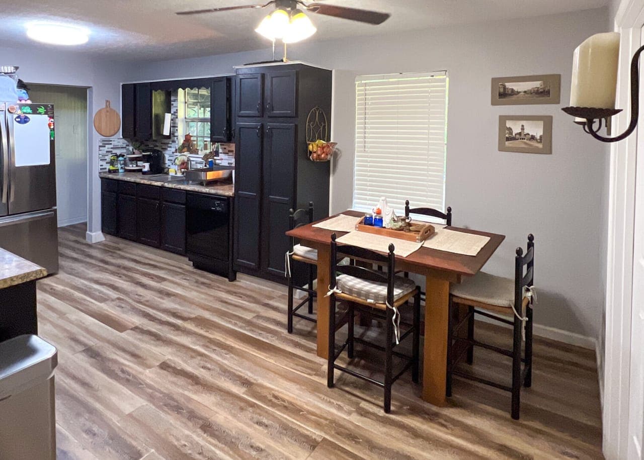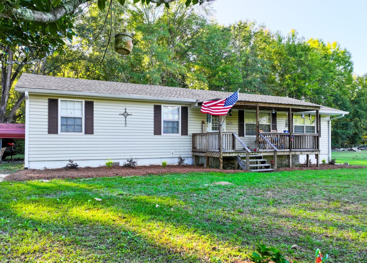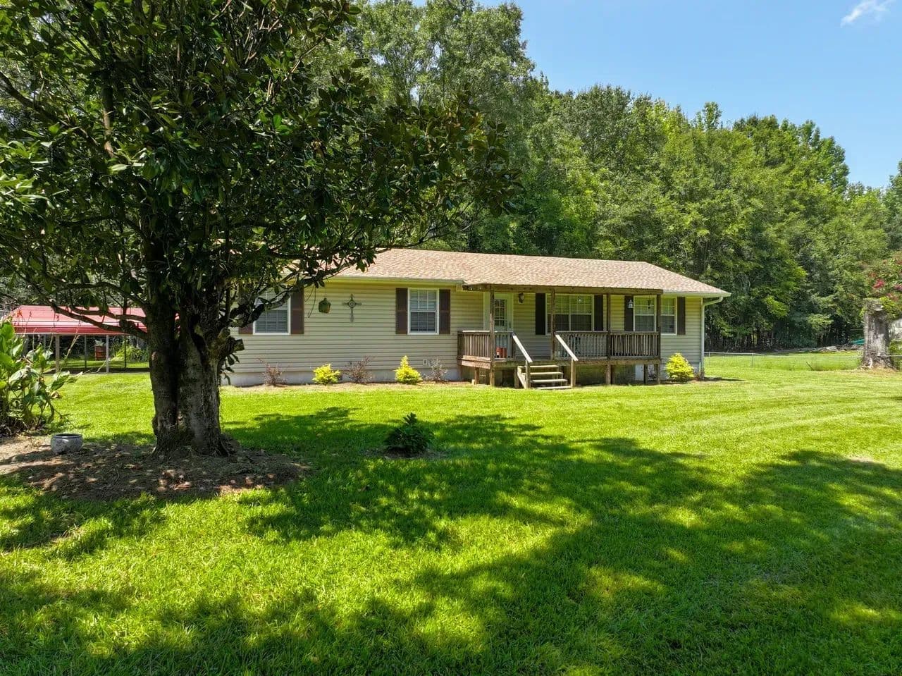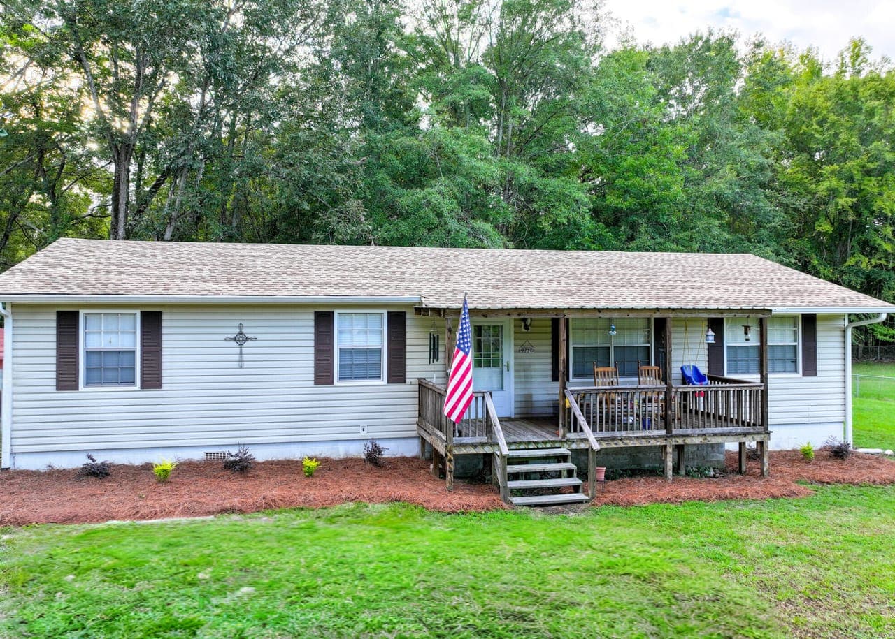 Enjoy country living on a 1.17 treed lot in this 3 bedroom, 1 1/2 bath home. This home boasts a brand-new roof, new vinyl siding, and gutters, combining modern comfort with timeless southern appeal. The updates are extensive and thoughtful, featuring a newly added room off the kitchen with French doors, ideal as an office, 4th bedroom, or bonus space. Other improvements include French drains, updated electrical, beautiful beadboard in the utility room, freshly painted kitchen cabinets with a new backsplash, and a complete interior repaint—including walls, ceilings, closets, and doors.