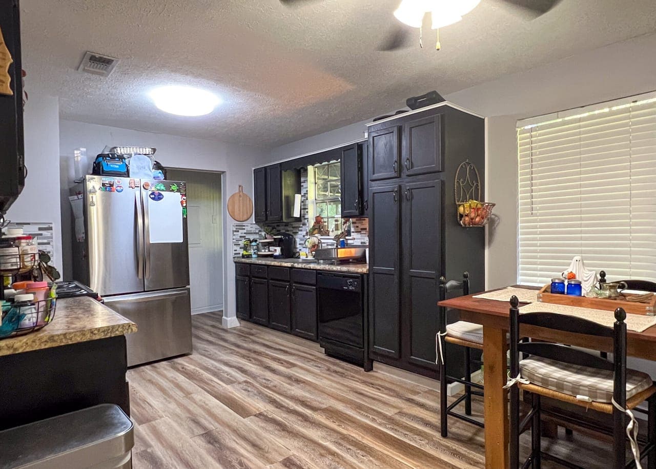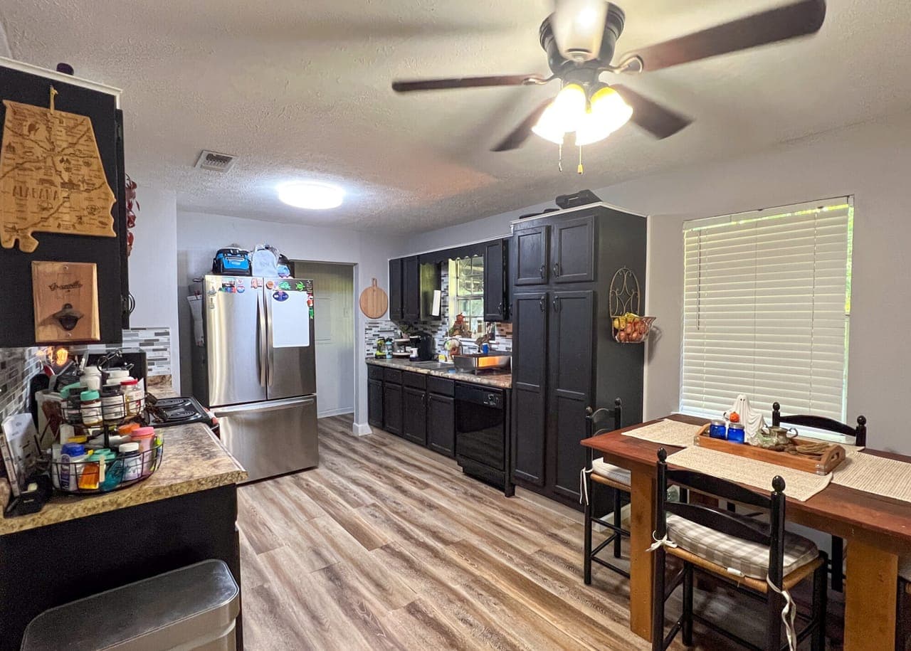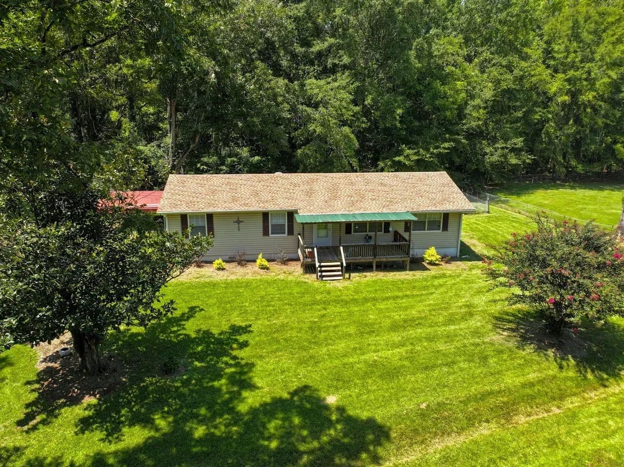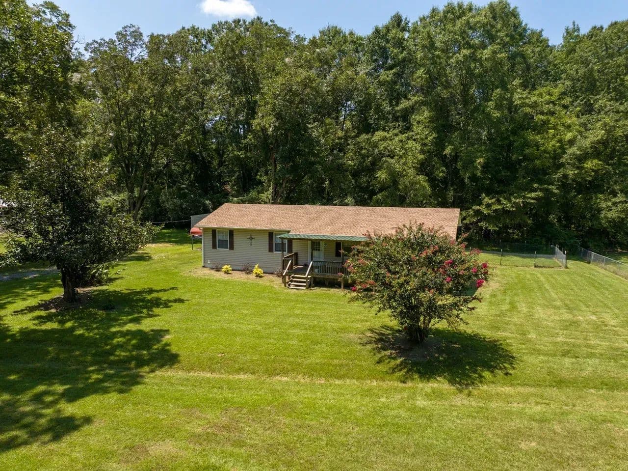 Enjoy country living on a 1.17 treed lot in this 3 bedroom, 1 1/2 bath home. This home boasts a brand-new roof, new vinyl siding, and gutters, combining modern comfort with timeless southern appeal. The updates are extensive and thoughtful, featuring a newly added room off the kitchen with French doors, ideal as an office, 4th bedroom, or bonus space. Other improvements include French drains, updated electrical, beautiful beadboard in the utility room, freshly painted kitchen cabinets with a new backsplash, and a complete interior repaint—including walls, ceilings, closets, and doors.