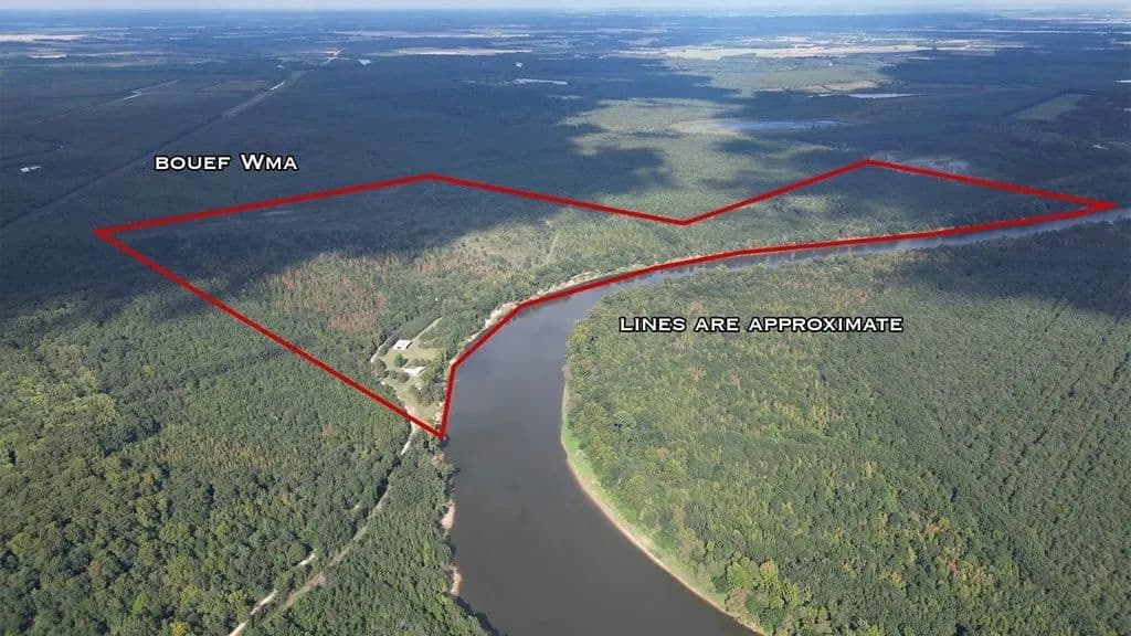 Hunting land for sale in Catahoula Parish, LA with a camp on the Ouachita River. This 265+- acre tract adjoins the Bouef WMA in an area known for giant whitetails, flocks of flight ducks, and gobbling turkeys. The property has an amazing trail system and is great habitat to hold those bruiser bucks the area is known for. The food plots and lanes are already large but can be manipulated to be even larger at a very low expense. There is an area that can be made into a great duck hole with minimal work as well. Being totally unencumbered with government programs, you can do to this property as you wish. The camp overlooks the Ouachita River providing great views and fishing opportunity. It can sleep over 15 at a time. There are two large pole barns to store equipment as well. Adjoining is thousands of acres of Bouef WMA giving you ample opportunity to make a "wild hunt" every now and then. This property is truly turn key. Bring food and ammo and go hunt! Give me a call today.