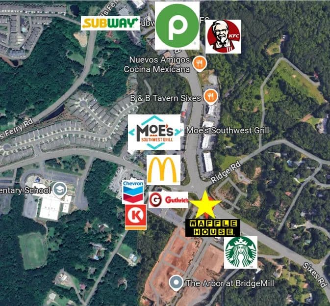 Sales Price: $825,000 Lot Details: All site work has been completed, including paving and lighting. Parking lot is shared between Guthrie's and Waffle House Lot Permit: 2-story 4,850 SF Restaurant was previously entitled and permitted. It is ready for a building. A full set of architectural plans are available upon request. Lot Size: 0.334 acres Zoning: TND Utilities: All public utilities available to site. Traffic Count: ~19,650 VPD Neighbors: Waffle House, Guthrie's Chicken, Starbucks, McDonald's, Subway, KFC, Publix, Circle K / Chevron, Moe's Southwest Grill, ModWash Car Wash and more!