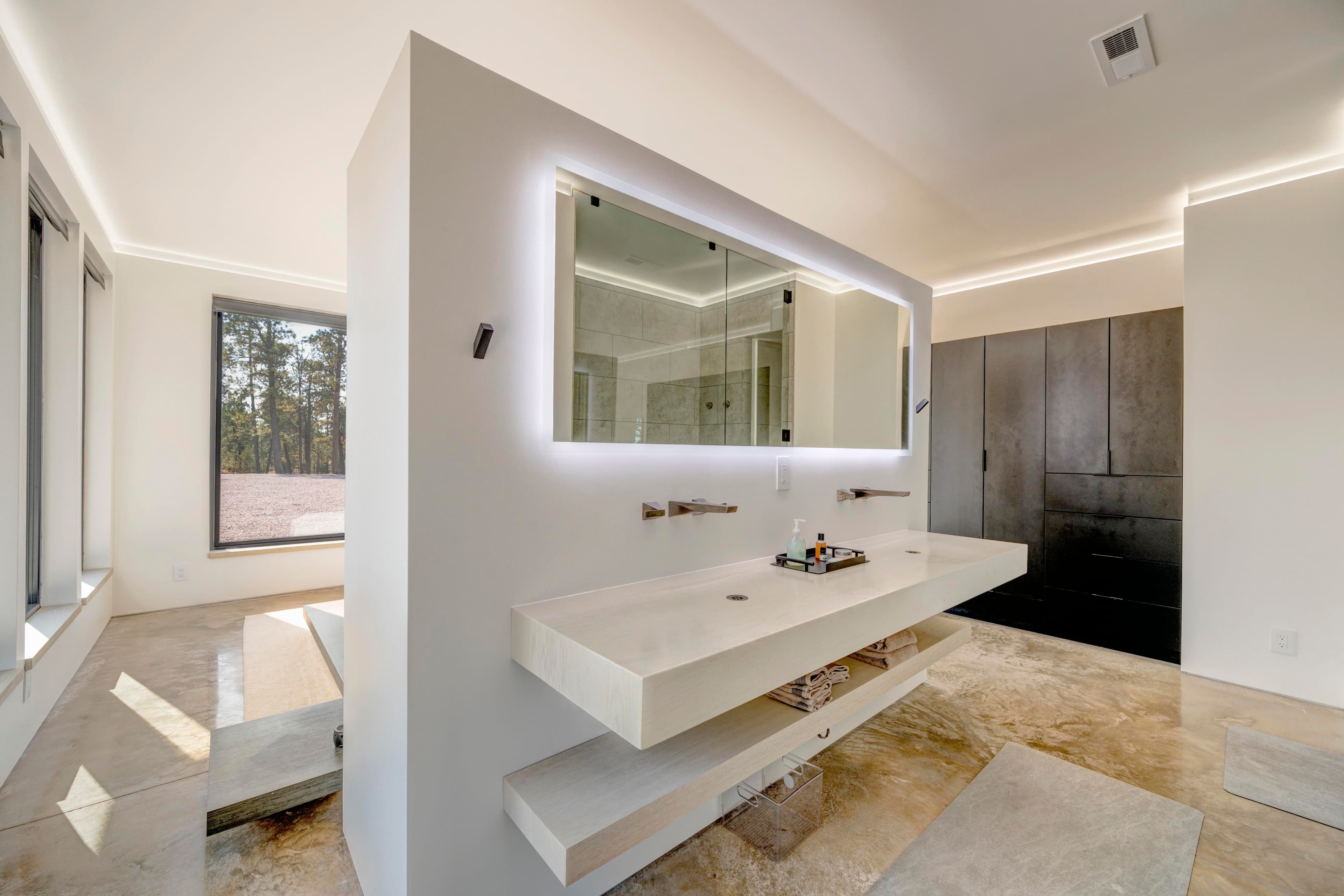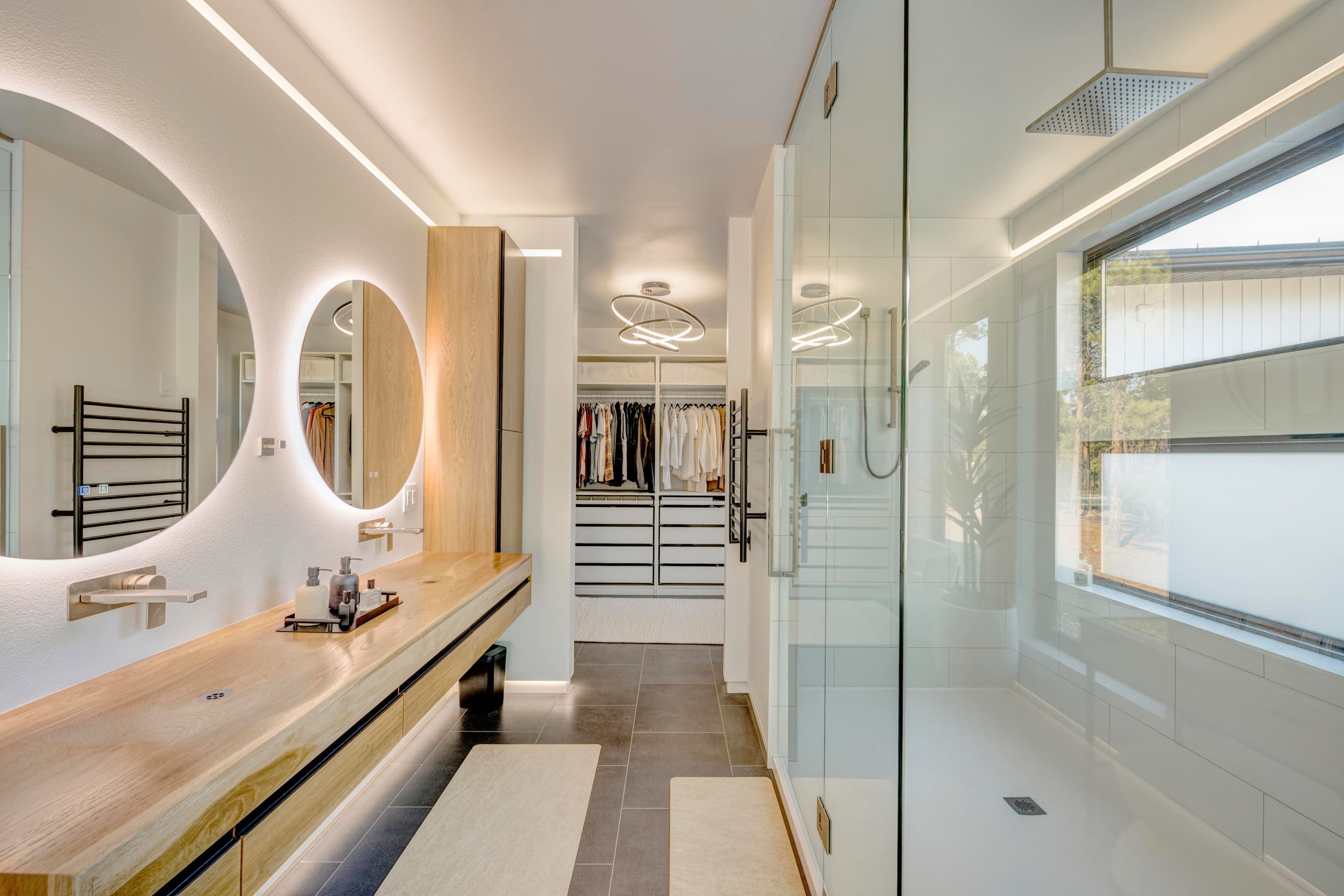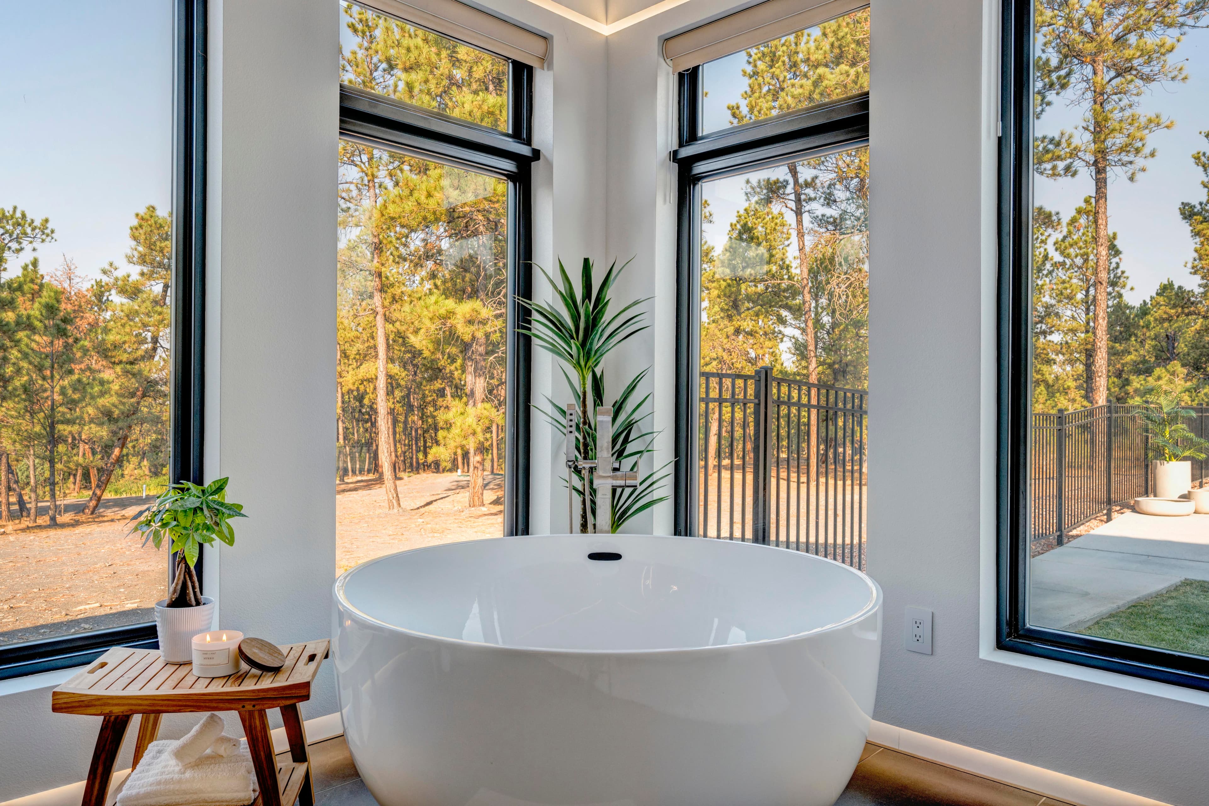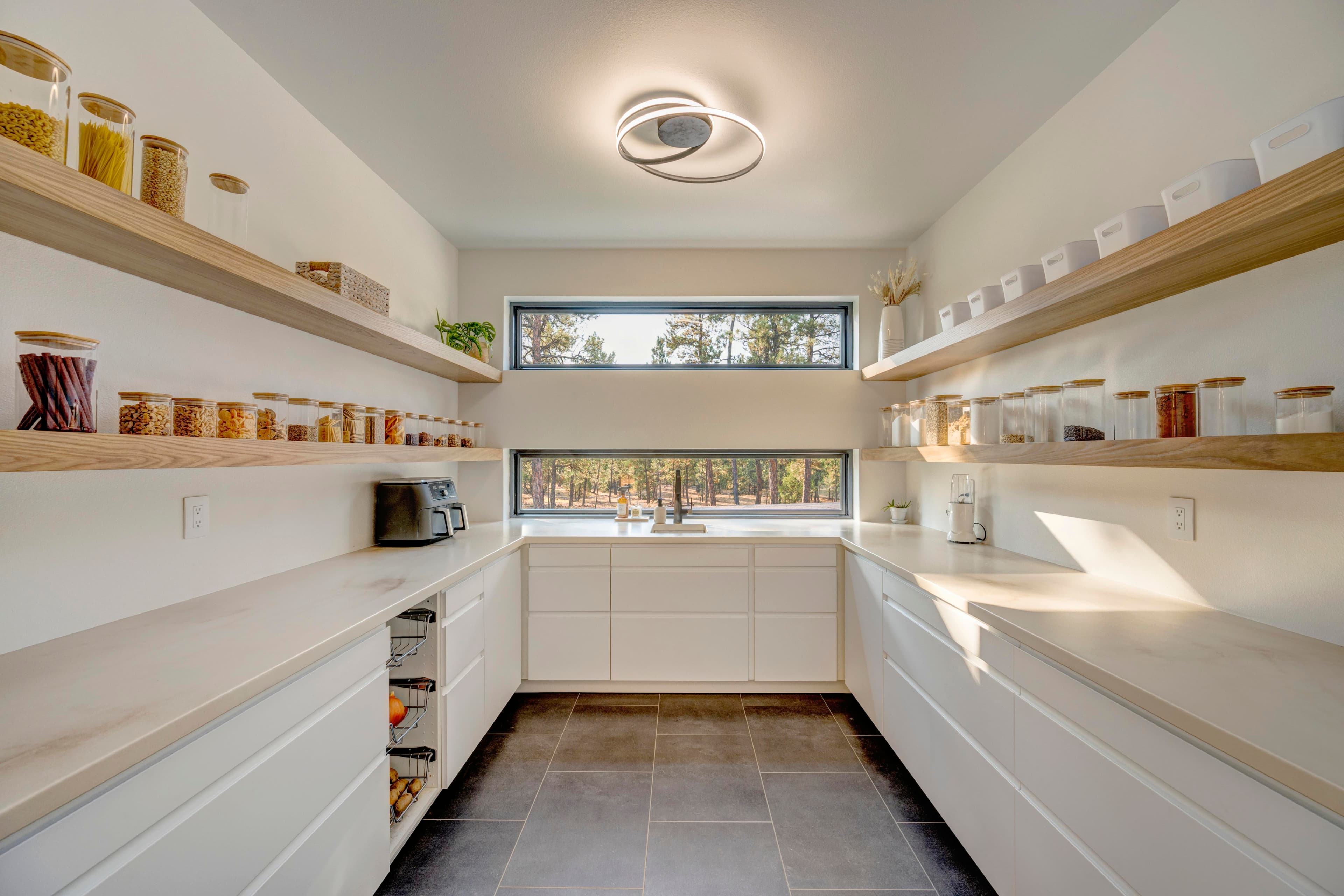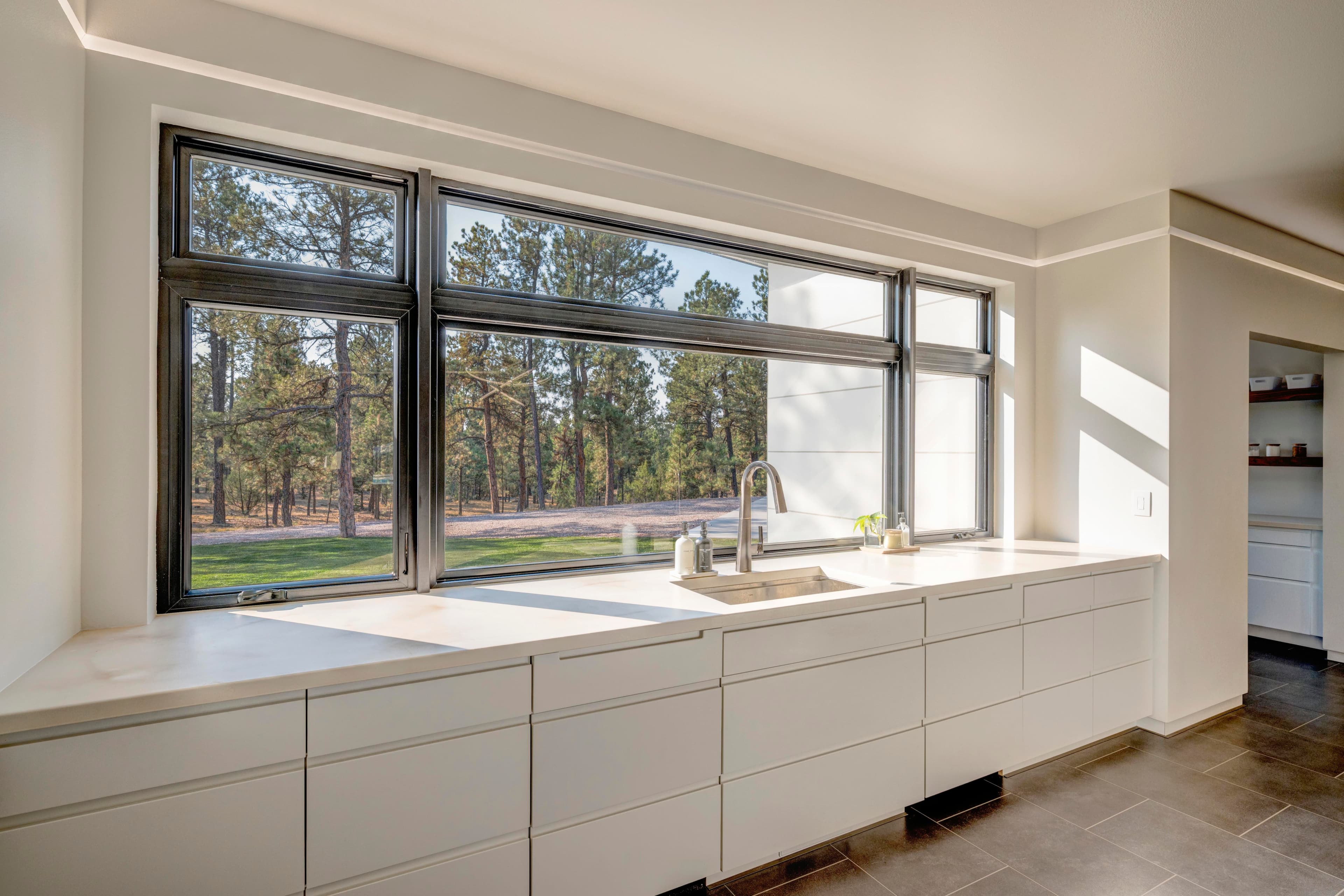 This modern home with abundant natural light is loaded with modern smart home features, including a fully automated sprinkler-and-lawn-mowing system, creating a perfectly manicured lawn.