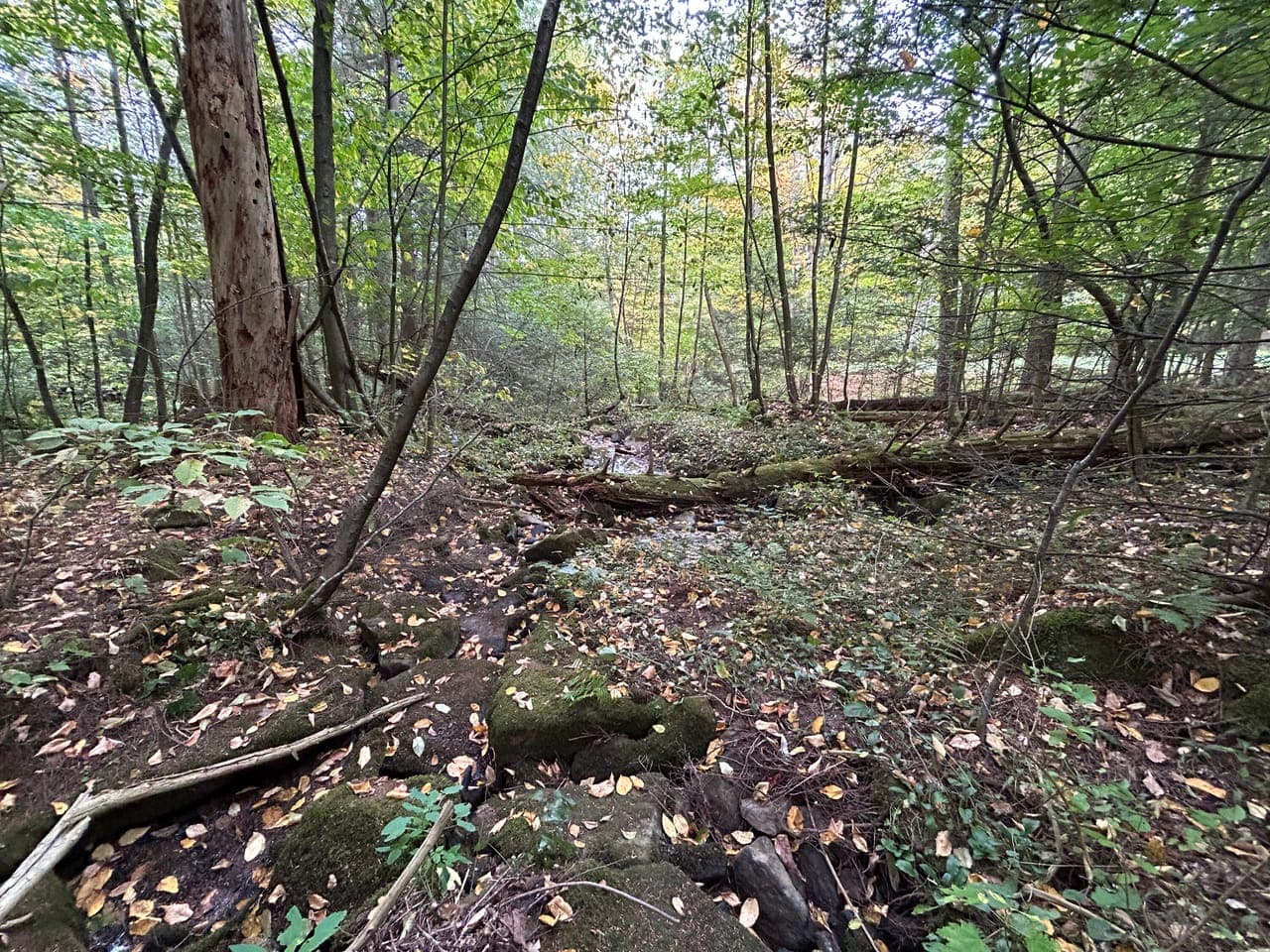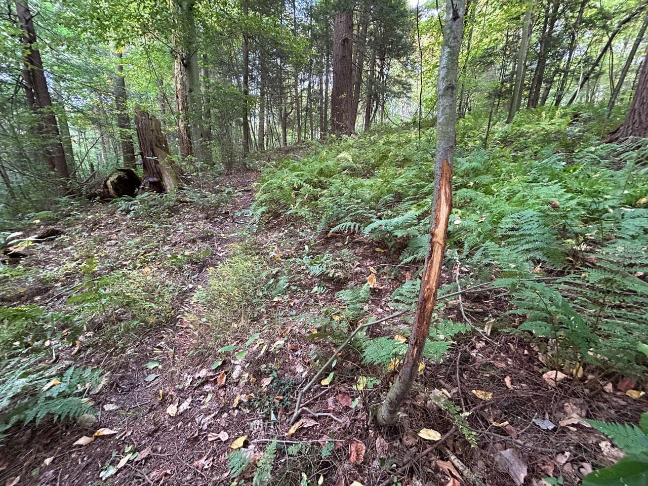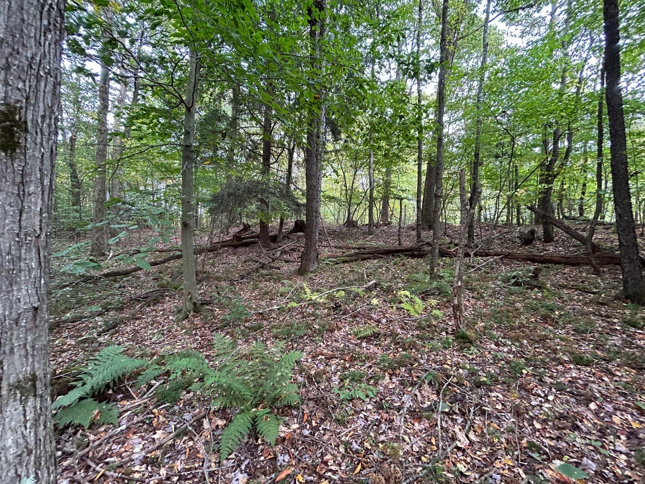 The land features a mix of mature hardwoods, marketable timber, and varied topography ranging from level benches to gentle slopes. Several potential building sites provide ideal locations for a new home or cabin retreat. Public utilities are available nearby, and there is excellent frontage along Route 271 for convenient year-round access.
