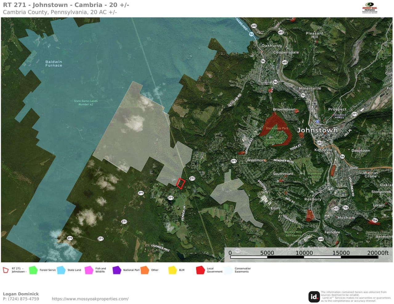Discover a rare opportunity to own 20 ± acres of vacant land along Menoher Boulevard (Route 271) just outside Johnstown, Pennsylvania. This exceptional tract borders State Game Lands 42, giving you direct access to thousands of acres of public hunting and outdoor recreation while maintaining the privacy and independence of your own property.