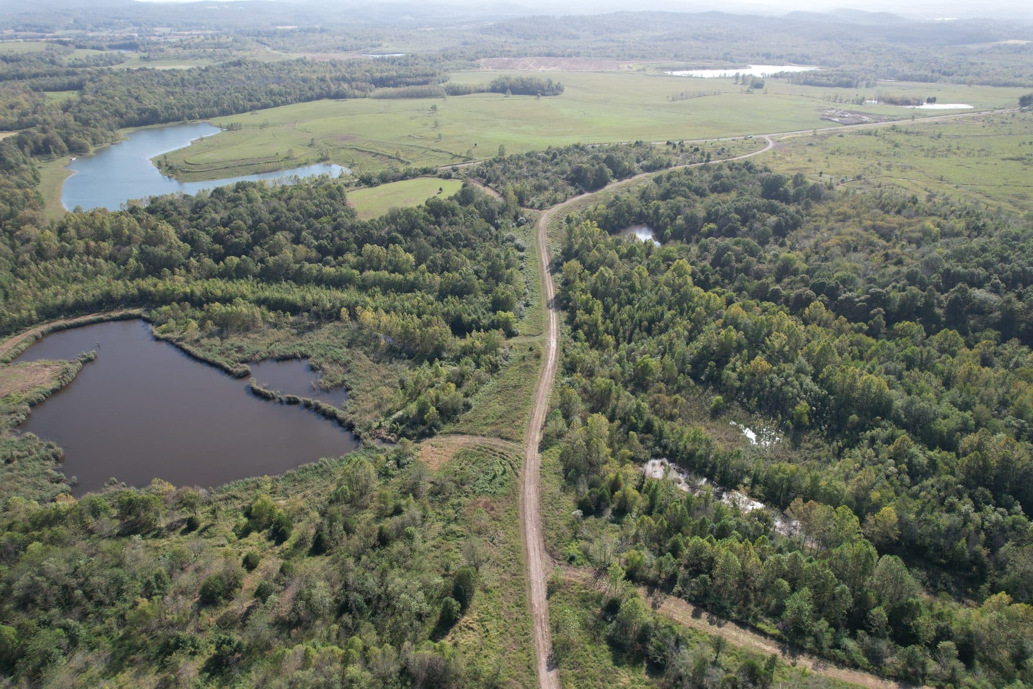 In addition to the lake, several smaller ponds are scattered throughout the property, offering additional fishing spots or serving as attractive water sources for wildlife, enhancing the property’s overall hunting and recreational value.