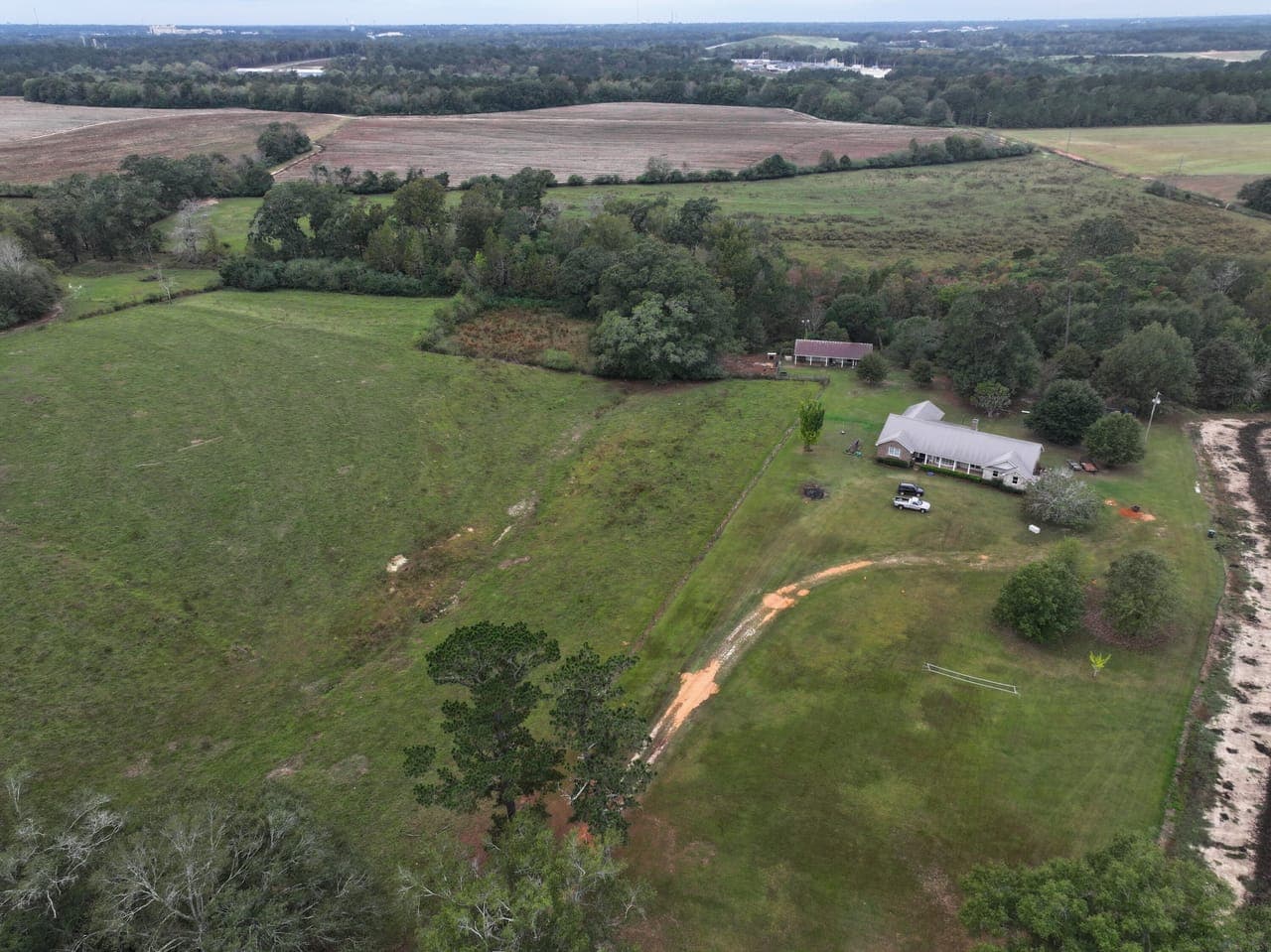 Discover this exceptional 180 acre property, perfect for development with available sewer and utilities, farming, or creating your dream homestead. Located within Dothan city limits, this stunning land includes rolling hills, rich soil, a creek, and pockets of woodlands. With county road frontage on both Omussee Road and Huskey Road, the property offers beautiful, long-range views and convenient access from two main roads. Having most recently been a fully operational row crop and cattle farm, the land is equipped with cross fencing, a pond, multiple barns, and established infrastructure. City water and sewer are already available at the property, making it ideal for subdivision potential. Whether you’re looking to develop, farm, raise livestock, or create a personal retreat, this property can be tailored to suit your vision.