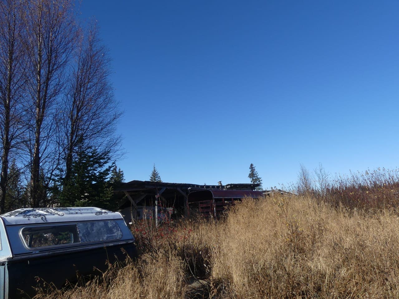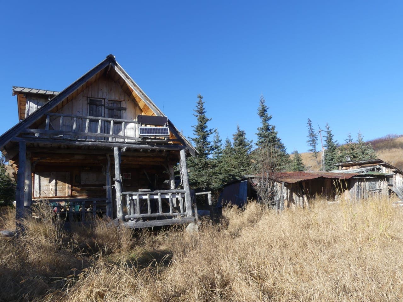 Lost Creek Ranch'' an oasis in the heart of the Caribou Hills that was once fully functioning off-grid ranch. Basically 100 acres of prime land of stunning views, rolling hills. A hand hewn log cabin, outhouse, and storage shed nested in the holler. Up top of the hill is the barn, equipment pole barn, and foundation for a new home. Equipment for hay making and other tools for your homestead!