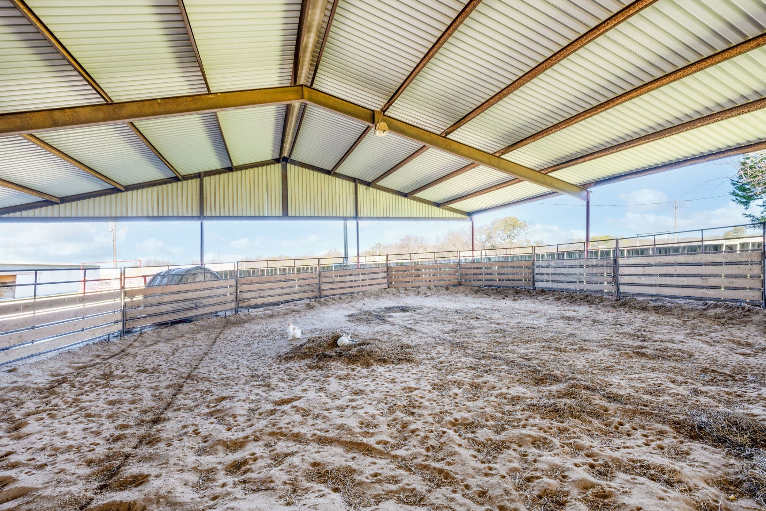 Improvements The 3 bedroom 2 bathroom brick home has been completely renovated to include new flooring and fixtures, Granite countertops, brand new appliances in the kitchen, fresh paint throughout and so much more. The horse facilities include a 130′ x 130′ covered arena, a separate 90′ x 100′ covered pen with 7 oversized stalls and room for a round pen and warm-up area. The 10-stall horse barn features a tack room, feed room, office, half bathroom, and a 1 bedroom, 1 bathroom 800 square foot apartment. The outdoor arena is 275′ x 225′ and there are multiple turnouts and pastures with shelters. DC Ranch is private and quiet but has easy access to I-35 and is just 1 hour and 20 minutes from Fort Worth.