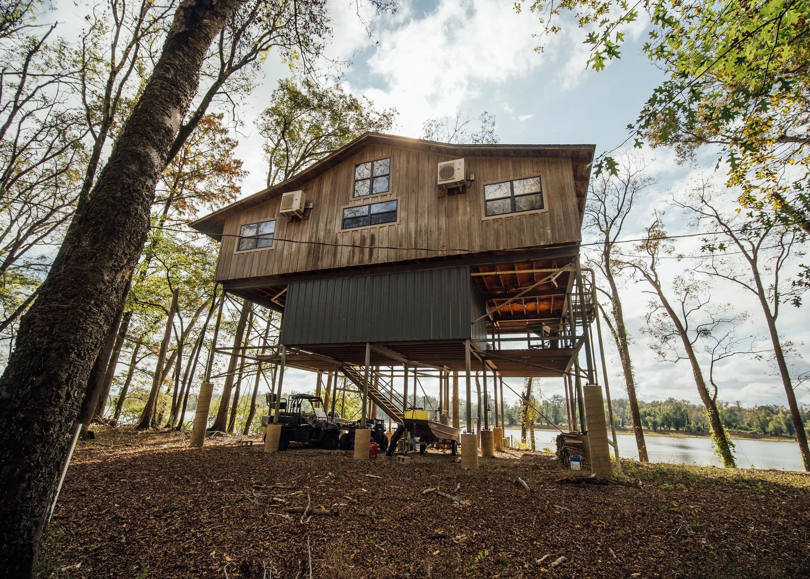 Welcome to The Lake Albemarle 141.99, located in the Mississippi River Bottom approximately 20 miles northwest of Vicksburg. This 141.99± acre Issaquena County property features a cabin/lake house, a private blue hole, and a private boat ramp to Lake Albemarle. The cabin has been raised approximately 4.5 feet above the 2011 floodplain and overlooks the beautiful lake. The underside offers a great storage area for boats, UTVs, and yard maintenance equipment. As you climb the stairs, the second-floor landing is equipped with a 14×23 enclosed storage room perfect for keeping your hunting equipment out of the weather. Finally, you will move up to the cabin and enter the porch, where you can imagine family cookouts or a place to enjoy a cup of coffee while overlooking the water. As you enter the 1,408± square foot cabin, you will appreciate the old 1933 heart yellow pine interior with a real wood-burning fireplace that screams, “Come on winter!” The beautiful cypress flooring will quickly catch your eye. The great room and kitchen area share a vaulted ceiling with a rustic river-bottom-made chandelier, and located off to the side is a small bar, perfect for all your cocktail needs. On each side of the great room/kitchen, you will find two bedrooms and one bathroom. The cabin was constructed in 1974 by the current sellers and has been part of countless memories ever since. Outside, there is a boat shed and your private concrete boat ramp to Lake Albemarle. You will have endless fishing opportunities in the summer and duck hunting opportunities in the winter.