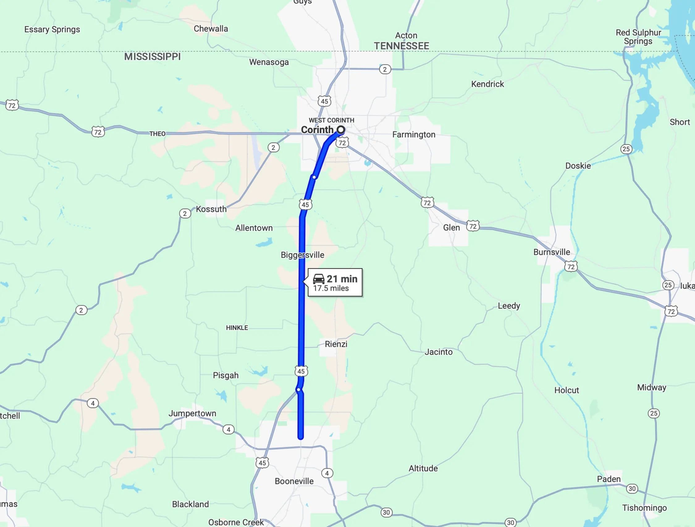 According to the Mississippi Department of Transportation, the daily traffic count is 6,400 vehicles, which will certainly give your business ample exposure! The property is located just over two miles from US-45 and approximately 17 miles from Corinth.