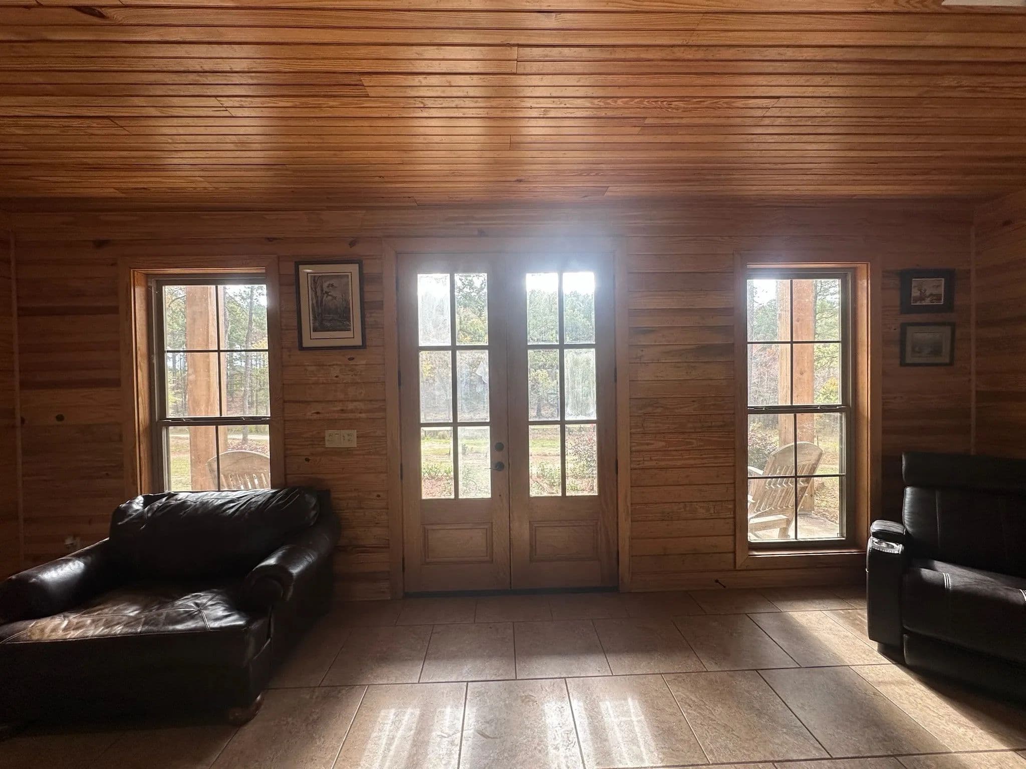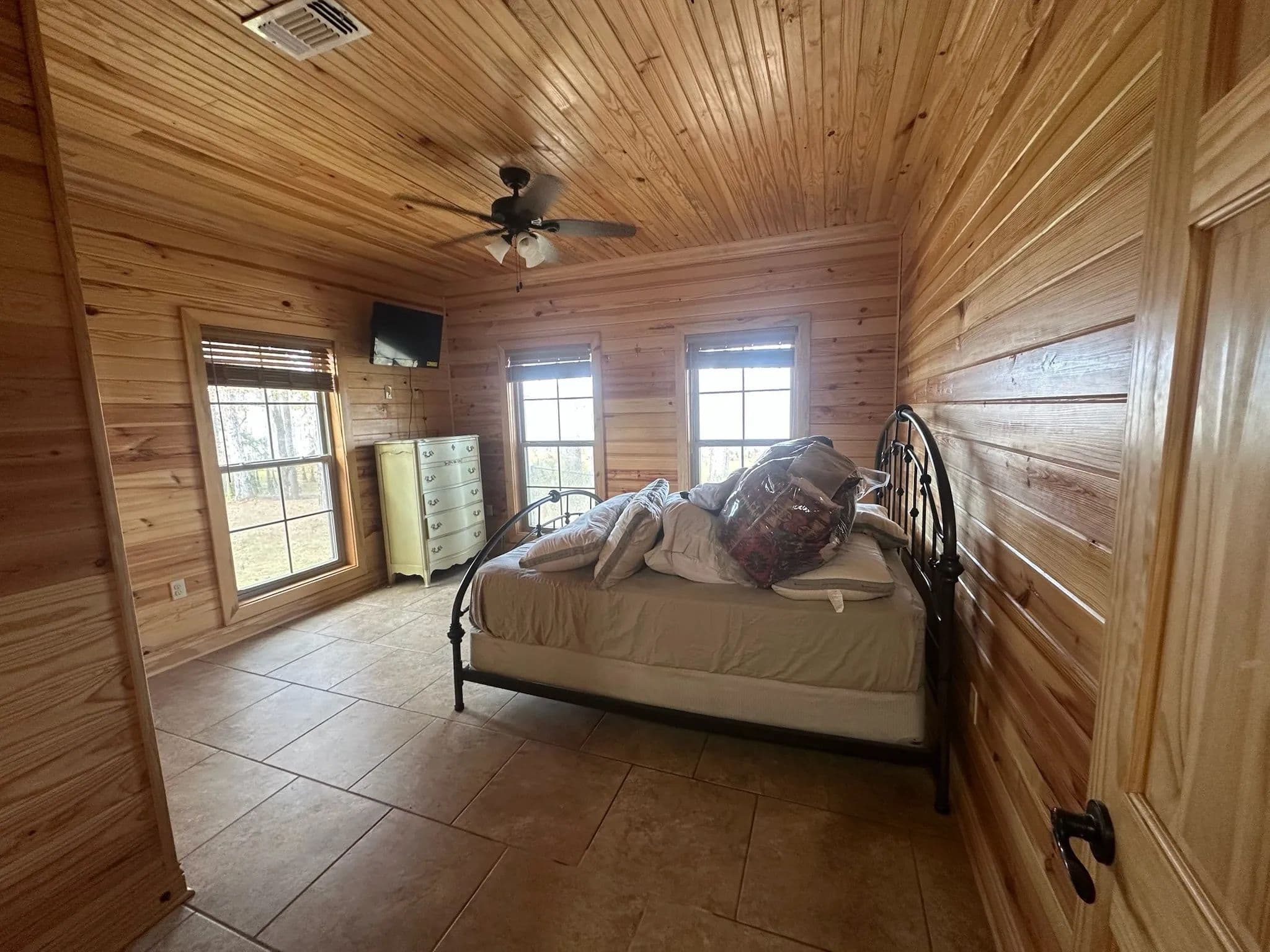 4 Bed 3 Bath House for sale with 125+/- acres on Kitterlin Bay in Jena, LA. The house sits on top of a hill overlooking Kitterlin Bay and offers 125 acres of hunting land with it. The house is 2,642 sq ft and was built in 2016 from the pine cut on this property. There is a large living room and kitchen area with glass windows overlooking the Bay. There are 30 acres of mature select cut pine around the house with the other 95 acres being 12+ year-old pine plantation. A pipeline runs through this property which is currently planted in food plots with multiple box stands and feeders for hunting. Rarely do you find a house this size with enough land to hunt and manage timber. Kitterlin Bay Hunting Club owns over 4,000 acres adjoining this property. The new owner of this house will have a chance to join this club which would give you access to duck, turkey, and deer hunting as well as fishing. There are so many opportunities that come with buying this house. The boundaries on this property will be just short of the water’s edge around Kitterlin Bay. If you want to learn more and would like to look at this property, schedule your own private showing today!
