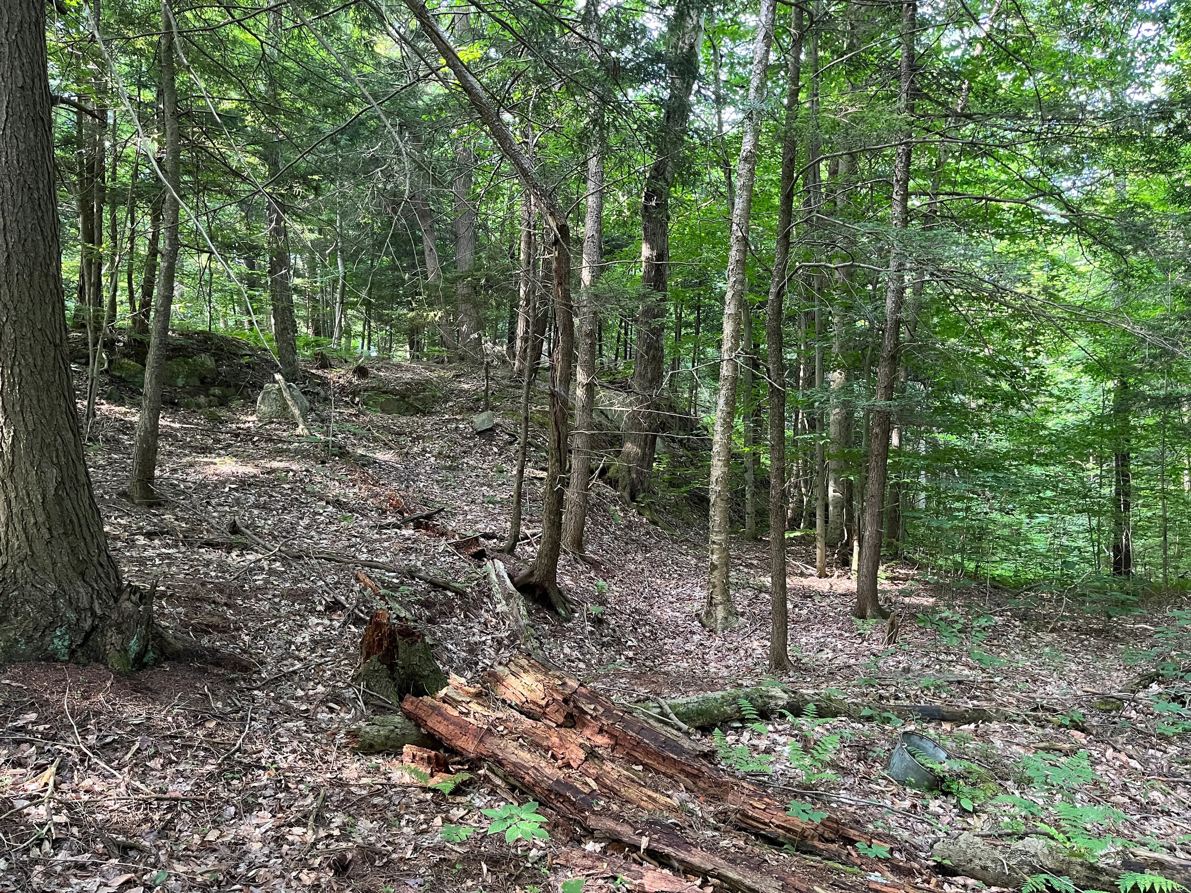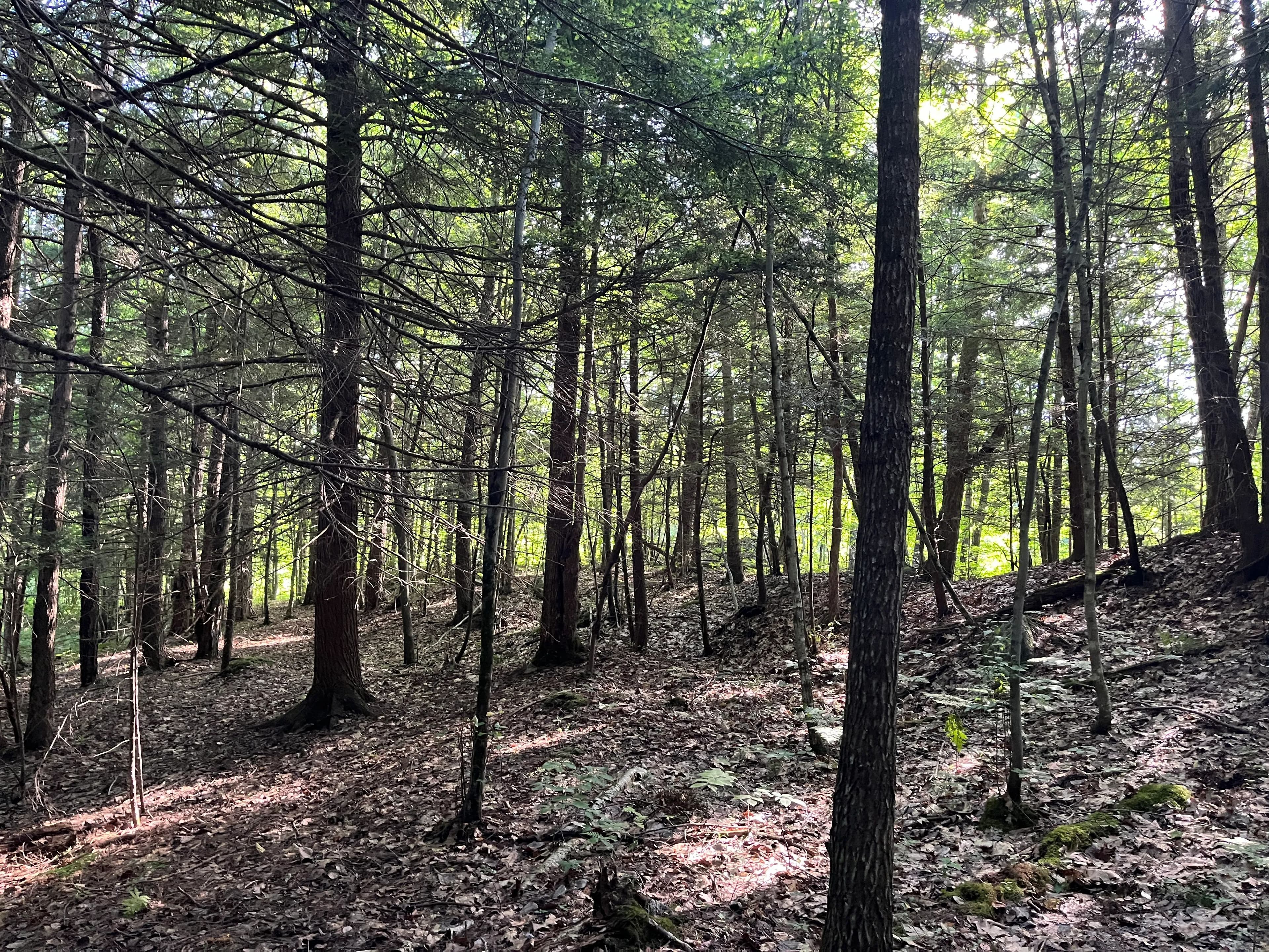 The property has rolling ridges, rock outcrops, and a beautiful hardwood forest with mixed hemlock and pine trees. The lot was recently surveyed, and the boundary lines are well marked. This is a great property to use as a base for all your outdoor activities.