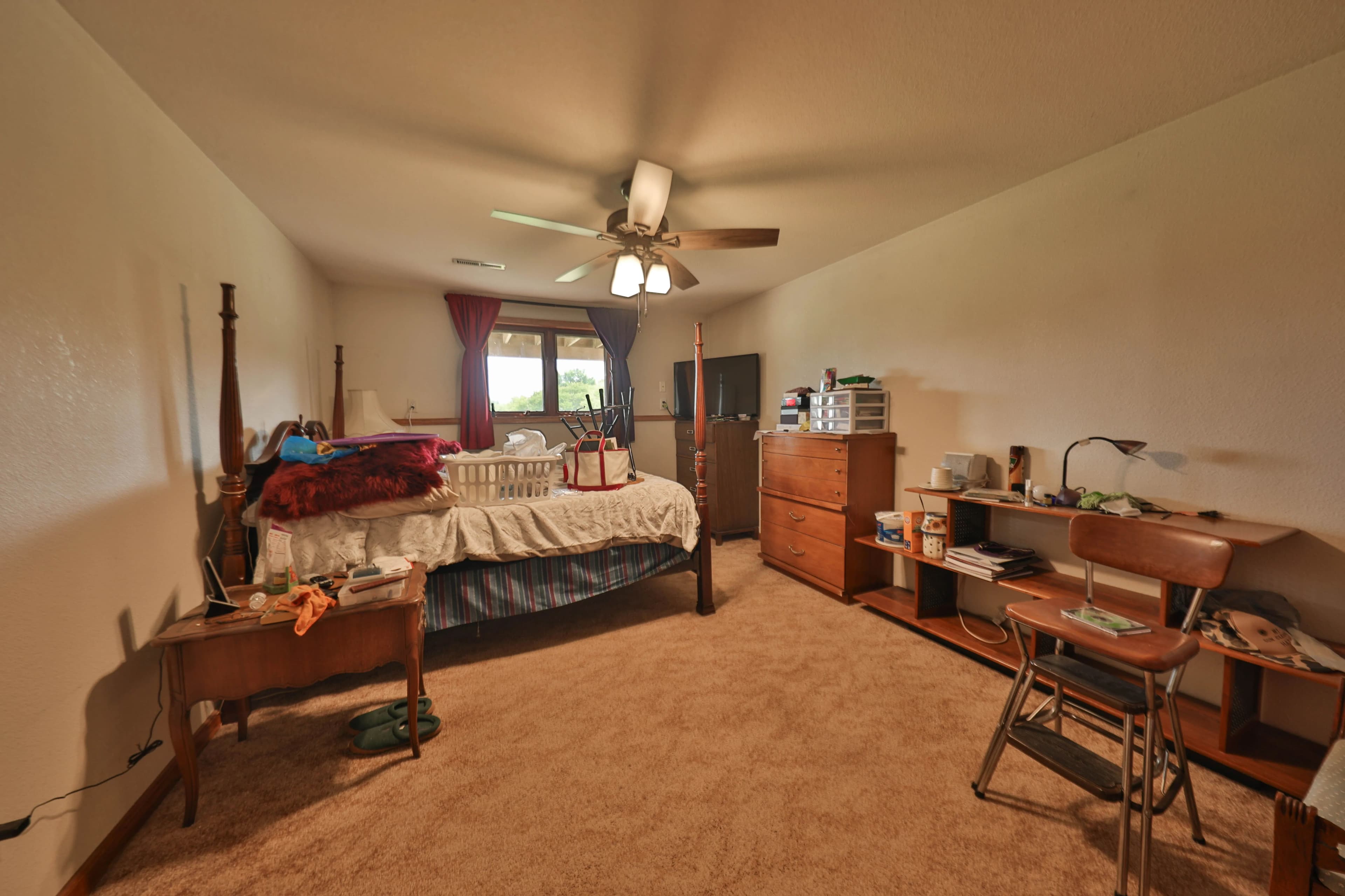 The main bedroom suite offers a serene retreat with a walk-in closet and direct access to a private walk-out deck, perfect for enjoying morning coffee or evening sunsets. The en-suite bathroom features his and her sinks, with a 220-amp hookup available for an outdoor hot tub option, offering a luxurious touch to your relaxation. The main level has an additional bedroom with 2-car attached garage including a summer kitchen cannery.