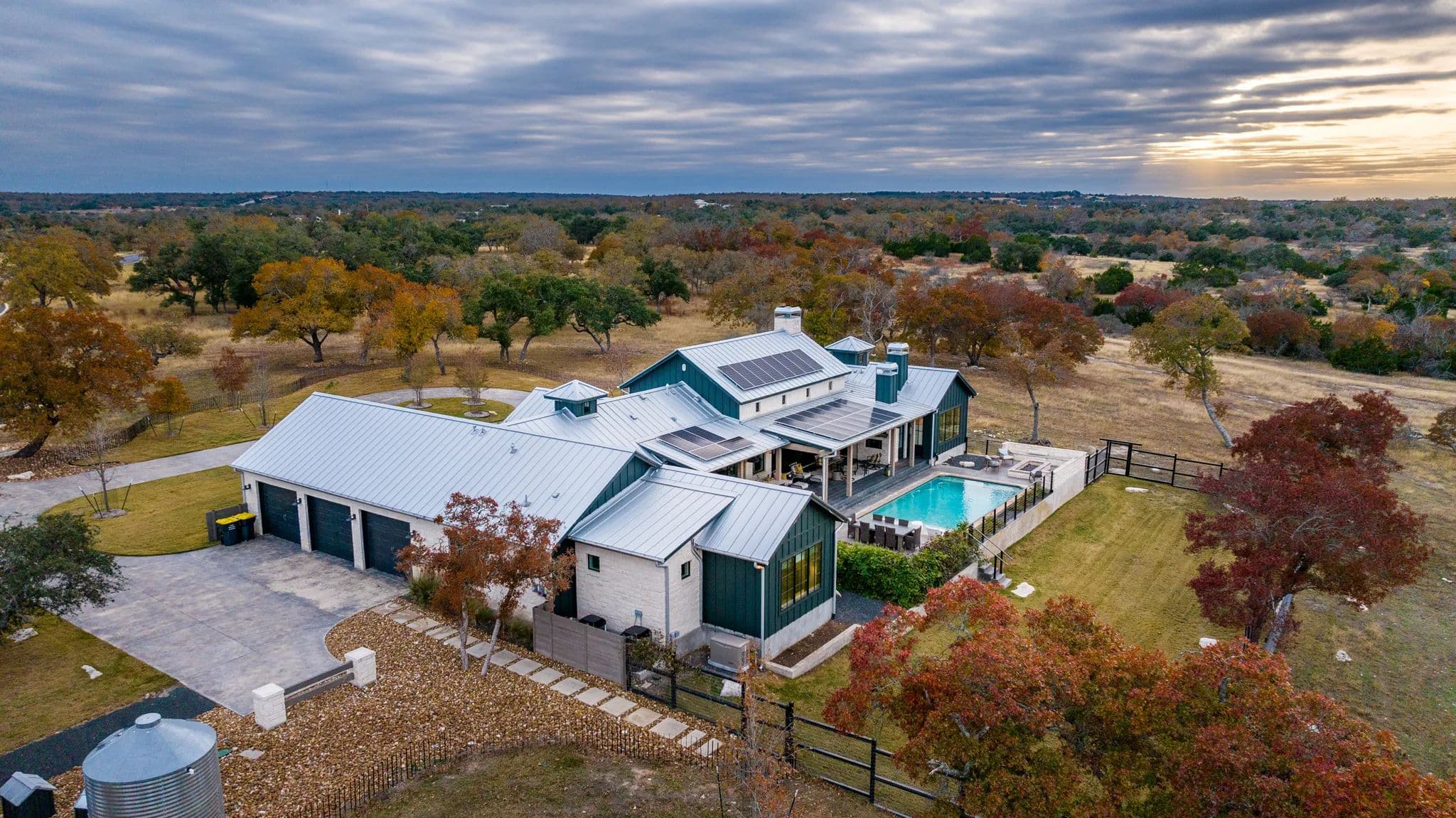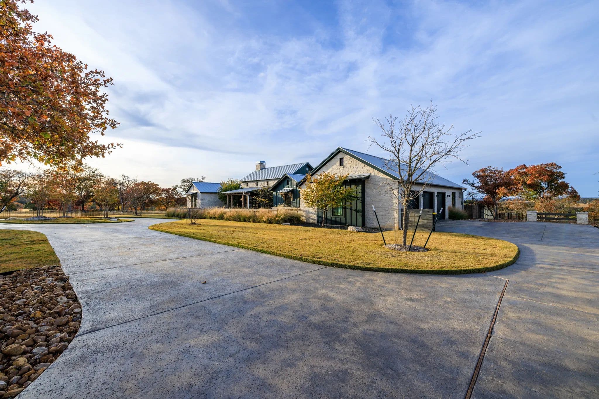 This luxurious home, located in Hidden Springs, Fredericksburg was designed by and featured on the cover of HOUSE BEAUTIFUL, Oct 2021. This 4BR 4.5BA, 3,923 SQ Ft home sits on 10 acres in Gillespie and Kendall counties with outstanding with long distant views to the South looking down toward the ranch below. Trees and vegetation offer beautiful colors and privacy..