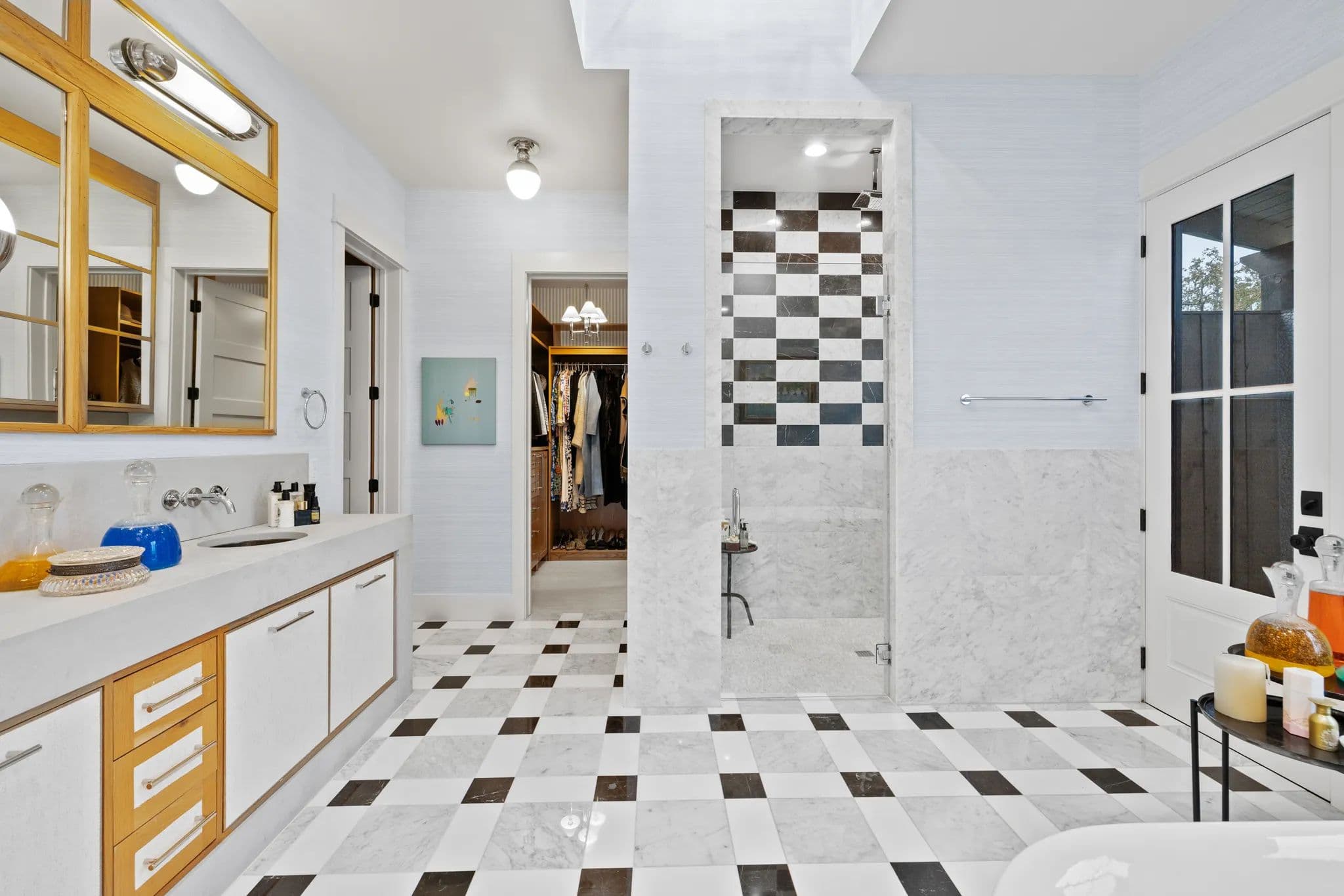 The master bedroom and bathroom feature beautiful windows and views, as well as a gas fireplace. The master bath includes a double vanity, large bath, shower, outdoor shower, and a large custom closet. Additionally, there is a beautifully remodeled bedroom and bathroom.