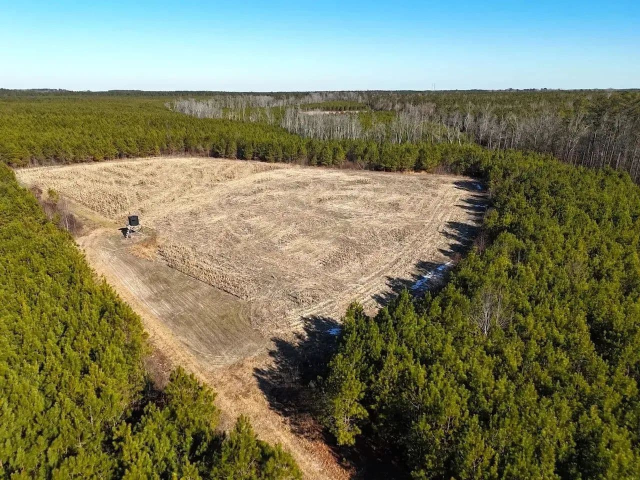 Here is your opportunity to own a premier big game hunting property in the heart of Sussex County, Virginia! This property was designed to attract and hold whitetail deer and turkey. One glance at the layout and you will see how. Over 20 acres of food plots spread across 5 different locations. Hunt any wind direction! A corn and soybean rotation has been established with bumper crops each year! Cow peas are planted on soybean years for early forage and late soybeans come after. Utilize the established fields to concoct your own formula for success! This area is known for great timber production and this property is no exception. The last timber harvest was a clear cut of all but the stream side management zones. This happened in 2014 and the cutover was replanted the following year. Now you have a solid stand of 10-year-old loblolly pines. Come watch your investment grow! A deeded access road gets you in from Rt. 40. 2.8 miles of all-weather road circumnavigates the property with an additional 1.2 miles of interior roads. The road along the eastern boundary is 1.1 miles long by itself! The southern boundary is 1,089 feet along the run of Hunting Quarter Swamp and there’s an additional 4,500 feet of interior intermittent streams. There are several ladder stands across the property and there is a box blind on every food plot. All stands and blinds convey with the property! The off-grid camp site is currently located on the northwest corner of the northwest food plot. There you will find two 10’x12’ bunk houses that also convey with the property!