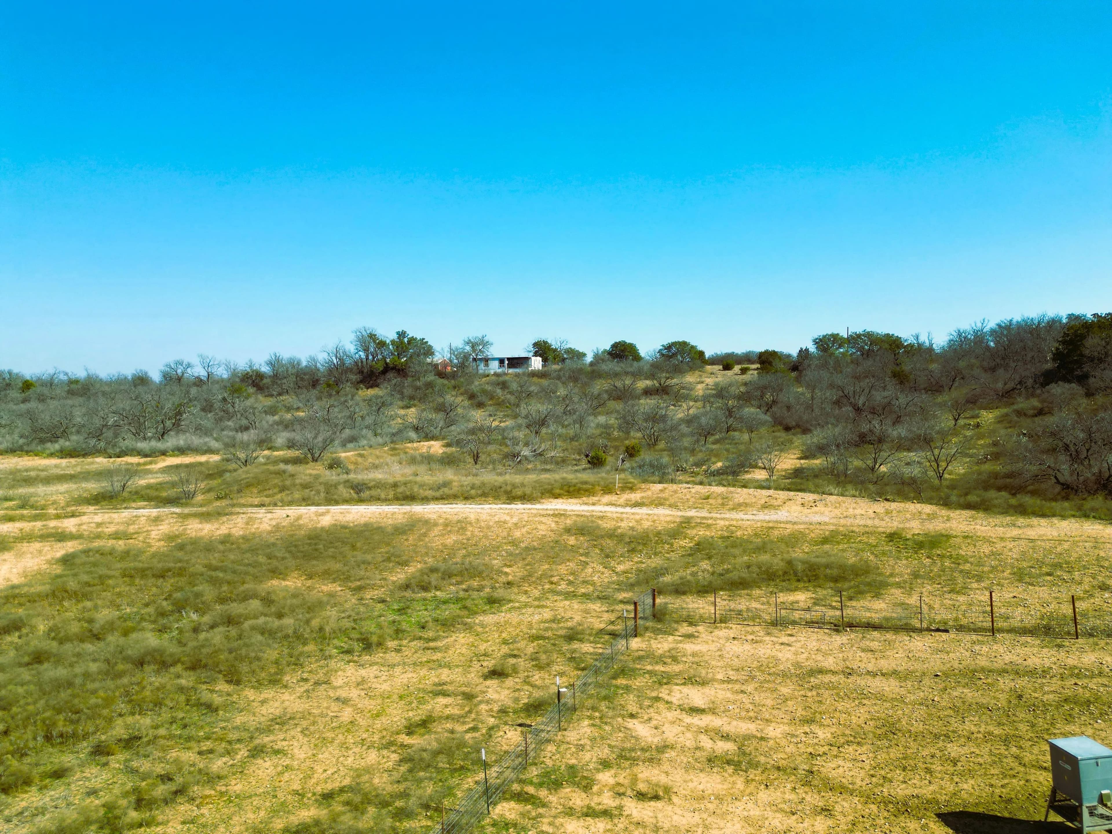 A ridge extends through the front of the property from the south and provides approximately 180 degrees of scenic views across the ranch and beyond. There is approximately 90 feet of elevation change with good rolling terrain off the west of the ridge. Tree cover consists of scattered live oak motts, live oak, elm, pecan, hackberry, bumelia, Texas Ashe, agarita, catclaw mimosa, sumac, mesquite, and cedar.