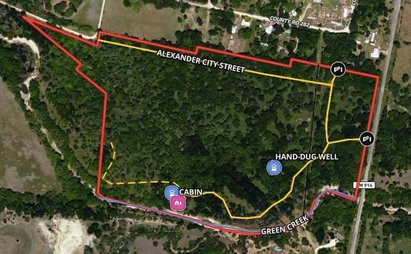 Don't miss out on this opportunity to own a cabin on nearly 50 acres with a water well, electric, and septic already in place. Located just 12 miles South of Stephenville, this property could be an excellent weekend or hunting retreat. Filled with history, this parcel was once a part of the original Alexander Township over 100 years ago. Remnants of the Missouri-Kansas-Texas Railroad that once ran through the property remain as well as several homesites and a city street date-stamped in 1930. With nearly 2,000 ft of Green Creek frontage, wildlife thrives and there is no shortage of good fishing holes. Schedule your showing today to add your name to this property's legacy.