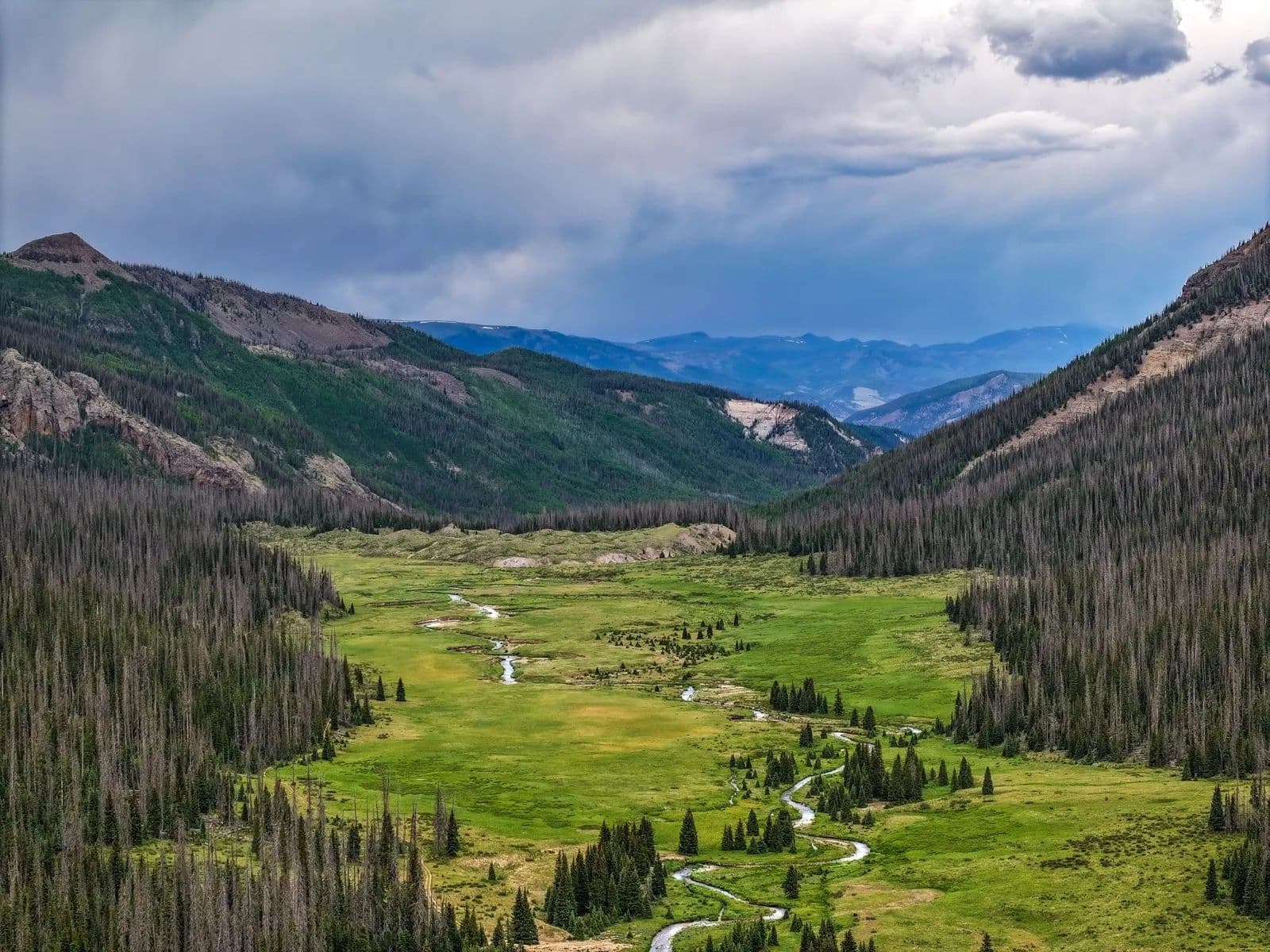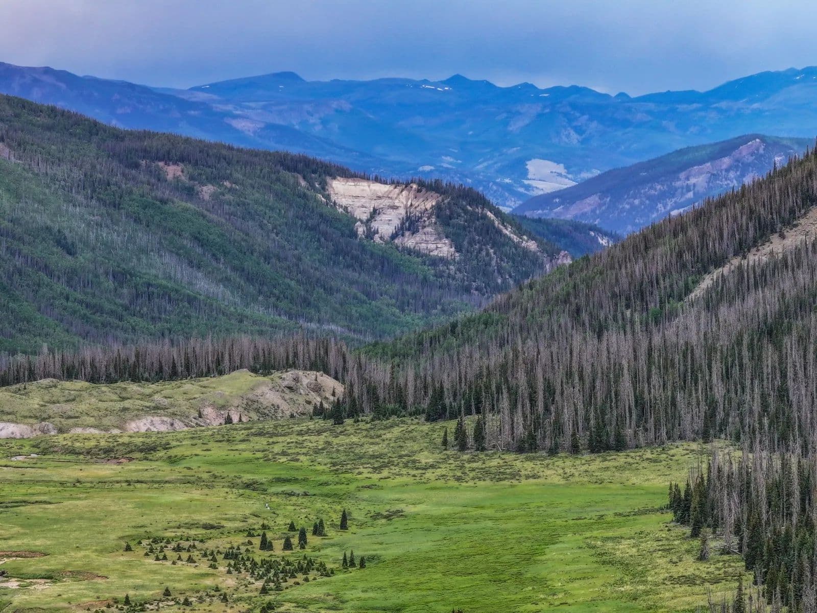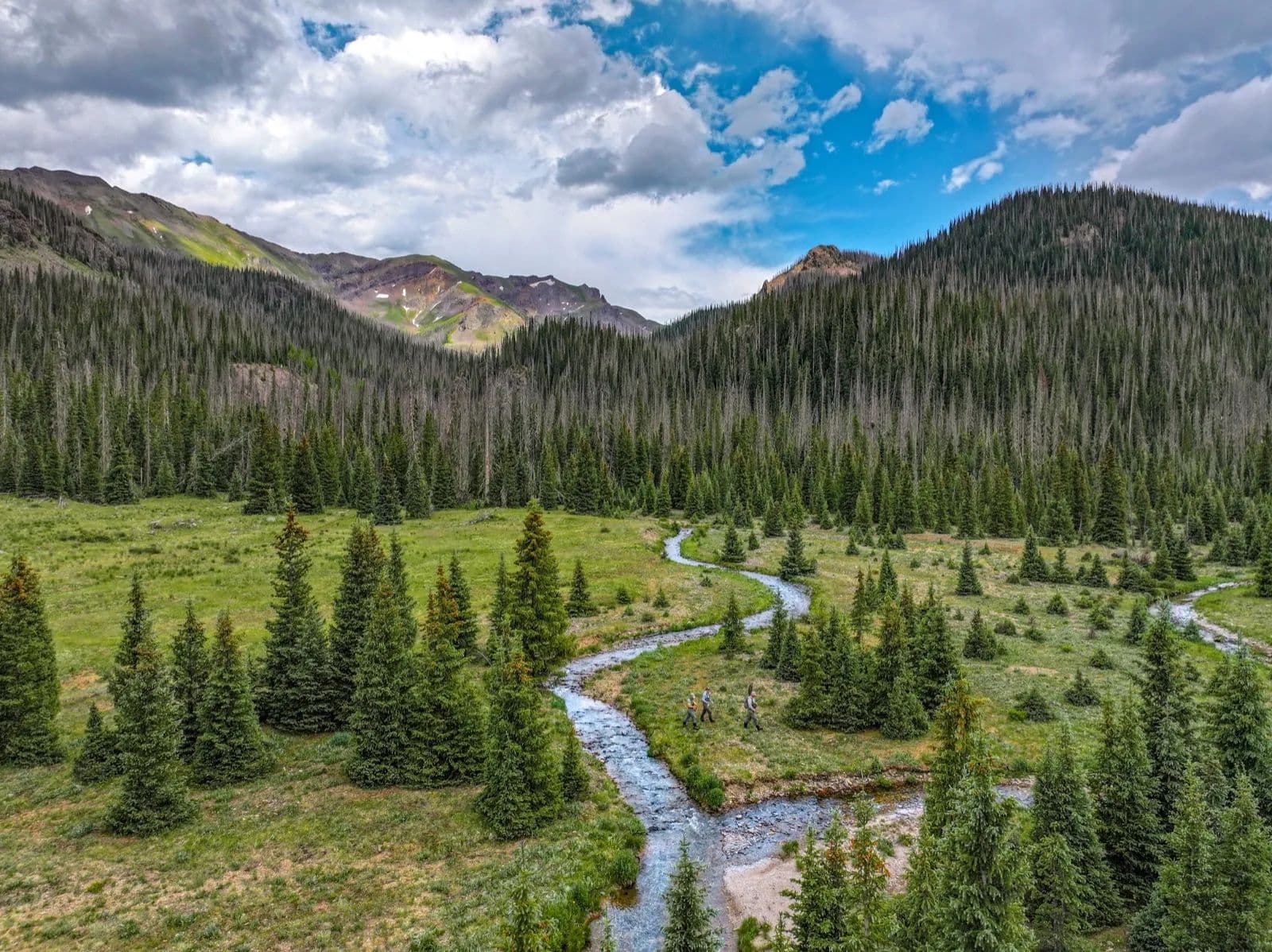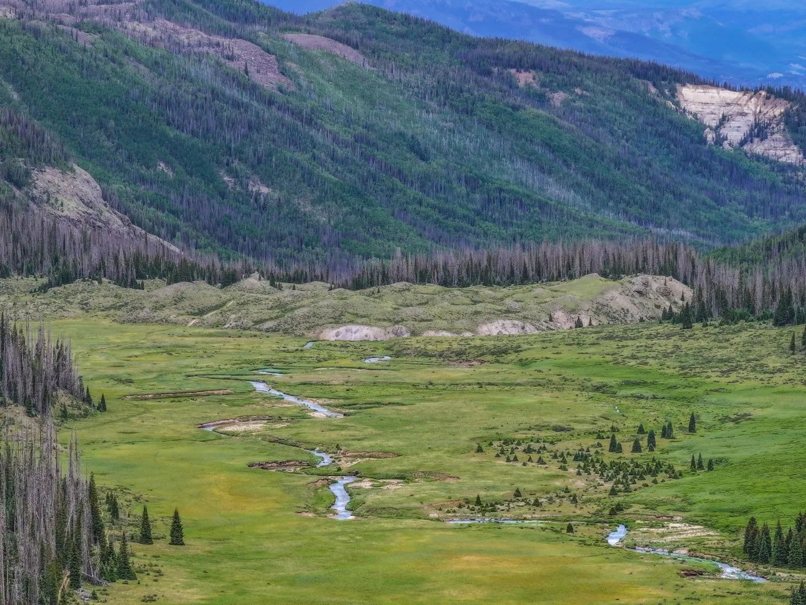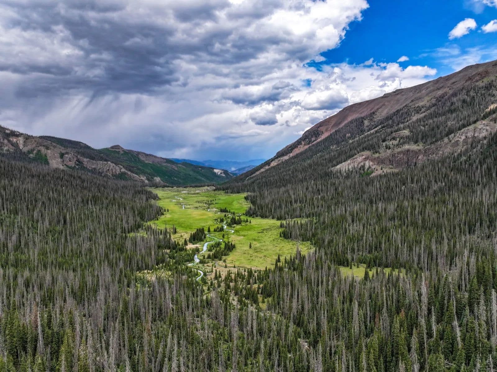 Elevations ranging from 9,300 to 9,700 feet offer spectacular views of Rhoda’s Arch, the surrounding landscapes, and nearby 12,000+ foot peaks, including Piedra Peak, located just four miles away. The land itself is a diverse mix of aspens, spruce, and willows, further contributing to the property’s raw beauty and ecological richness.