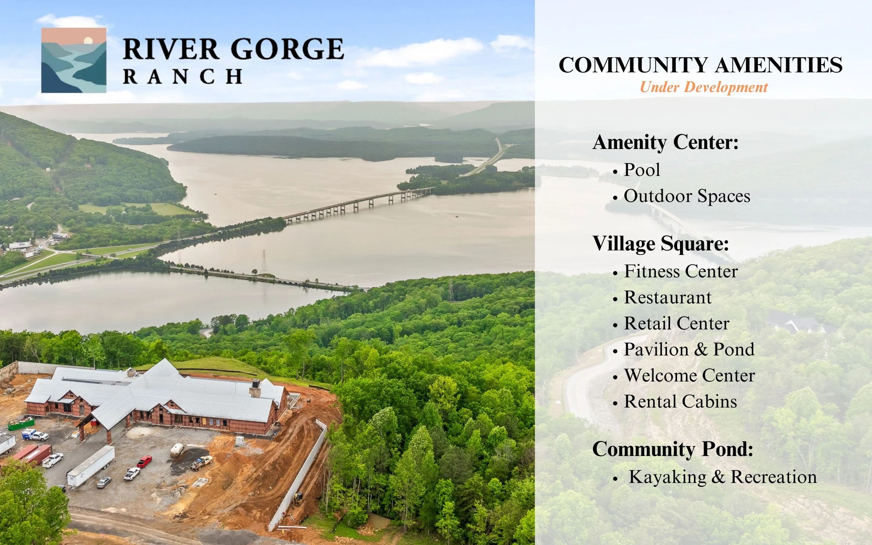 Skip the waitlist and start building now! Pre-approved for a 3-bedroom home, with power, water, and GIG-speed fiber optic internet readily available. Enjoy breathtaking mountain vistas while being just moments from the Tennessee River's boating, fishing, and outdoor adventures. River Gorge Ranch is designed for those who love both nature and modern comforts. Soon, residents will have access to a 27-acre Village Square featuring dining, retail, a pavilion, rental cabins, a fitness center, a community pool, a pond, and outdoor recreation spaces.