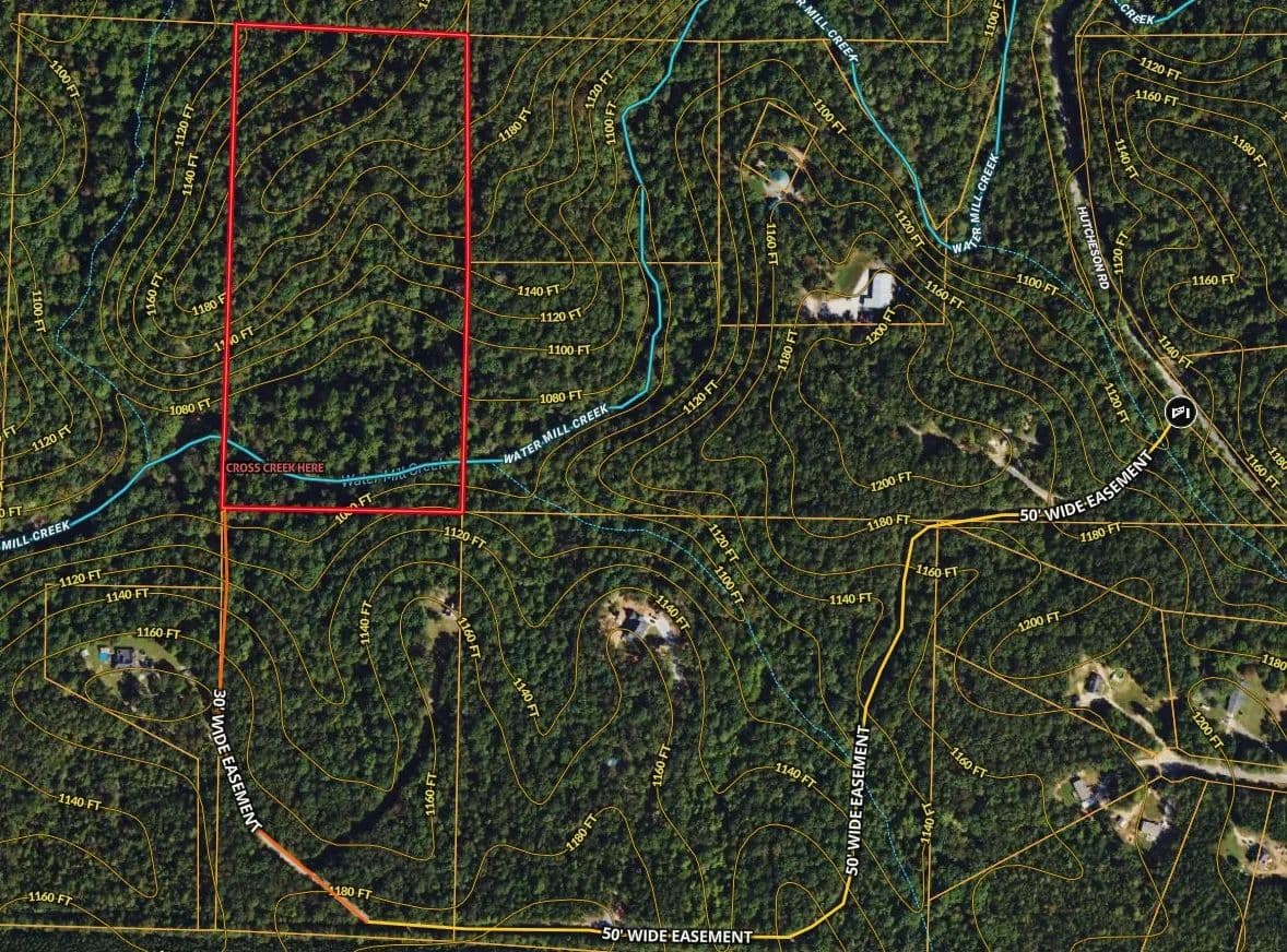 Running through this picturesque land is the tranquil Water Mill Creek. This natural water source not only adds to the scenic beauty but also provides a habitat for local wildlife or picnicking by the water under the tall hardwoods.