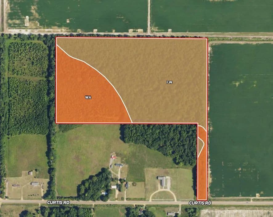 Situated within the Mississippi Flyway, this property offers outstanding duck hunting potential. The low-lying area in the center of the tract is bordered by a levee on the north end, offering flooding capabilities. The current owner installed an 8-inch well near the entrance, which, with the addition of a pump, can be used to flood and control water throughout the winter months for waterfowl hunting. The property boasts a mix of mature oak timber and thick understory areas, providing natural bedding, cover, and browse for wildlife.