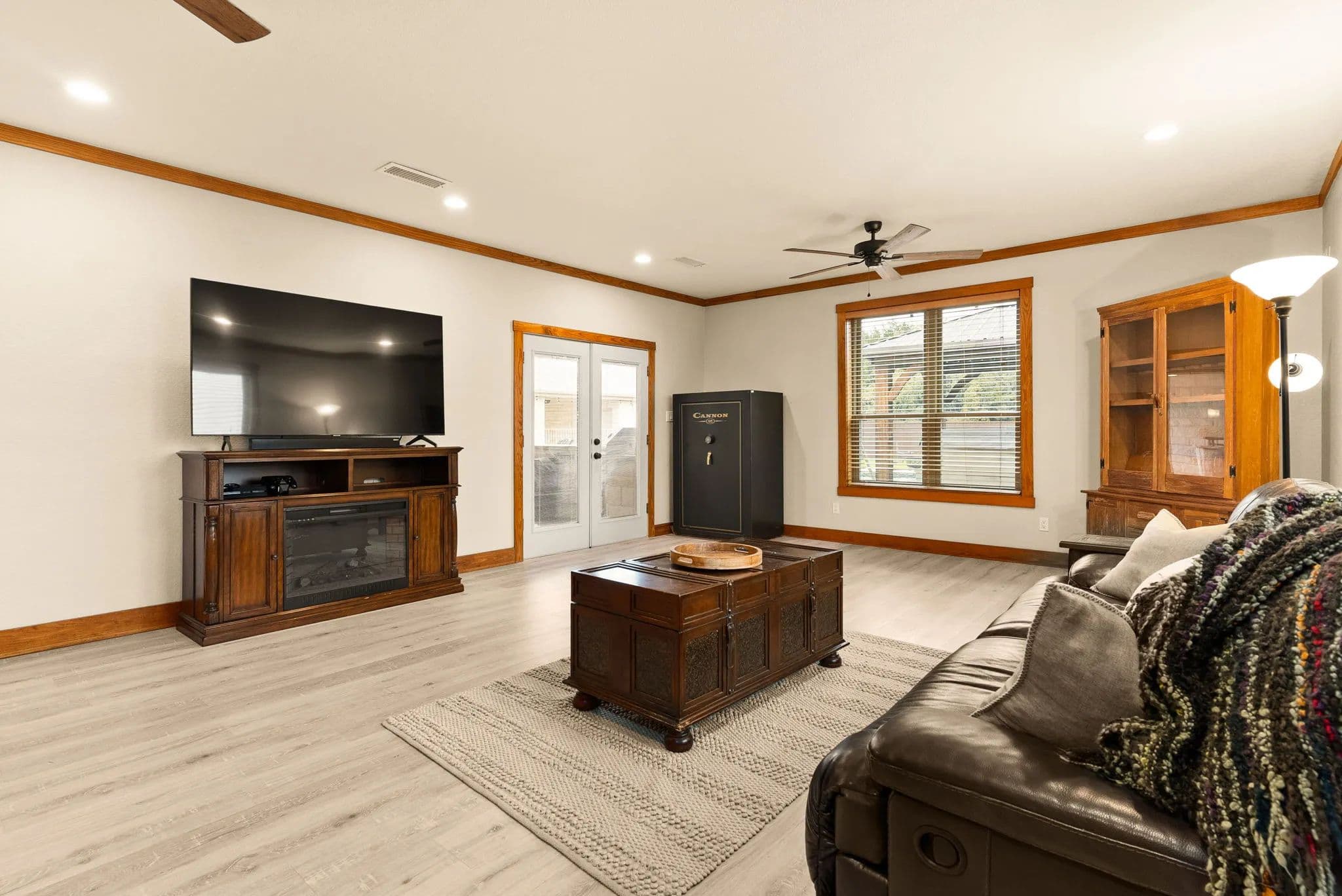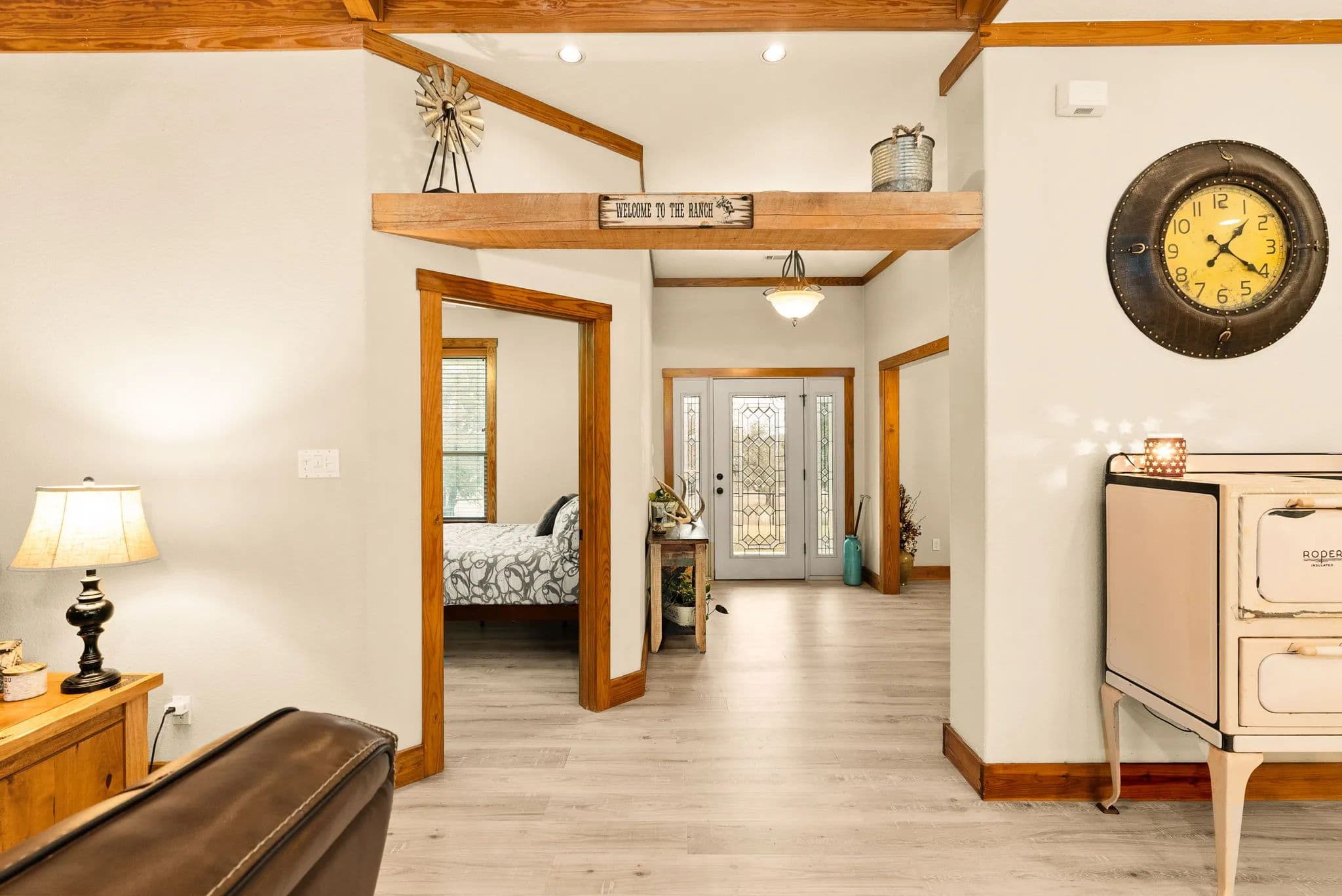 This Dream Ranch is nestled on 20.85 acres with 2 stock tanks and Ag exemption in place. This property offers the perfect blend of luxury & functionality. Just 1hr drive from Austin & 15 min. from Lampasas, you will enjoy the best of both worlds. As you approach through the electric gated entrance, you'll be greeted by a fully fenced property that ensures your privacy. This ranch house boasts an impressive 3,400 sq. ft. of living space. Step inside to discover a warm and inviting woodburning fireplace, the newly remodeled kitchen. The new LVP flooring flows seamlessly throughout the space. Entertain in the game room/bonus room complete with a wet bar & doors that open directly to the outdoor oasis. The master suite is a spacious sanctuary which includes an attached room perfect for use as an office/gym/nursery. Indulge in the newly remodeled bathroom equipped with a soaking tub and oversized walk-in shower. The master closet is nothing short of extraordinary with its well-designed built-ins, dressing area & floor safe. Each bedroom in this home is generously sized with ample walk-in closets & plenty of storage. The huge laundry room adds convenience with extra refrigerator space. Step outside into your private paradise where outdoor living takes center stage! Multiple patios extend from various rooms—inviting you to lounge on your covered front porch or enjoying gatherings around the large remodeled in-ground pool complete with spa and pergola for cozy winter evenings. This property also features a 40x60 workshop, motorhome storage equipped with 220 hookup, sprinkler system keeps your lush landscape thriving while backyard artificial turf offers low-maintenance beauty year-round. With every detail meticulously considered—from entertaining spaces to serene retreats—this hill country gem awaits its new owner who values quality living amidst nature’s splendor.