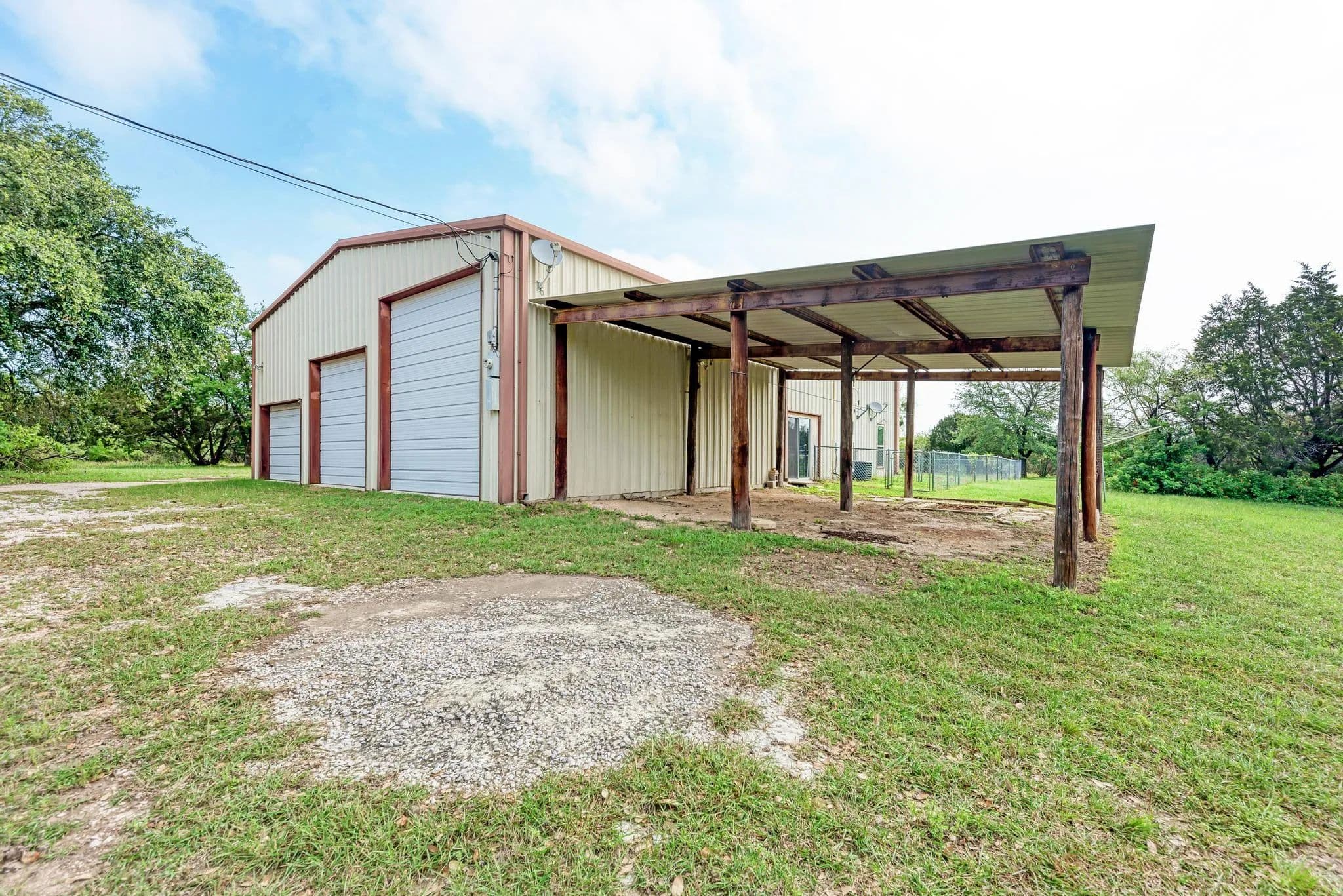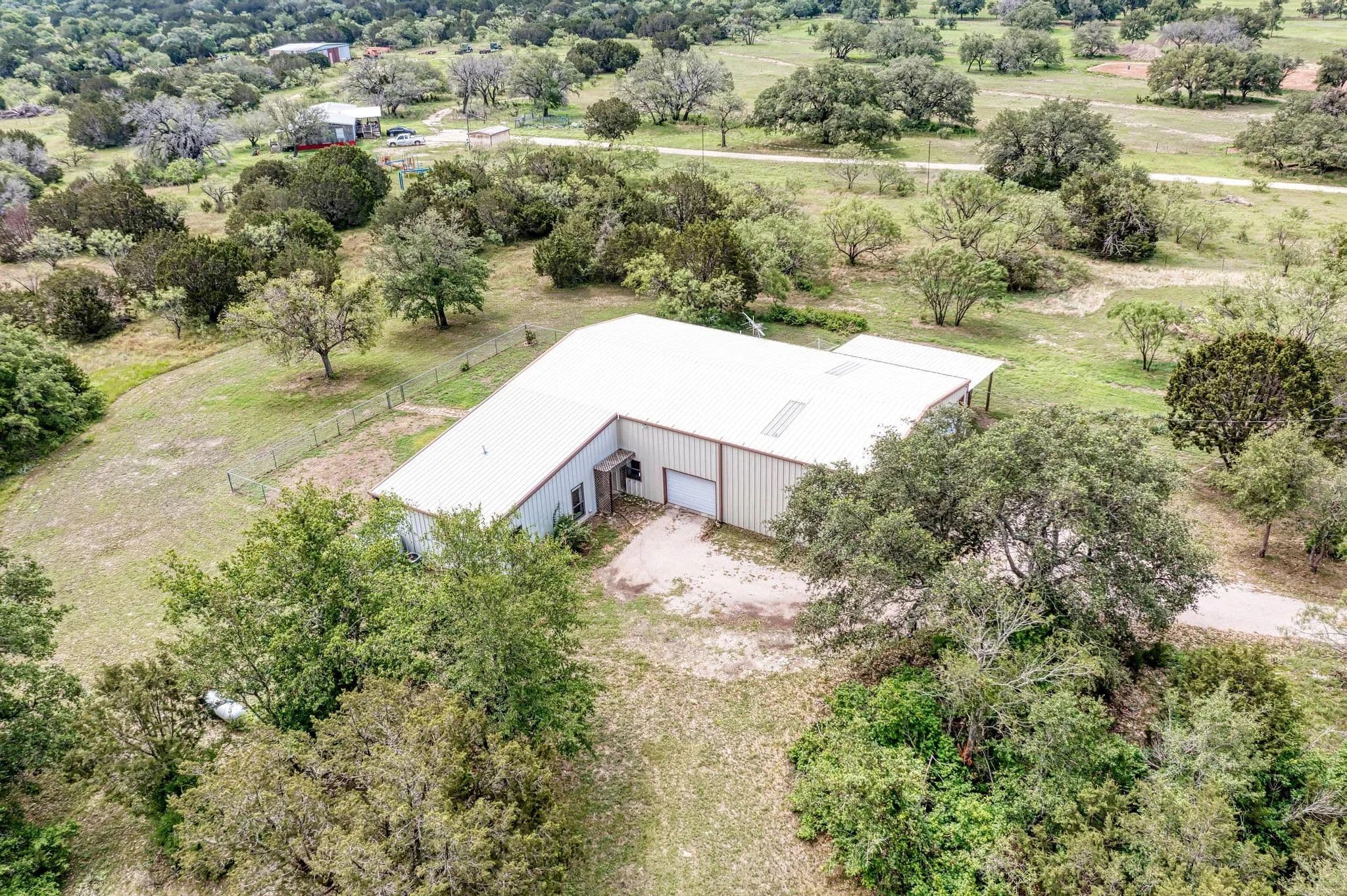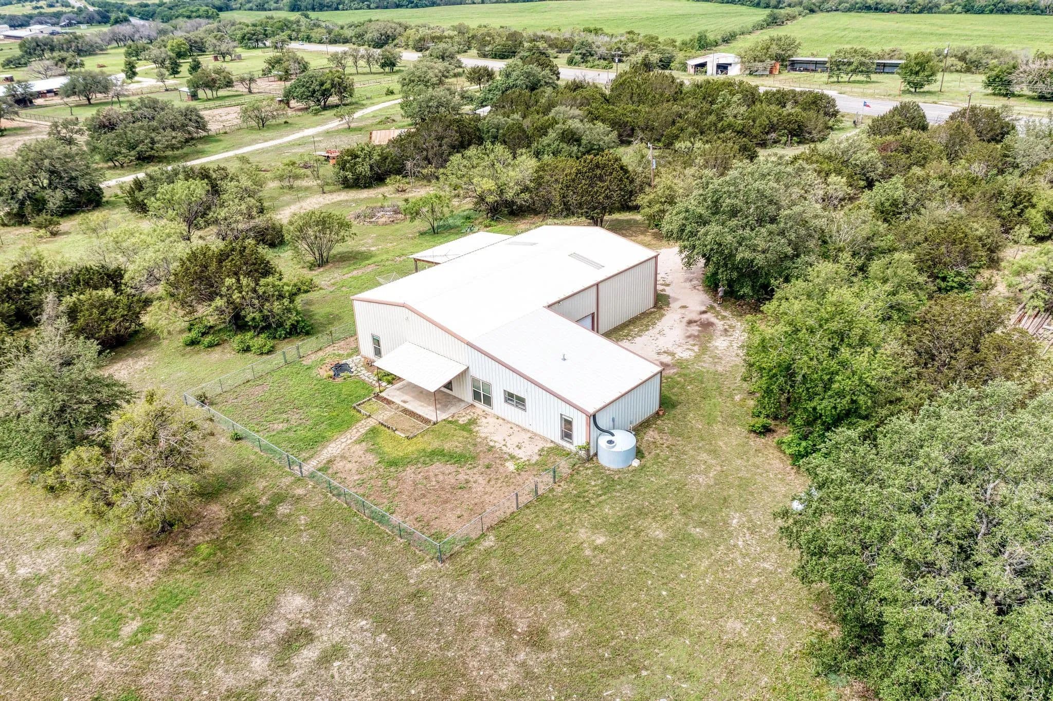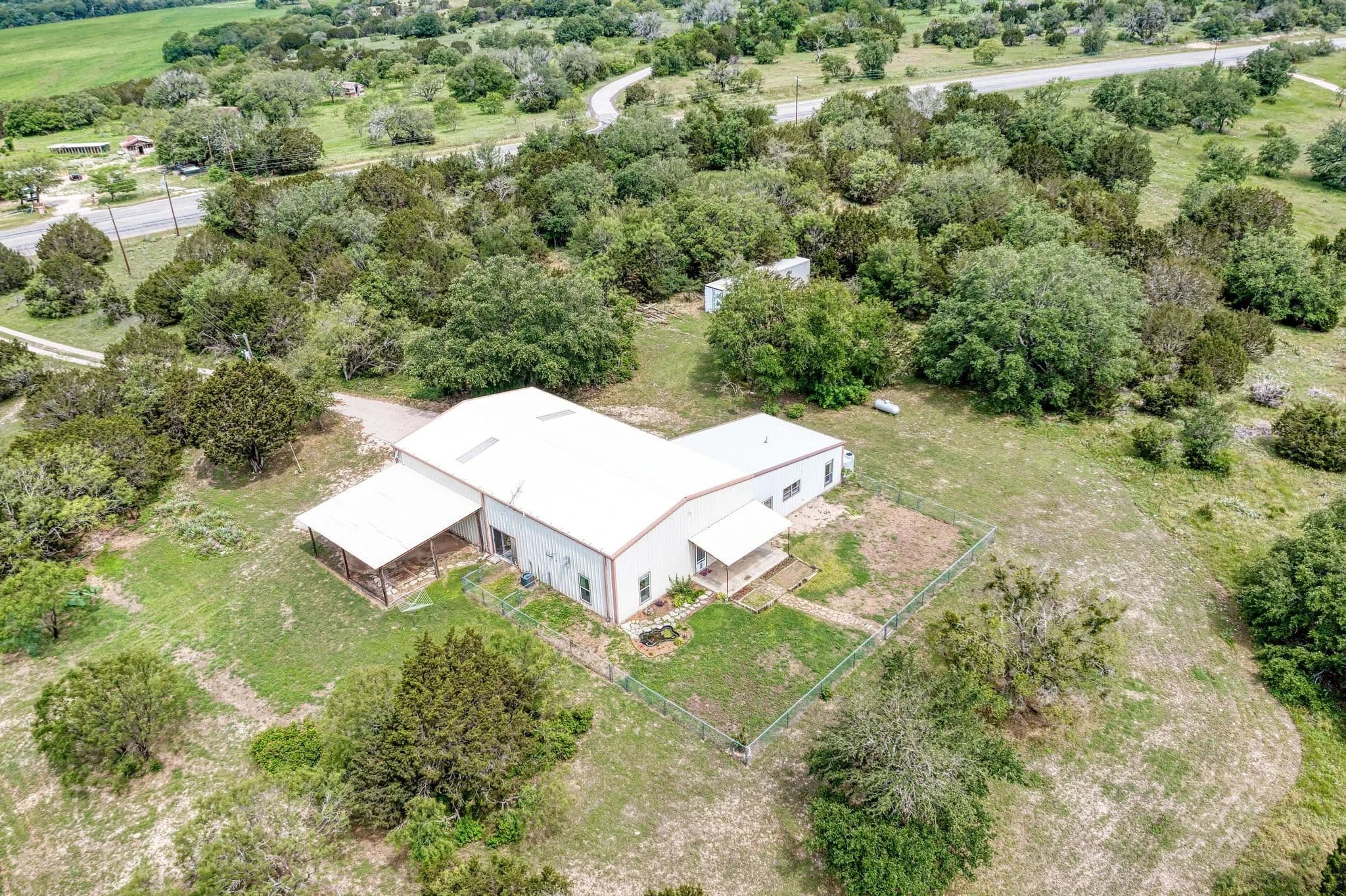 This Barndominium is located just south of Adamsville in Lampasas County. Nestled in the Hill Country, it offers a perfect blend of rustic charm and modern luxury. The 3-bedroom, 2.1-bath layout is spacious, and with brand-new appliances and LVP flooring throughout, it brings both style and practicality. The built-in craft station is a unique and thoughtful touch, ideal for getting creative while enjoying the surrounding nature. With 9.57 acres lightly wooded land with great coverage, the property offers incredible privacy, peace, and stunning Hill Country views. It’s the kind of place where you can escape the busyness of everyday life and really connect with nature. The large attached shop adds even more appeal, providing ample space for work, hobbies, or storage. The convenience of a private well and no water bills makes this an even more attractive option for long-term living. The RV connection and cover are great additions for those who love adventure and want to bring their home on wheels along. With 2001 SF of heated and cooled living space plus a 1600 SF shop/garage area, the home offers a great balance of comfort and versatility. It sounds like an incredible opportunity for someone looking for a peaceful, functional, and beautifully situated home.