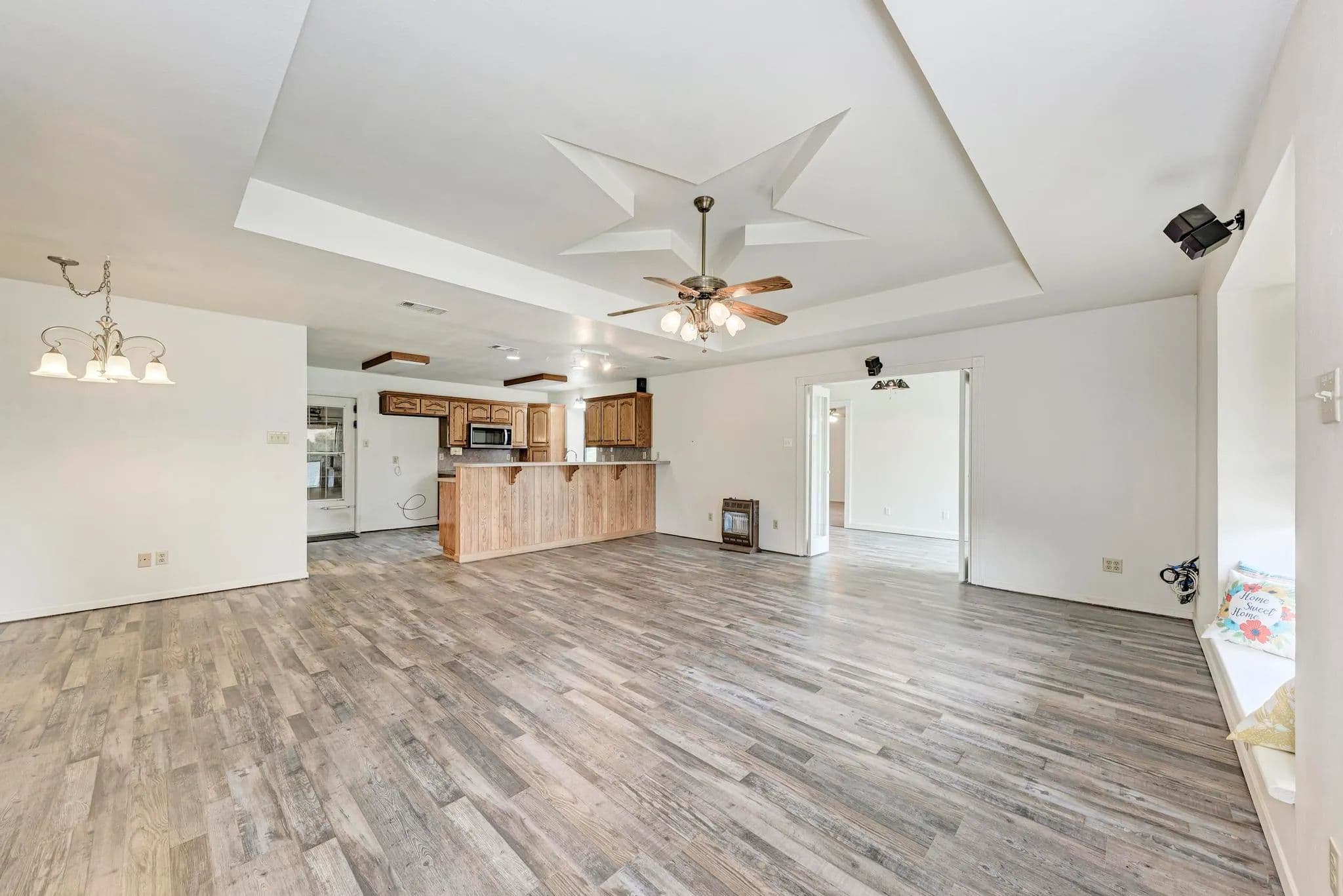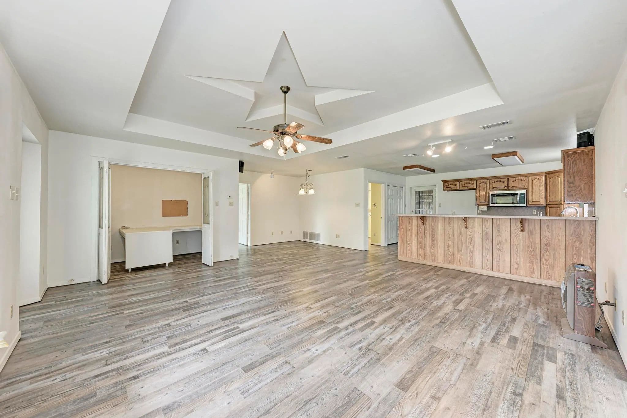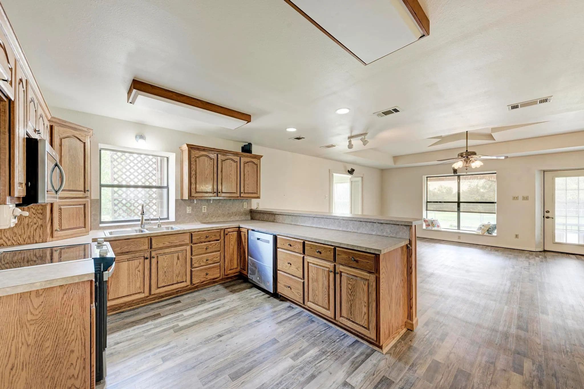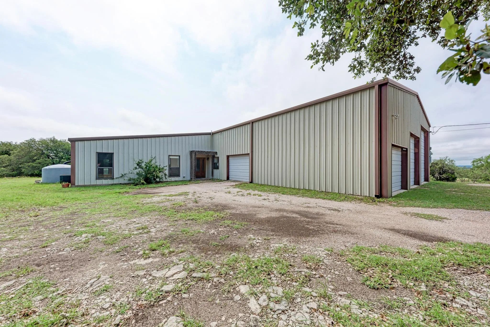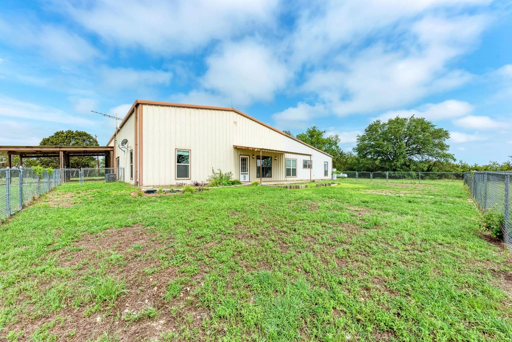 This Barndominium is located just south of Adamsville in Lampasas County. Nestled in the Hill Country, it offers a perfect blend of rustic charm and modern luxury. The 3-bedroom, 2.1-bath layout is spacious, and with brand-new appliances and LVP flooring throughout, it brings both style and practicality. The built-in craft station is a unique and thoughtful touch, ideal for getting creative while enjoying the surrounding nature. With 9.57 acres lightly wooded land with great coverage, the property offers incredible privacy, peace, and stunning Hill Country views. It’s the kind of place where you can escape the busyness of everyday life and really connect with nature. The large attached shop adds even more appeal, providing ample space for work, hobbies, or storage. The convenience of a private well and no water bills makes this an even more attractive option for long-term living. The RV connection and cover are great additions for those who love adventure and want to bring their home on wheels along. With 2001 SF of heated and cooled living space plus a 1600 SF shop/garage area, the home offers a great balance of comfort and versatility. It sounds like an incredible opportunity for someone looking for a peaceful, functional, and beautifully situated home.