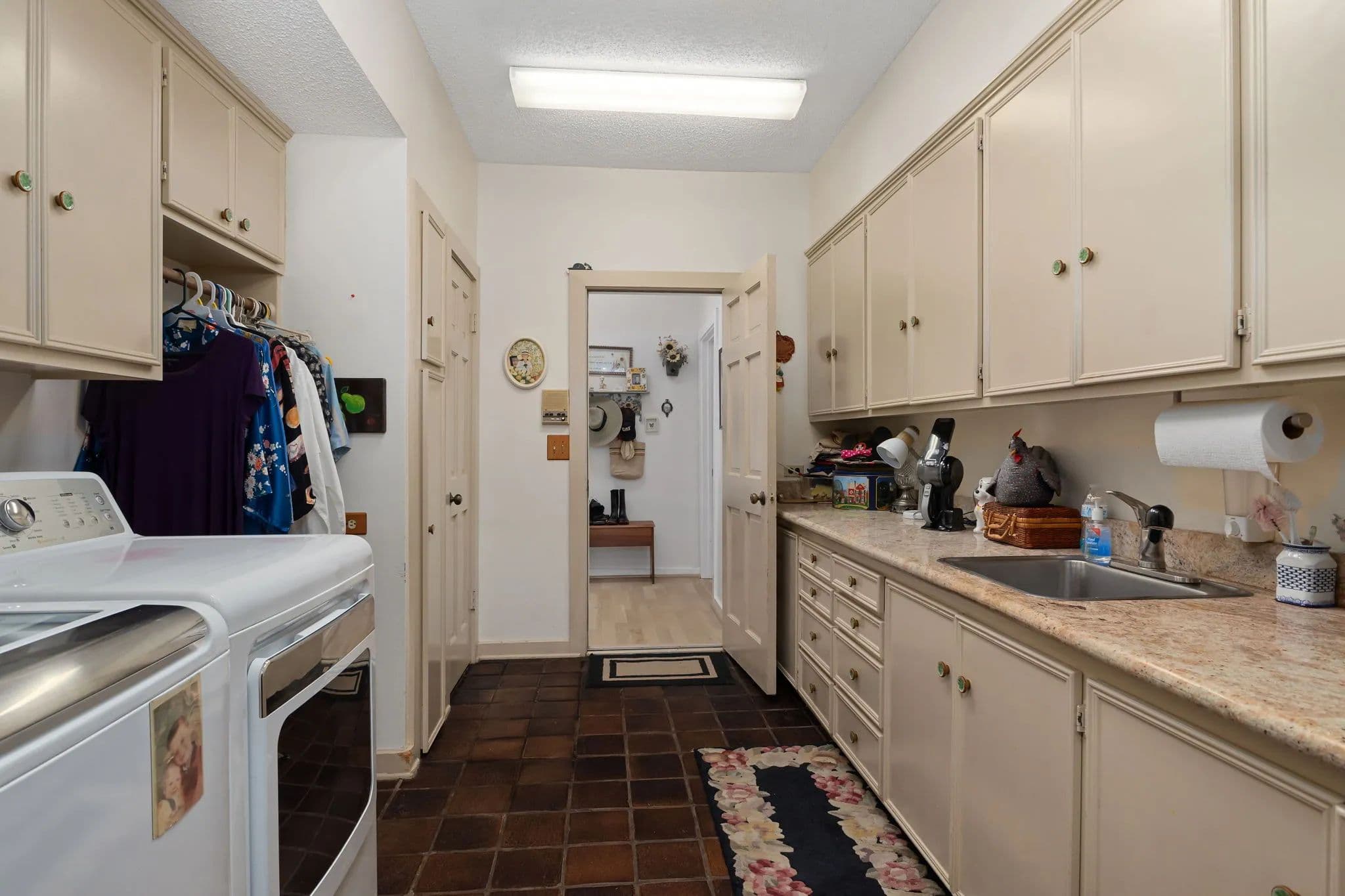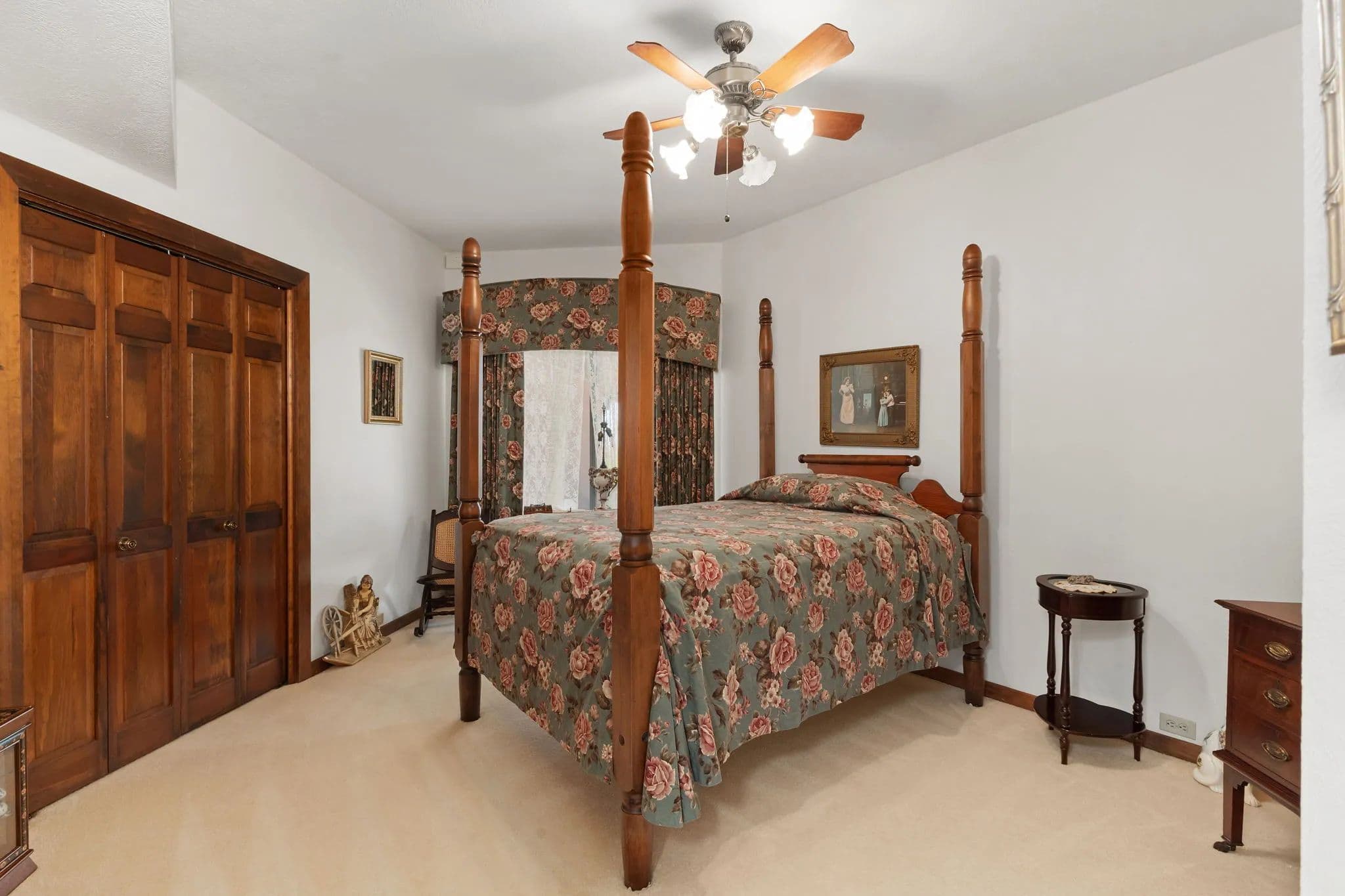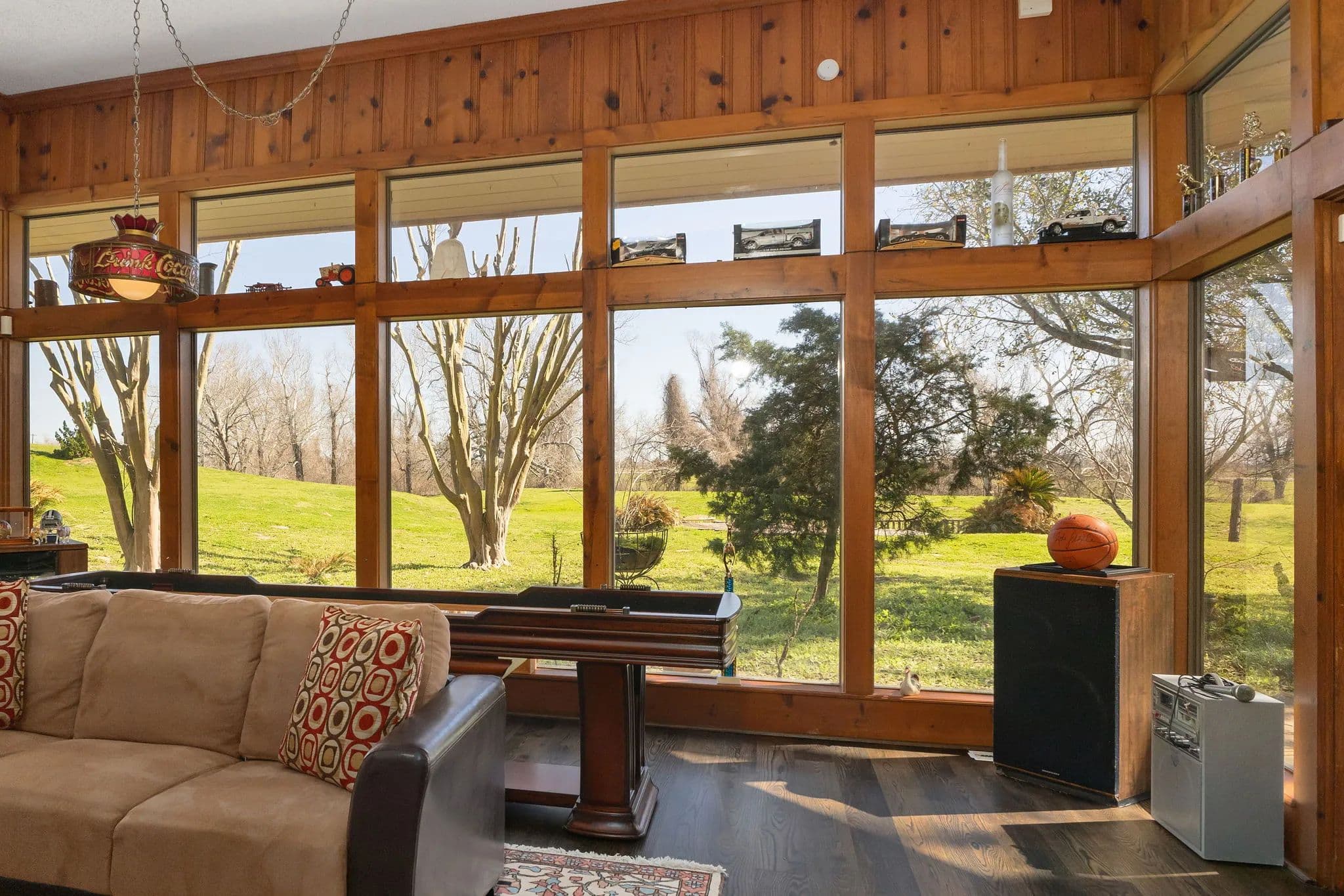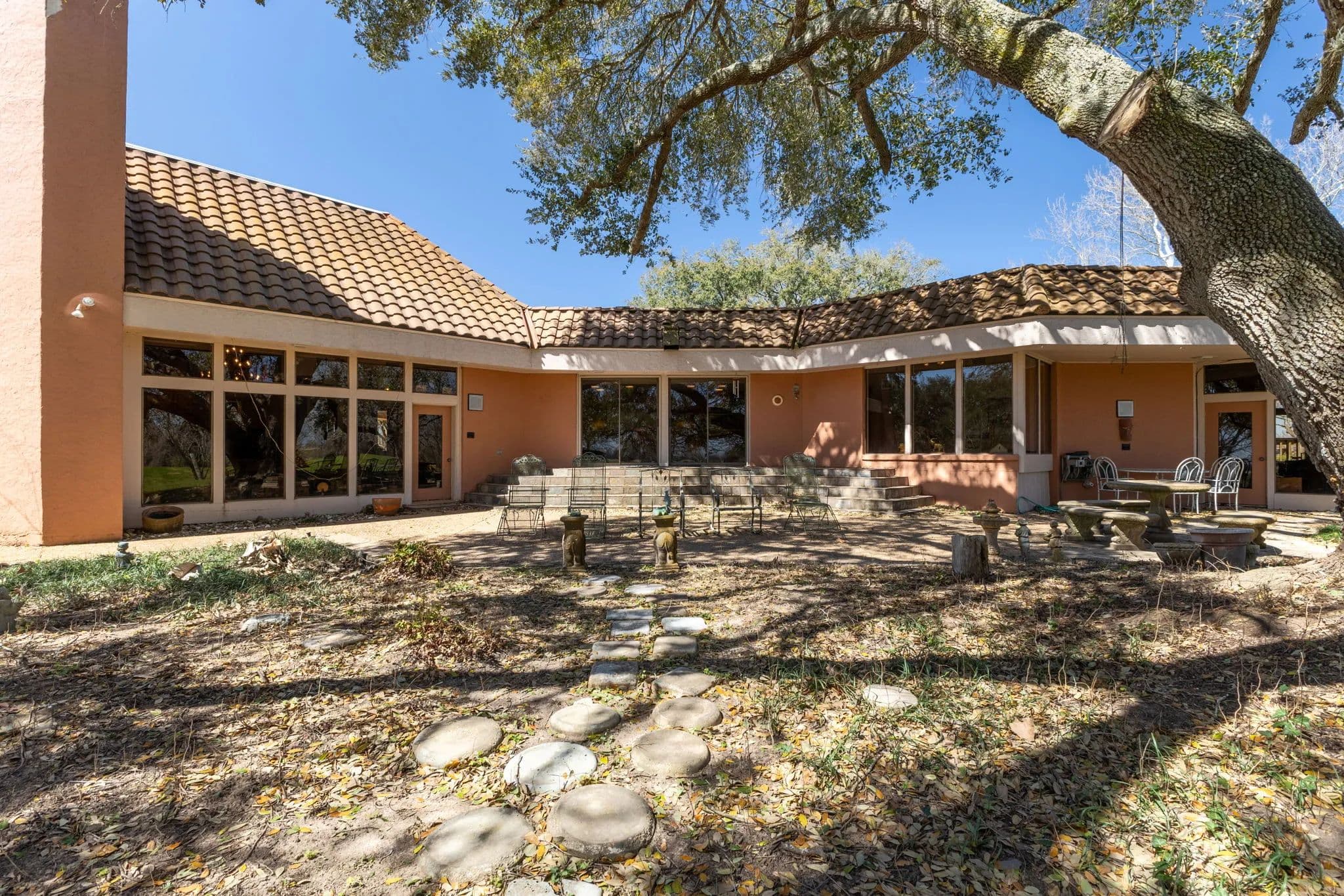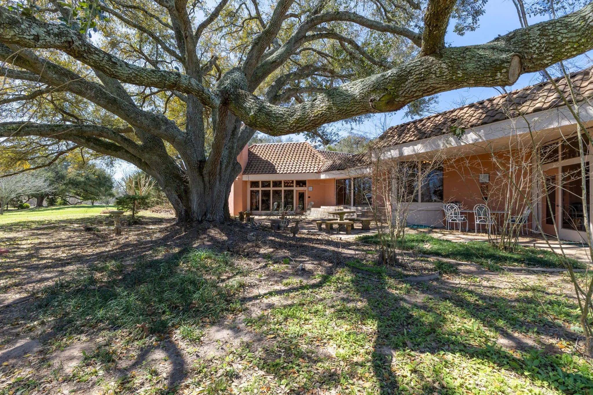 This stunning 6,436+ sq. ft. one-story estate sits on 53.40 acres, offering both luxury and functionality. Featuring 5 bedrooms, 4 full baths, and two half baths, plus a guest apartment built over the porte-cochre, this home is designed for spacious living. The garage includes a full bath and ample space for tractors, machinery, and multiple vehicles. The primary suite boasts three walk-in closets, while all bedrooms feature custom built-ins. A grand foyer with a fountain separates two wings, leading to expansive hallways (37ft & 53ft long). The home includes formal living and dining rooms, a private office with a half bath, a family room, a sunroom, and a game room. The kitchen is chefs dream with a Sub-Zero fridge, two pantries, double ovens, an imported granite island, and a double cooktop. A wet bar with an ice maker and spacious formals make this home ideal for grand entertaining.