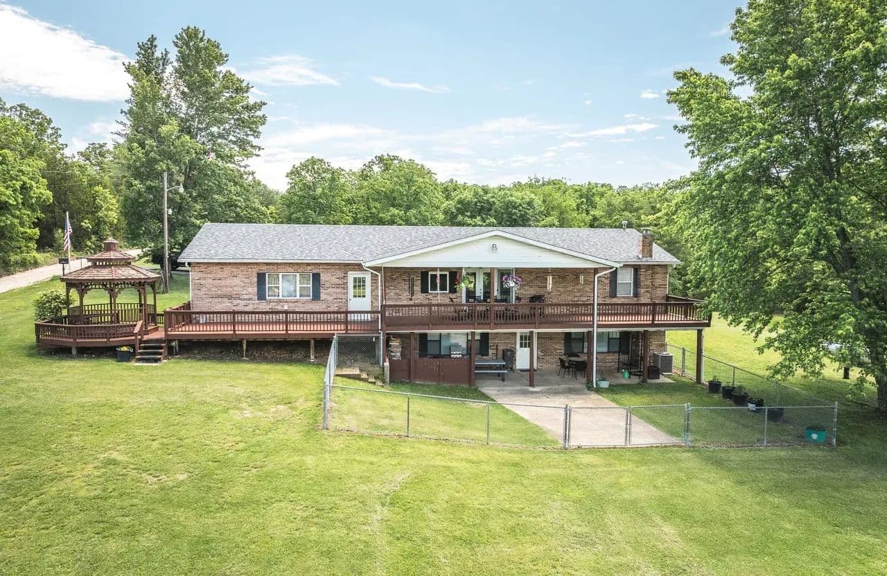 Nestled in the foothills of the Missouri Ozarks, Rockin L Ranch on the Yankee Branch offers 278 acres of breathtaking landscapes and diverse terrain. Yankee Branch, a picturesque creek that runs most of the year, provides an excellent water source for recreation, livestock, and wildlife. This stunning property boasts 42 acres of lush pasture, ideal for grazing, and 236 acres of mature timber, offering prime habitat for deer and turkey. A 1-acre stocked pond adds to the charm, perfect for fishing and relaxation. The 4-bedroom, 3-bathroom home features 2,464 sq. ft. of living space with a walkout basement, fenced backyard for pets, and a spacious back porch overlooking the pond. The basement includes a built-in bar, ideal for entertaining. A 2-car attached garage provides convenience and storage. For equipment and tools, a 36x42 pole barn with electricity and concrete floors is ready to accommodate your needs. A gazebo offers the perfect spot to take in the park-like scenery. The property also includes small woodland openings, ideal for food plots to attract game. Access is easy with an asphalt driveway and parking area off the county road. Whether you’re looking for a peaceful retreat, a working ranch, or a hunting paradise, Rockin L Ranch delivers unmatched beauty and opportunity in the heart of the Ozarks.