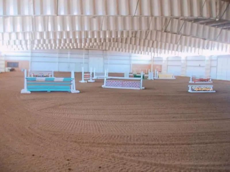 Wash stalls, covered cross ties, and an arena (200×120) designed for optimal training