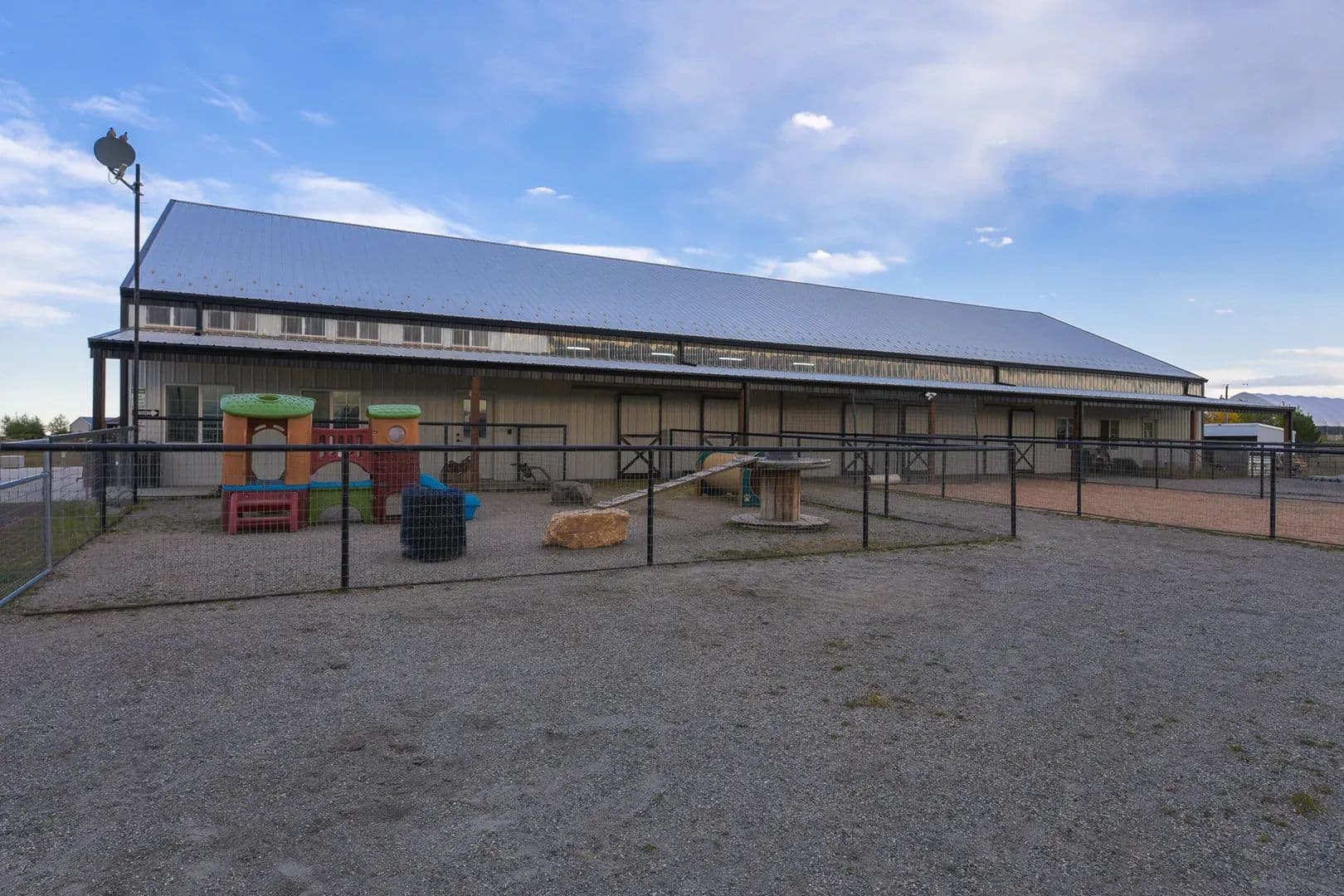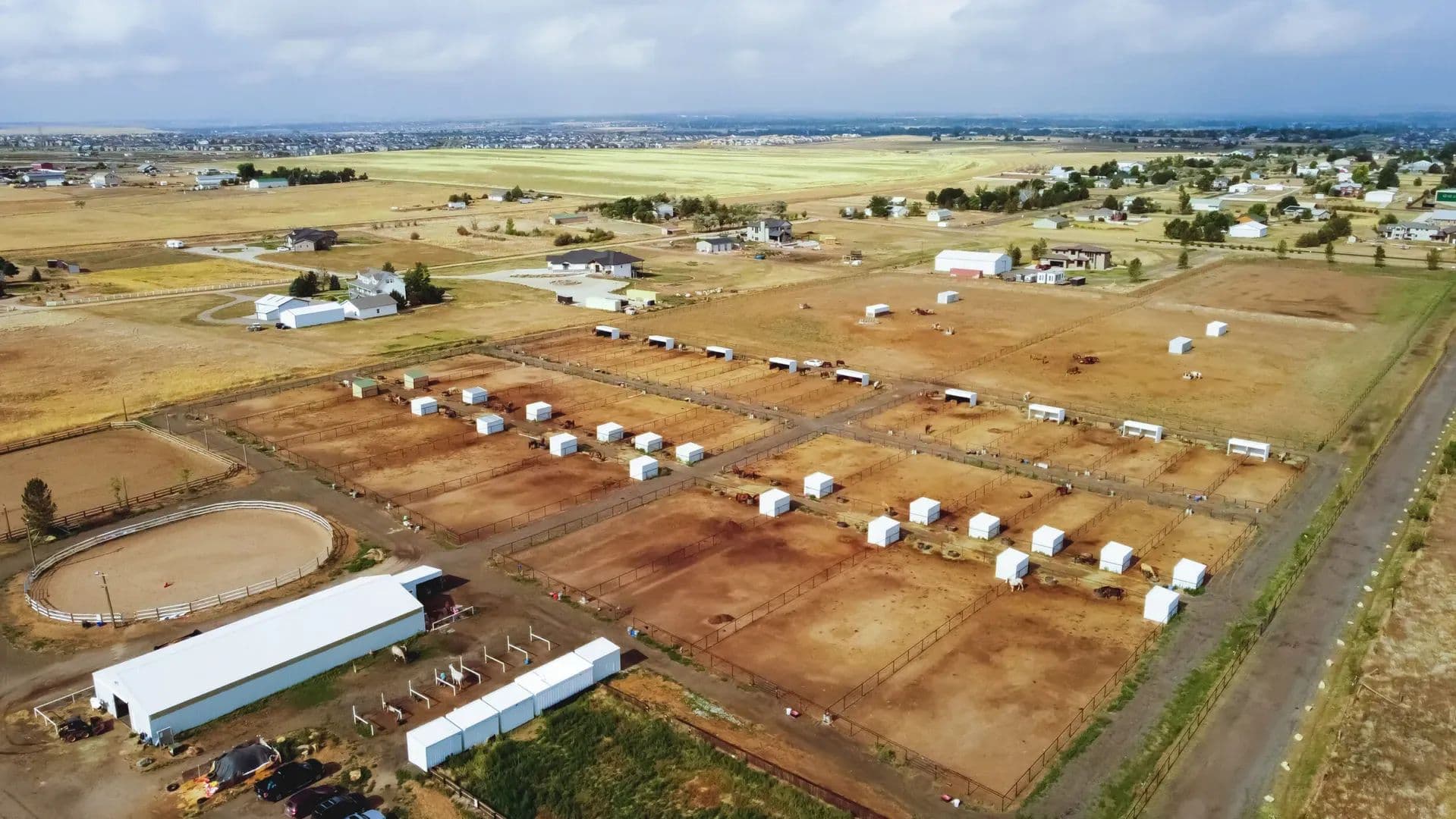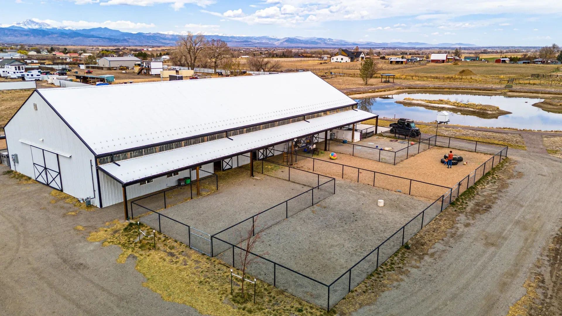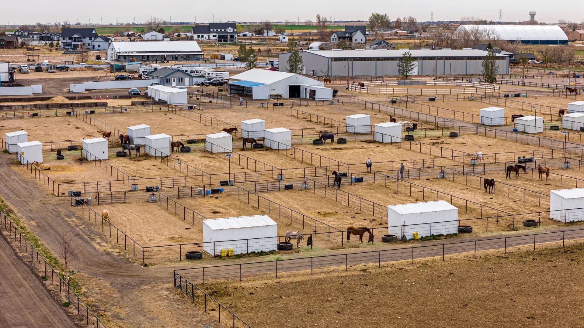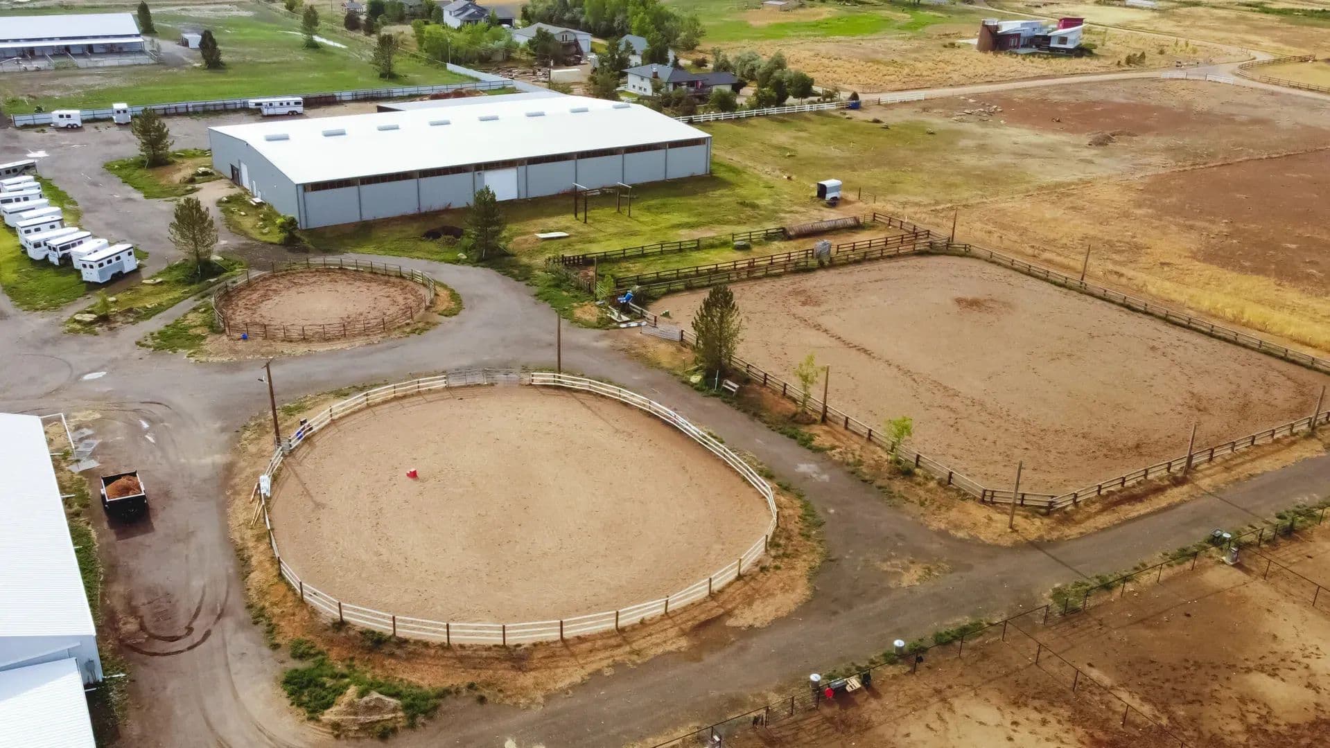 This offering is a thriving, turnkey business generating approximately $1 million in annual revenue. This operation offers multiple income streams, including boarding 75 +/- horses, horse training and a petting zoo featuring many farm animals attracting around 20,000 visitors annually. Nestled near the foothills of the majestic Rocky Mountains, including two living quarters for owners or managers, making it a perfect opportunity for investors. Land This remarkable land has undergone extensive improvements to transform it into a prime, multifaceted property. The entire area has been meticulously graded, ensuring soil compaction and leveling to optimize both use and water conservation. Newly constructed roads, parking lots, galloping track and pathways traverse the property, providing easy access to various sections.
