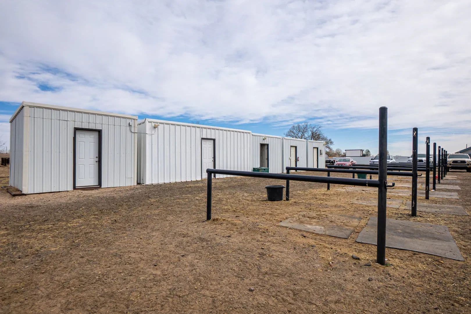 28 metal horse shelters in various sizes (9’x12′, 9’x18′, 10’x24′)