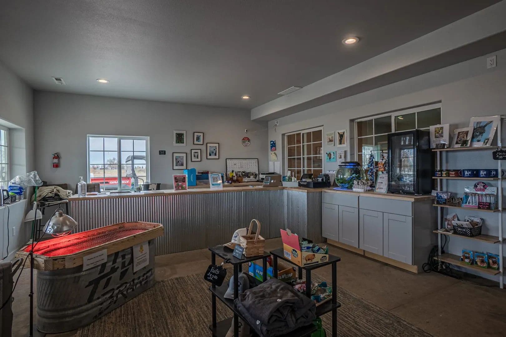 A 2-story, 8,400 sq ft heated and insulated petting zoo barn with 2,800 sq ft finished office space with kitchenette, bathroom and shower, gift shop, public restrooms and break area for staff