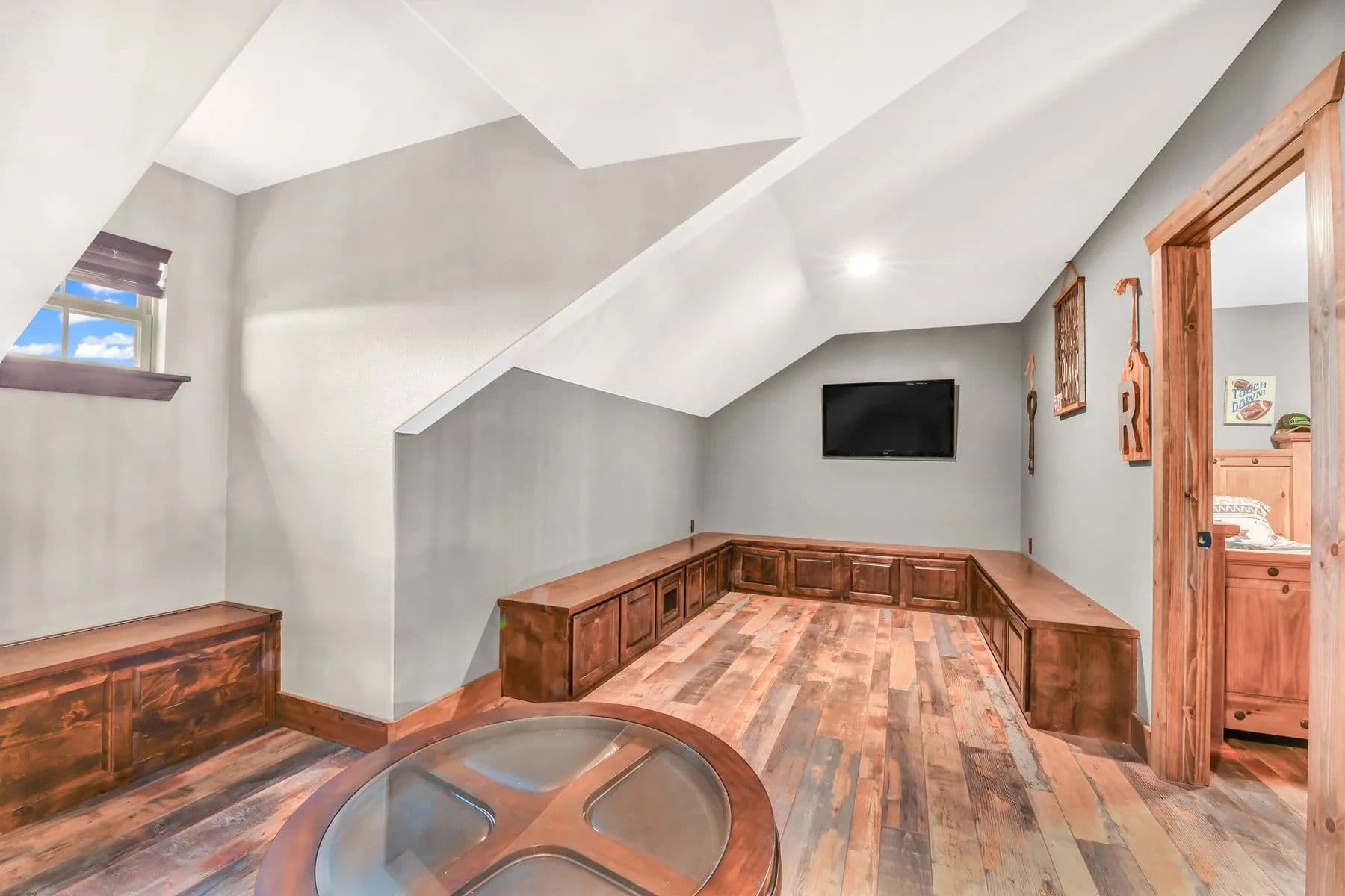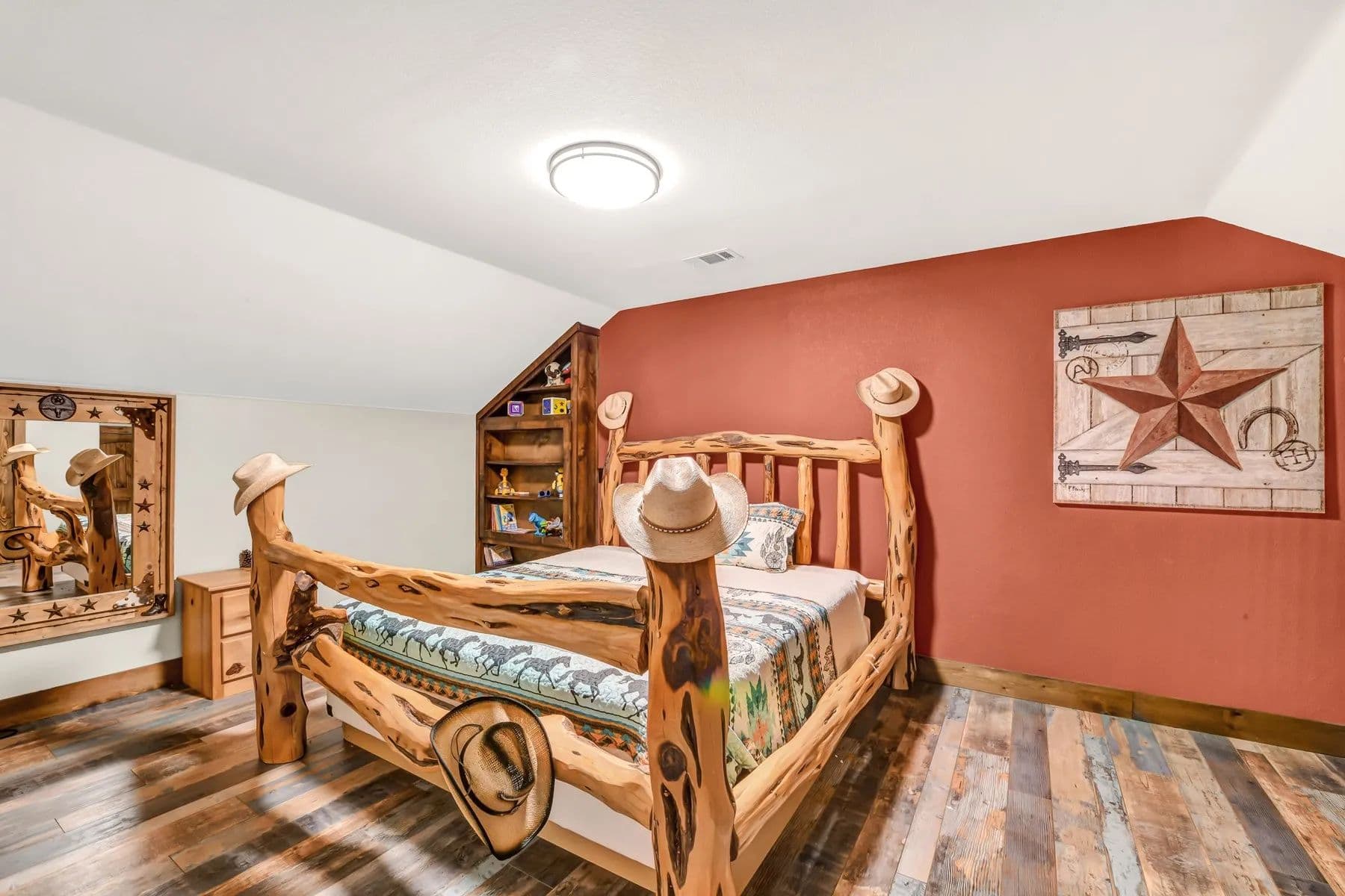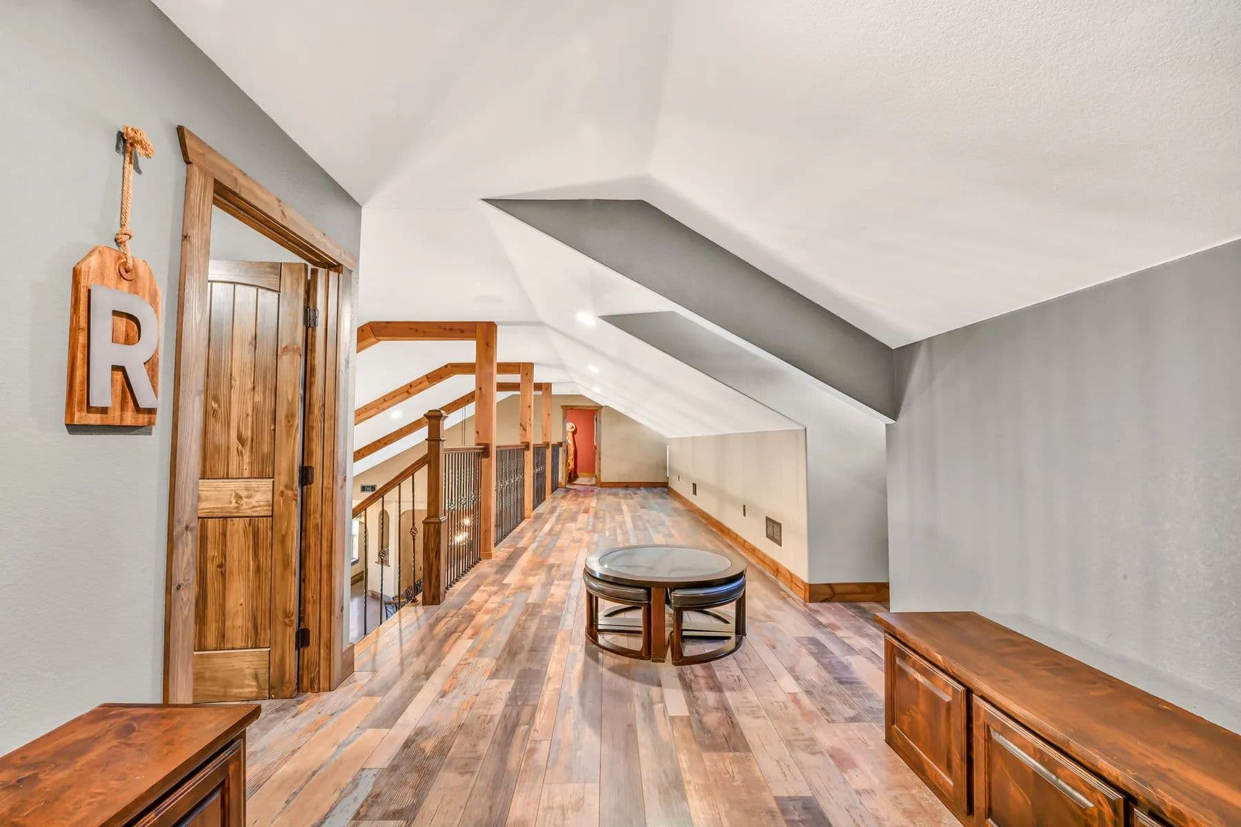 The kitchen boasts an oversized island, LG stainless appliances such as convection oven, induction cooktop, microwave, dishwasher, beautiful real wood cabinetry not only in the kitchen but throughout the home. The open living room features an Oklahoma stone fireplace with a mantle and raised hearth. The primary bedroom offers a spa-like bathroom with a rain showerhead, water jets, and an oversized soaking tub for total relaxation. The loft includes a media-sitting area with built-ins and 2 large bedrooms.