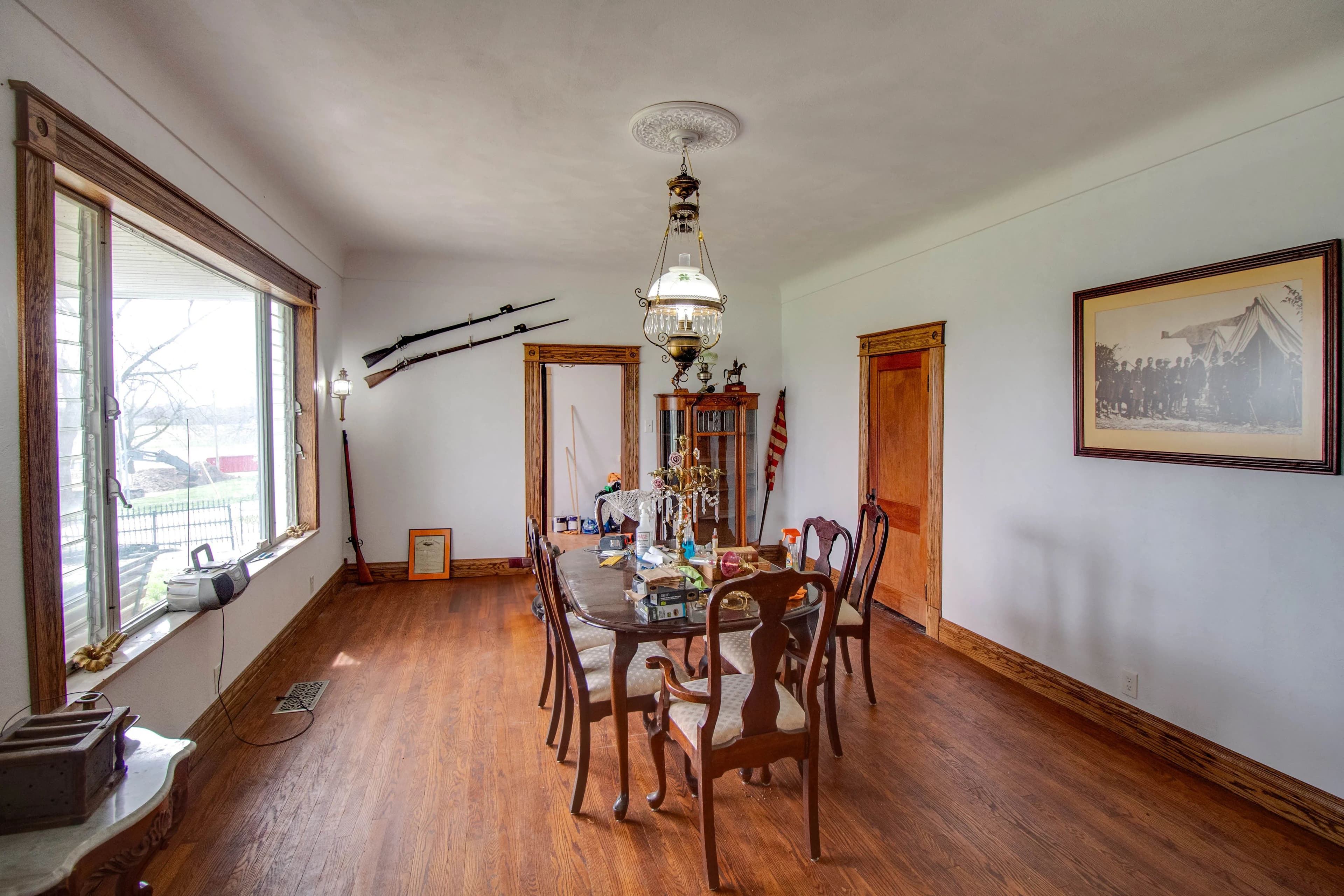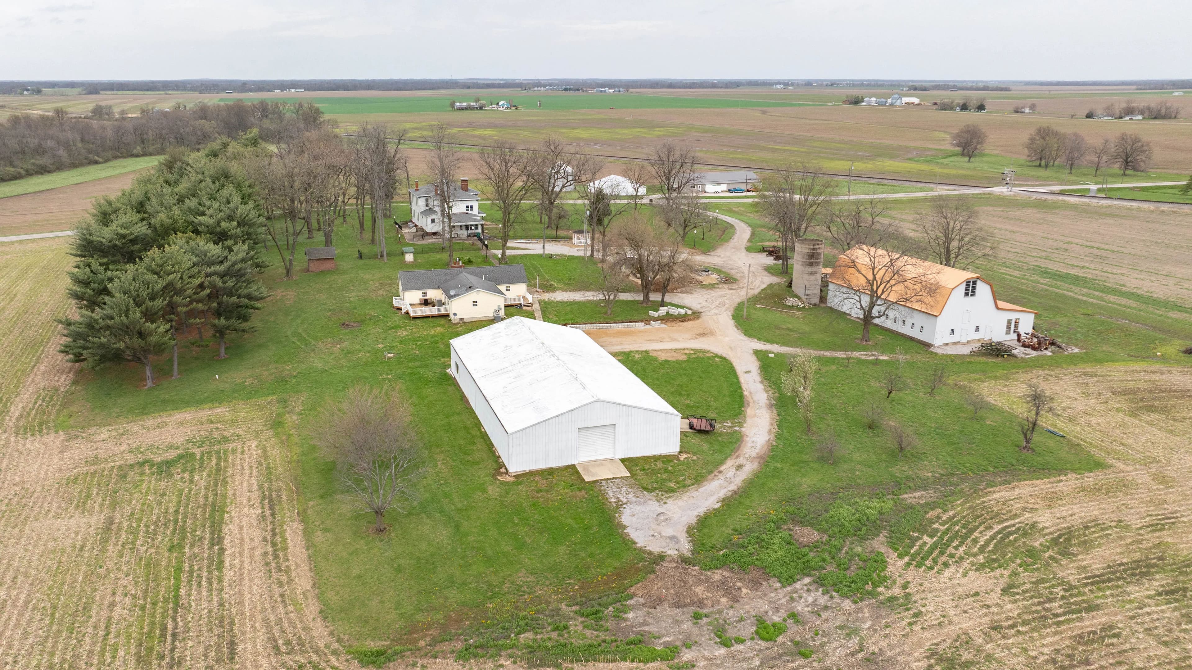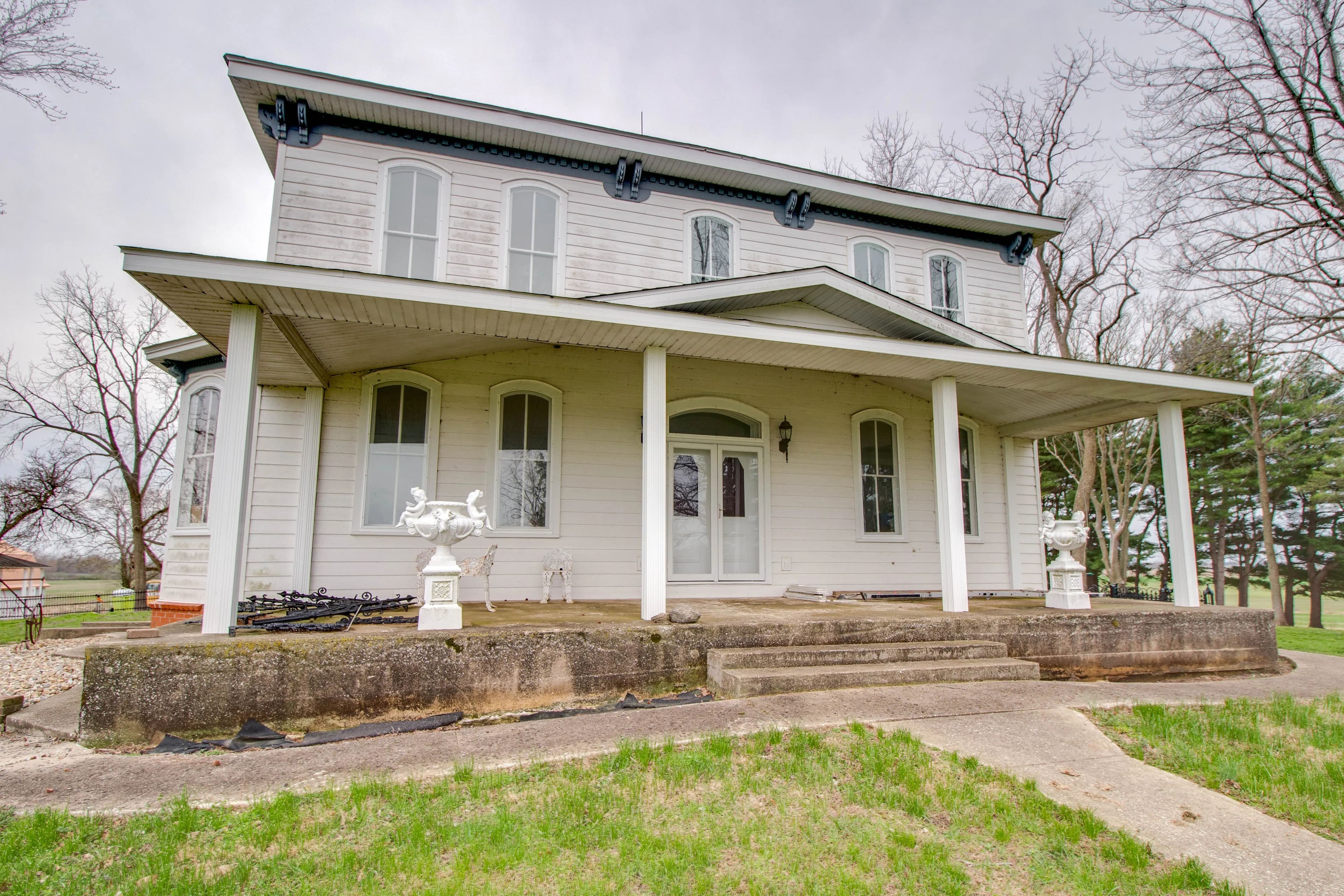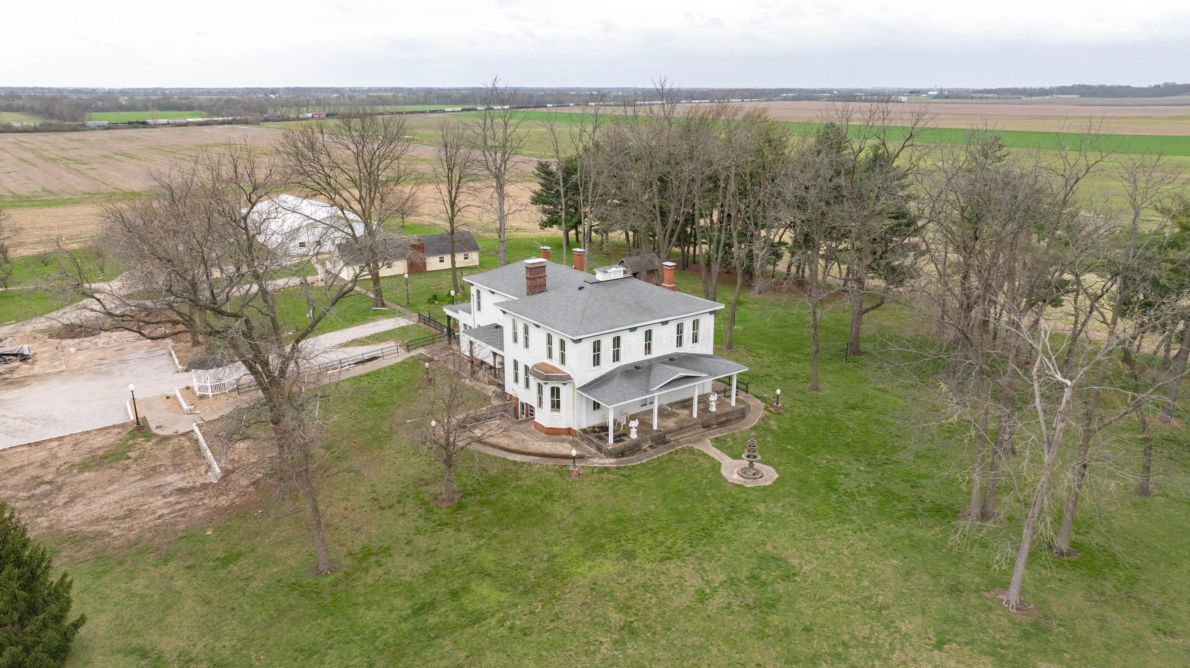 Expansive 16-acre property blending historic charm & modern potential. Estate features spacious main house, second home, & two large barns/outbuildings. Main house boasts a two-story entryway, spacious living & sitting rooms, formal dining room, breakfast room w/ wood flooring throughout, 6 bedrooms & 2 partially finished baths. Partially finished kitchen offers customization potential. Upstairs includes a large sitting area, all 6 bedrooms, & a second partially finished kitchen accessible via back staircase. Lower level is an unfinished brick space w/ laundry hookups. Second home features a spacious kitchen/dining combo w/ solid surface countertops, center island, & back deck access. Includes 3 beds & 2.5 baths. Large barn has two stalls, a feeding room, multiple bonus rooms on lower level, & expansive upper level w/ wood flooring & 22-ft ceiling. Second outbuilding is a multi-purpose metal structure w/ sizable garage, 2 roll-up doors, second private garage, & sleeping room.