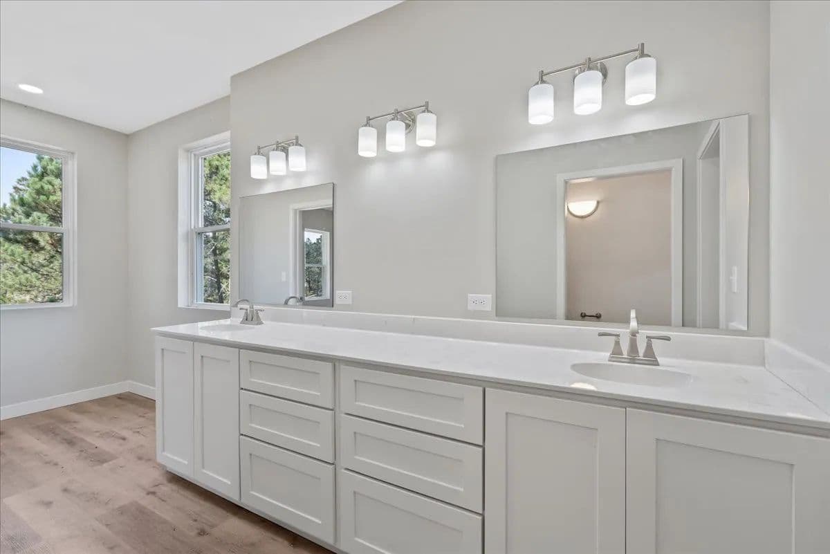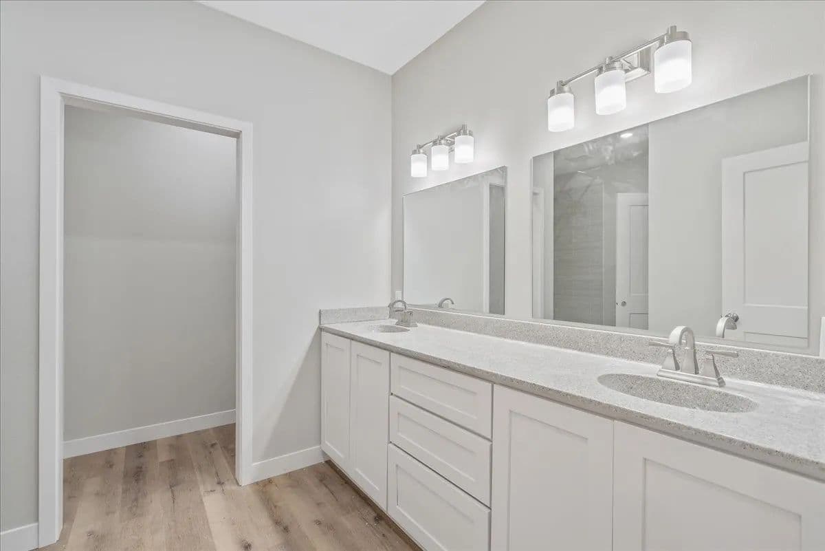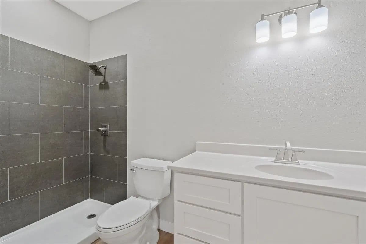 Bedrooms & Bathrooms: This splendid home features three generously sized bedrooms and three luxuriously appointed bathrooms. The oversized master suite is a private oasis, boasting a master bathroom with double vanity sinks, a meticulously crafted tile walk-in shower with a rainfall showerhead and bench, and a separate toilet room for added privacy. The master suite also offers a vast walk-in closet with washer and dryer hookups, ensuring convenience and comfort. An additional upstairs bedroom and a full bathroom with a walk-in shower add to the allure, providing ample space for family or guests.