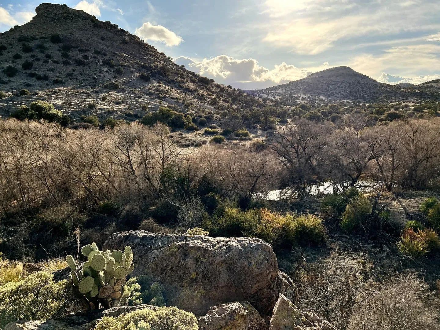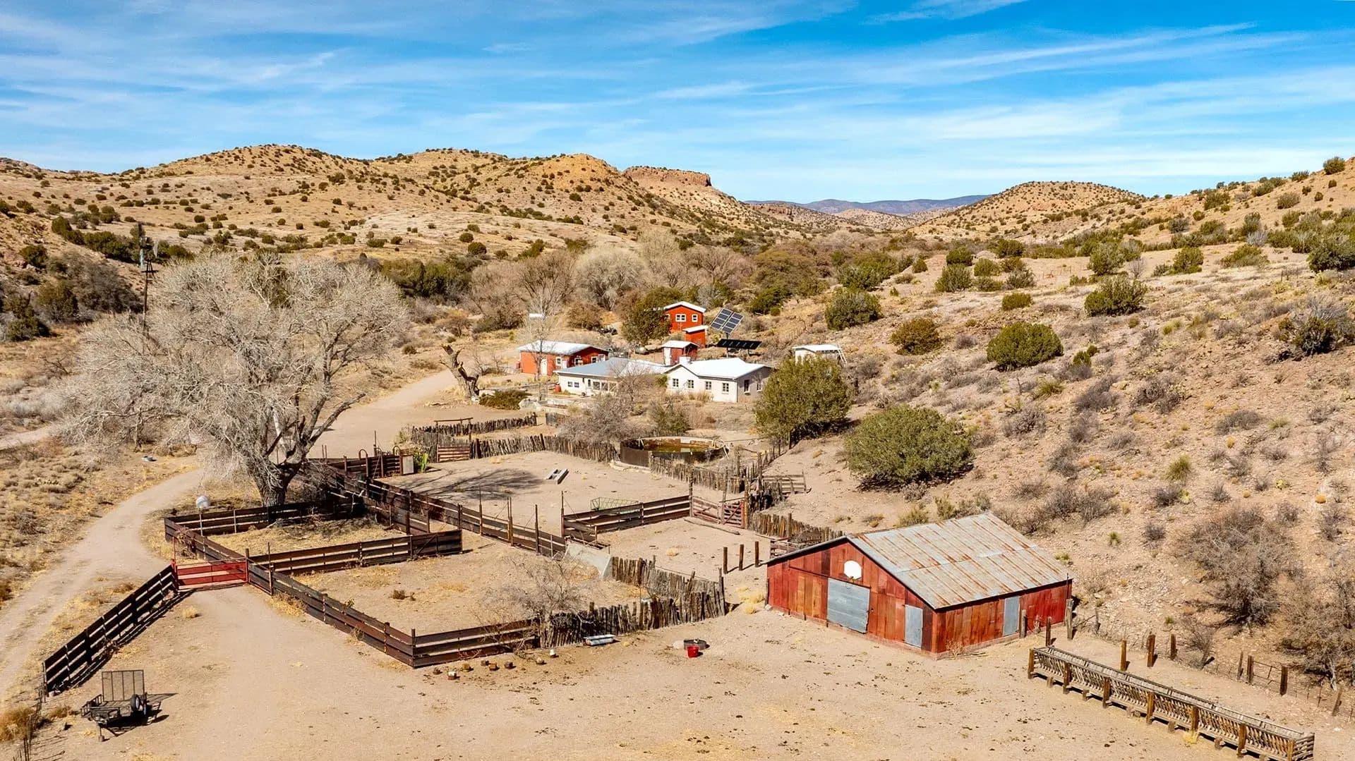 The Pitchfork Ranch transports you to a simpler time, where solitude and unspoiled beauty define the landscape. Located 30± miles south of Silver City, New Mexico, rugged mountains give way to the dramatic Chihuahuan Desert, and nine miles of the Burro Ciénaga flow through the heart of the ranch, providing a rare and critical water source. Elevations range from 5,150’ to 5,650’. Spanning 11,393± acres, including 5,160± deeded acres, 3,597± Bureau of Land Management (BLM) lease acres, and 2,626± New Mexico State lease acres, the ranch is a hub for wildlife and habitat conservation and is protected by a Conservation Easement.