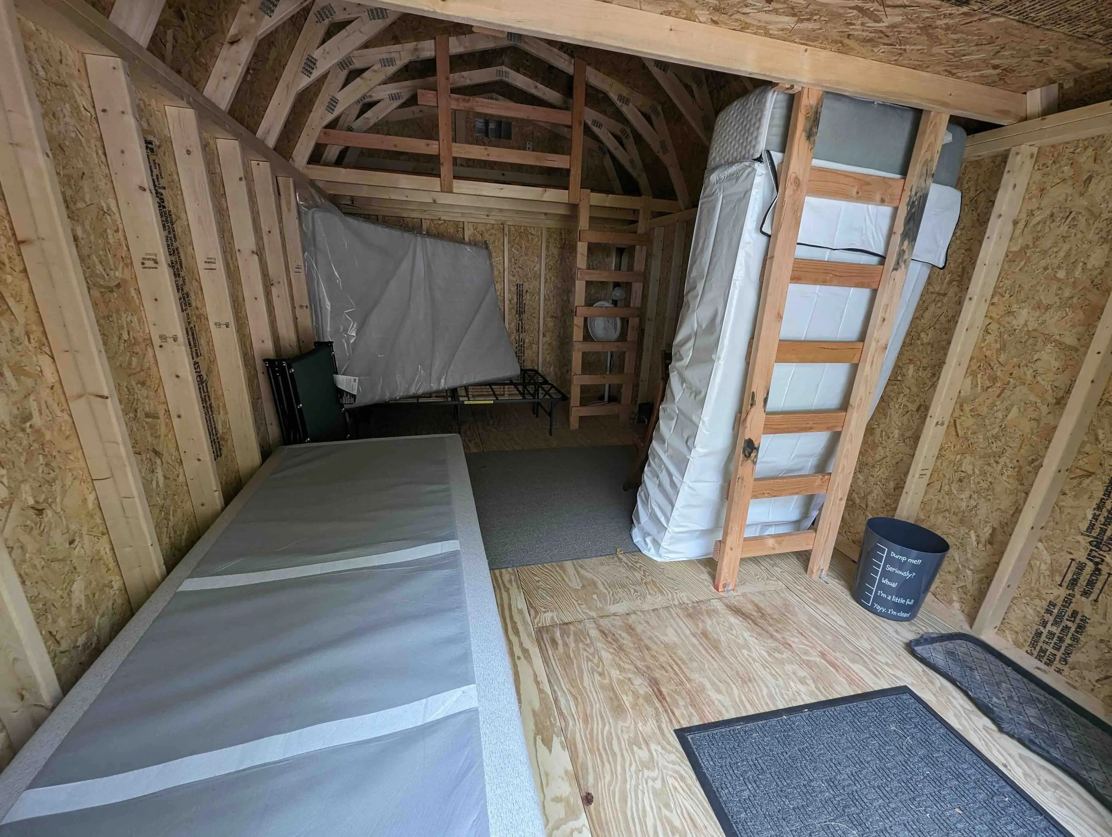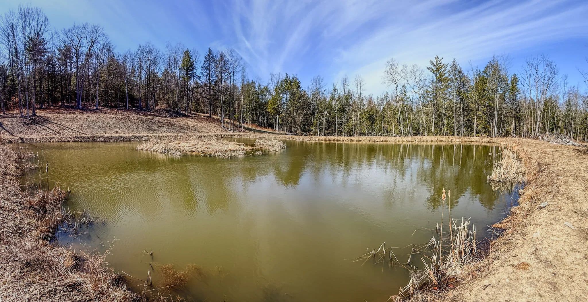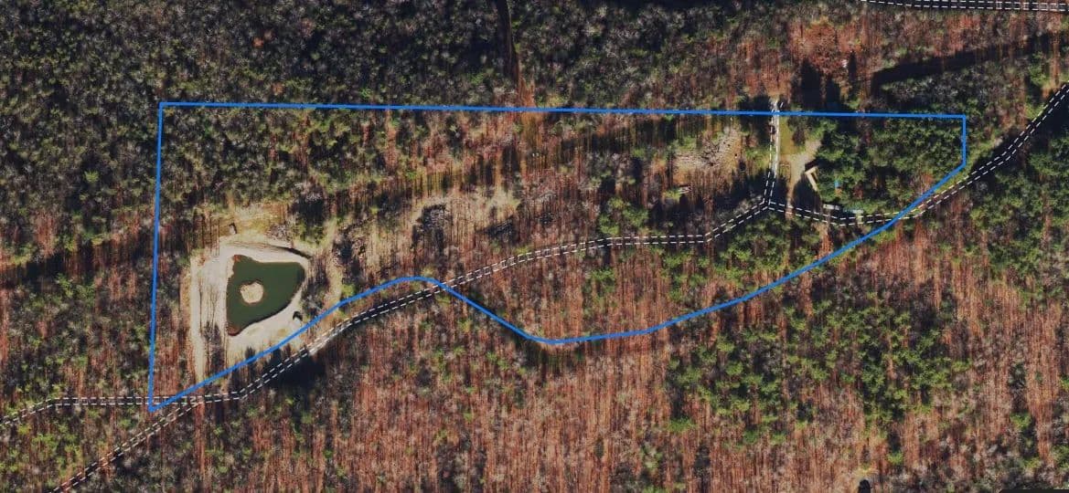 At the heart of the property is a 14-ft deep pond with a center island, located next to the second campsite, which features two cabins, each equipped with a bed, TV, refrigerator, and air conditioning. There's also a graveled area for multiple RVs overlooking the water, making this perfect setup for hosting friends and family.