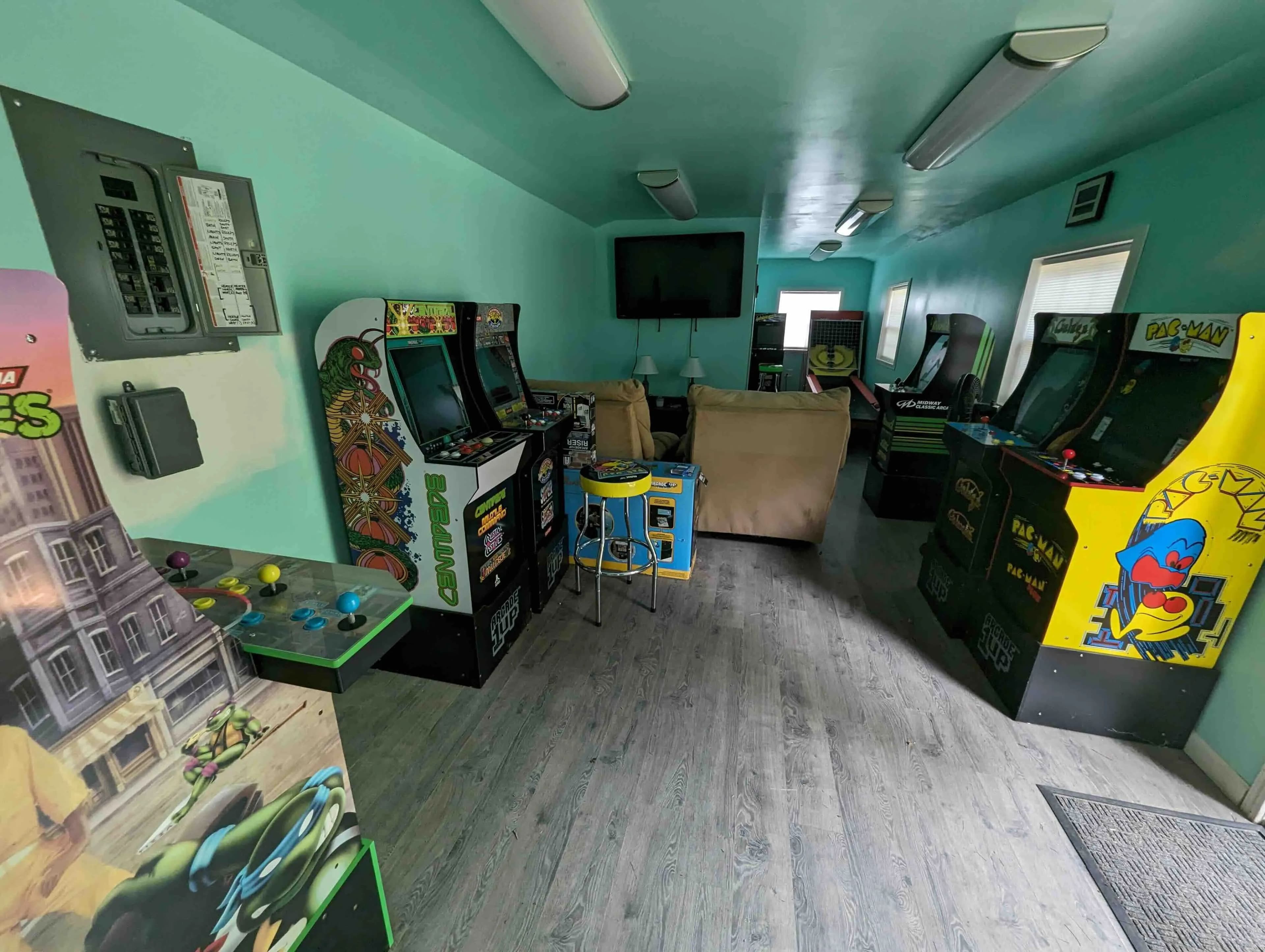 The main camp is packed with features including a playground, volleyball court, horseshoe pit, shooting range, zipline, large dog kennel, and a 20’ x 40’ pavilion. Storage is abundant with two shipping containers, and a spacious 5th wheel camper with four slide-outs may be included in the sale. A newly reconstructed 16’ x 40’ building functions as a game room and includes hardwood floors, a full bathroom with shower and on-demand hot water, providing a fun and functional indoor space for guests.