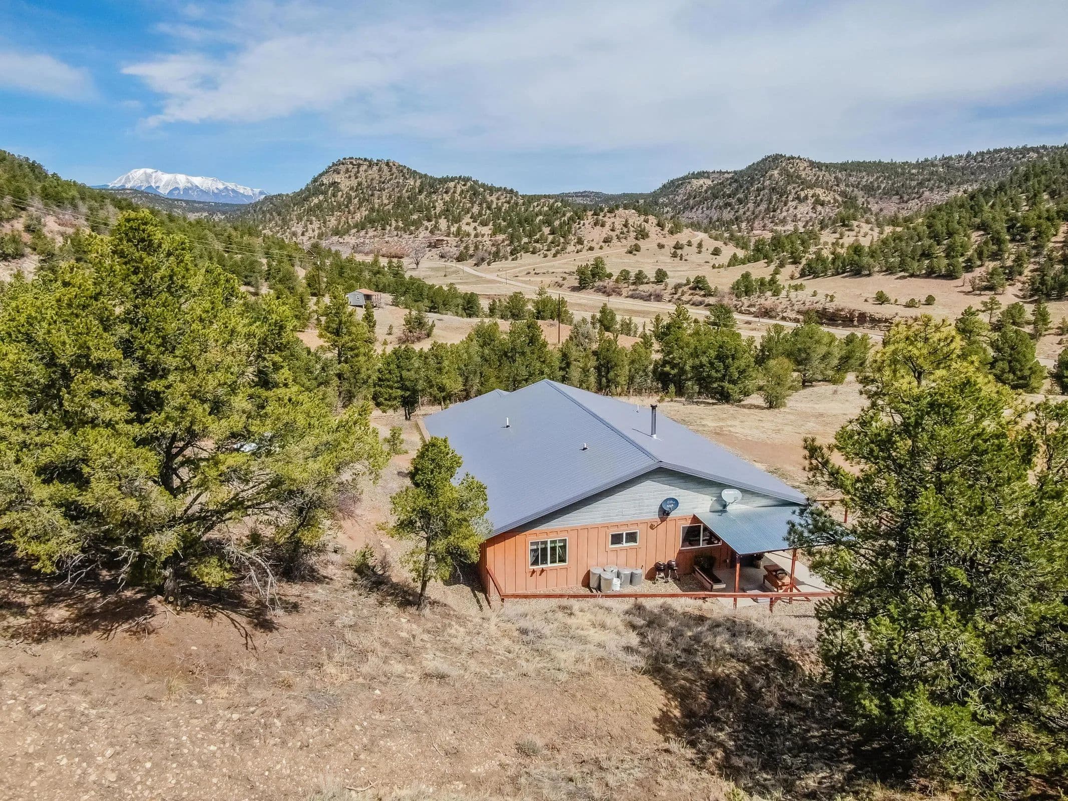 Looking for a quiet place to slow down and soak in the beauty of southern Colorado? This 2 bed, 2 bath home sits on 41 acres in the Cielo Grande Subdivision with beautiful views of the stunning Spanish Peaks Mountains. The land has already been fire-mitigated, so it's ready for you to enjoy with peace of mind. Grab your morning coffee and head outside to take in the views—or just sit and listen to the breeze in the trees while the local wildlife wanders by. Deer, elk, and other critters are regular visitors here. Inside, the home has a warm, welcoming vibe with a cozy wood stove to keep you comfortable on chilly evenings. There's also a dry cabin on the property waiting for your personal touch—perfect for a guest spot, hobby space, or just a quiet little retreat. The subdivision allows for two homes to be built on the property. The upper portion of the mountain offers even more breathtaking views, making it an ideal location for a second home or private getaway.